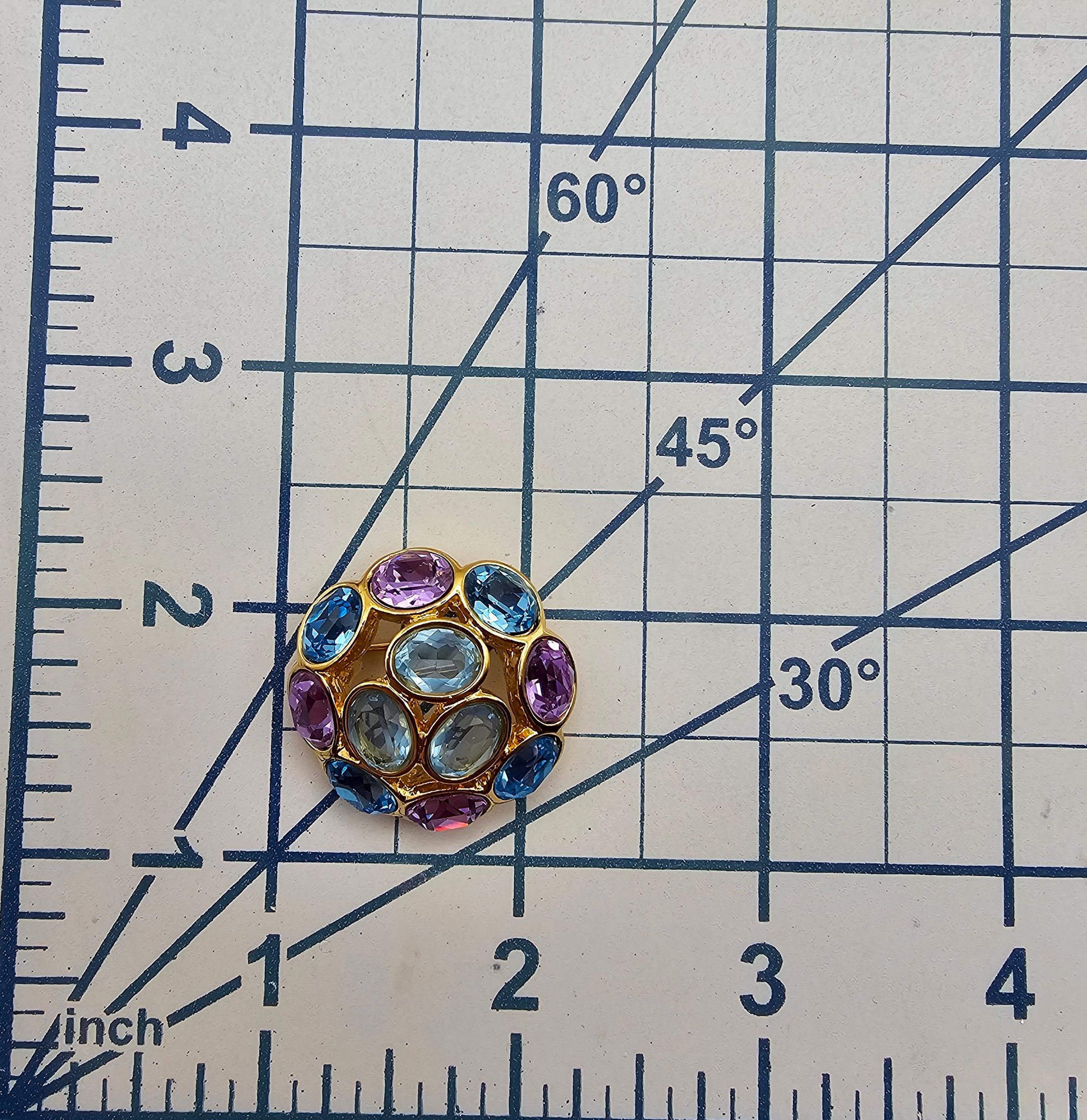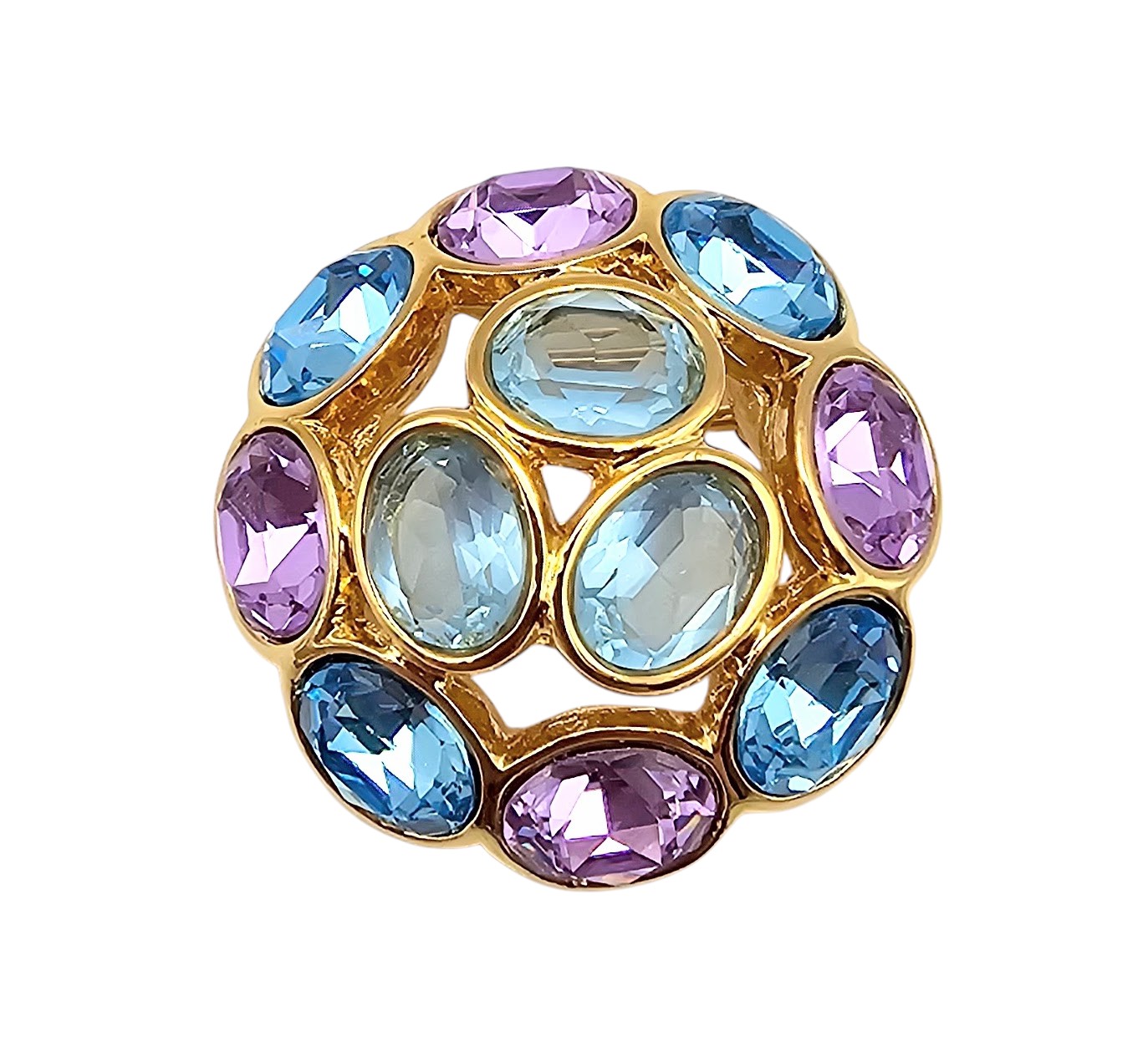 Swarovski Purple Blue Crystal Gold Tone Dome Brooch