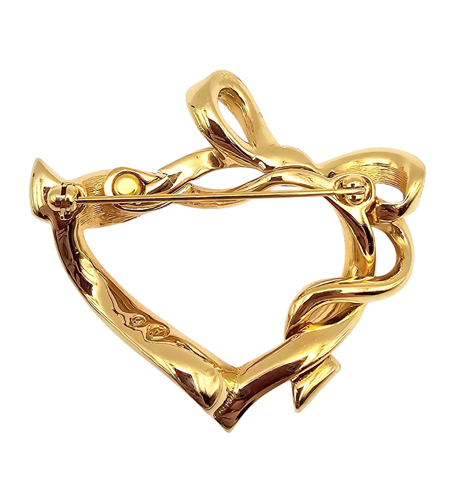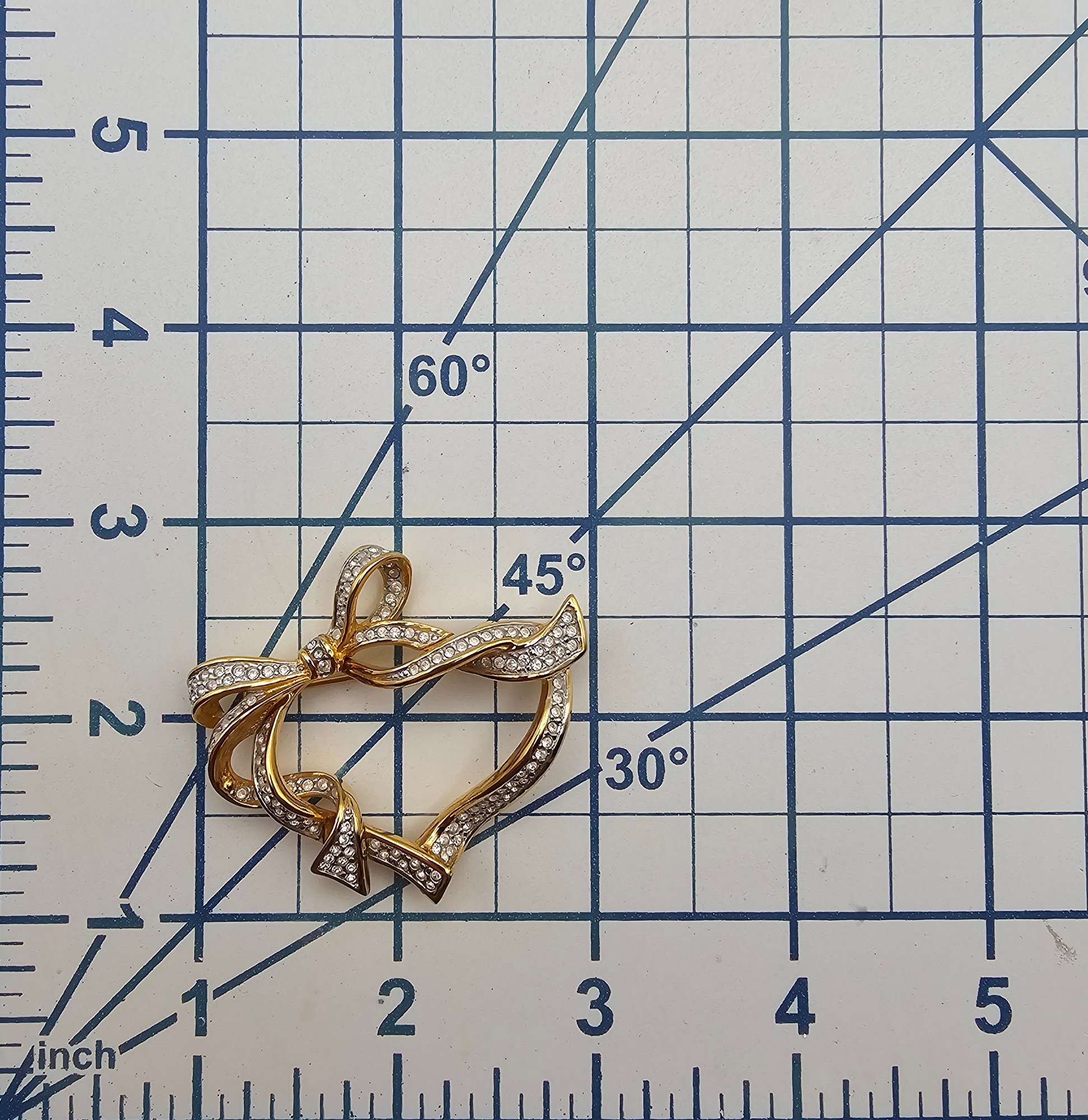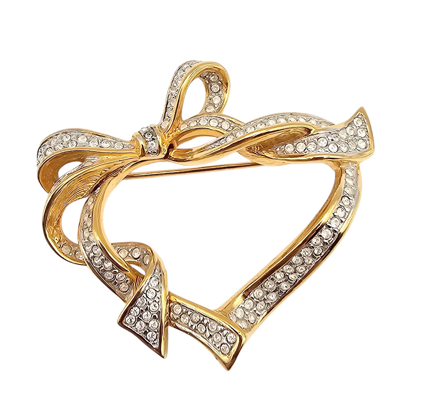 Swarovski Crystal Gold Tone Bow Heart Brooch