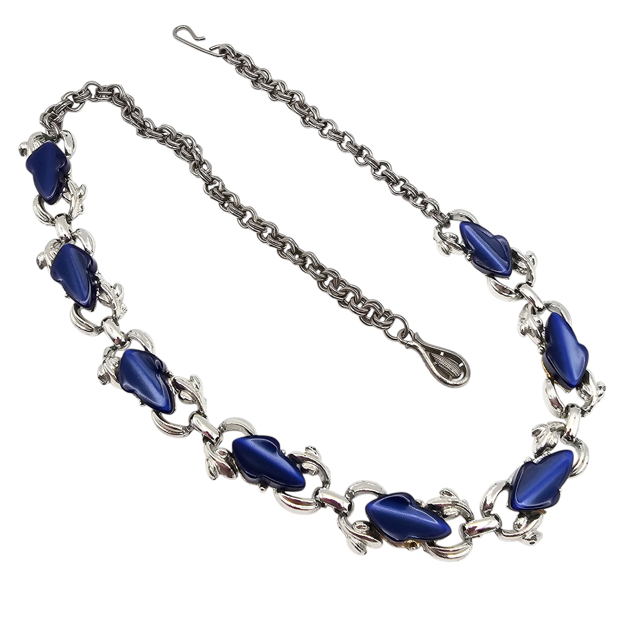 Coro Vintage Midnight Blue Thermoset Silver Tone Choker Necklace