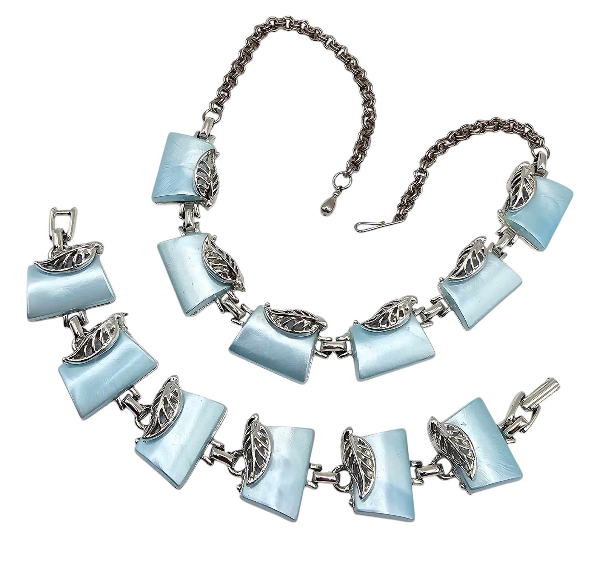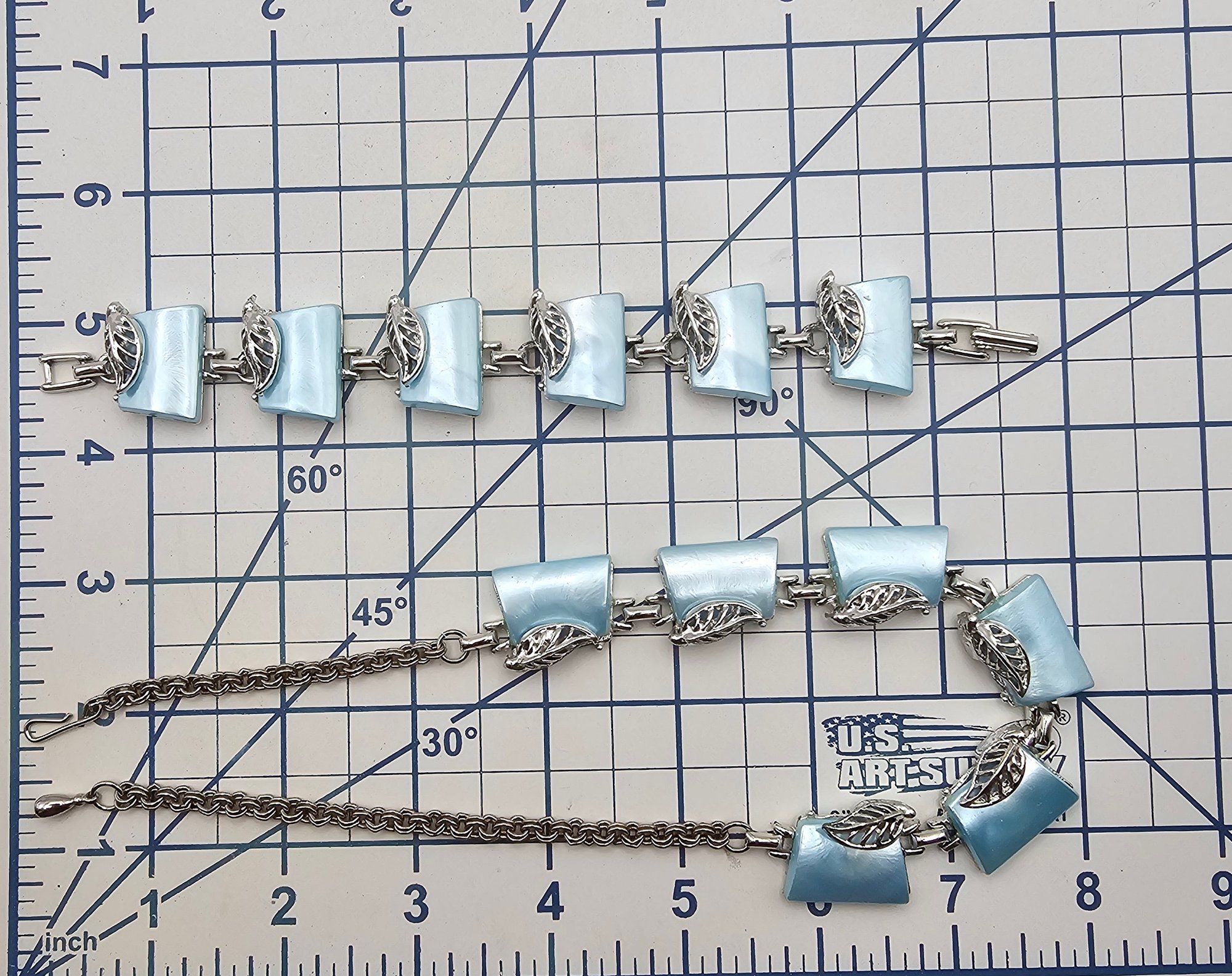 Vintage Light Blue Thermoset/Lucite Silver Tone Necklace Bracelet Set