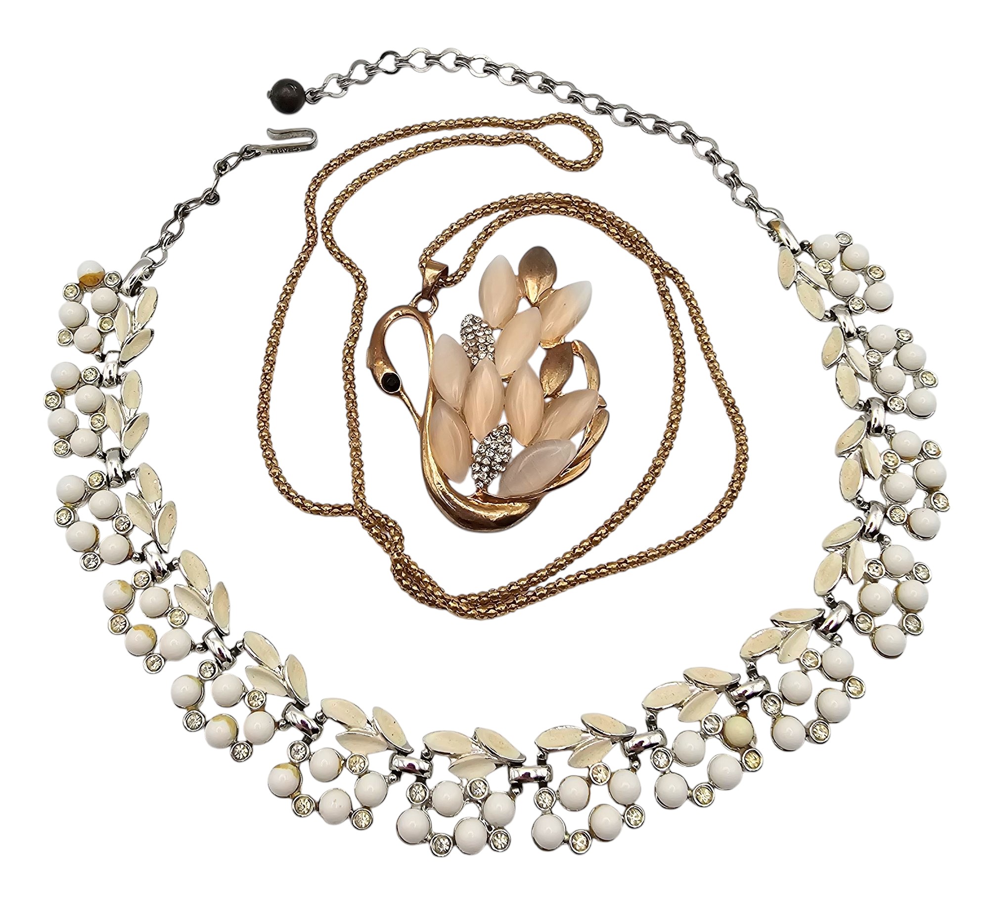 Vintage Lot 2 Thermoset/Lucite Rhinestone Necklaces