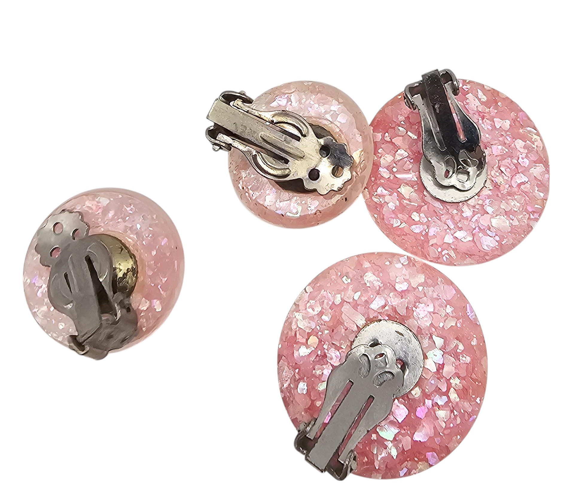 Vintage Lot 2 Barbie Pink Confetti Thermoset/Lucite Earrings
