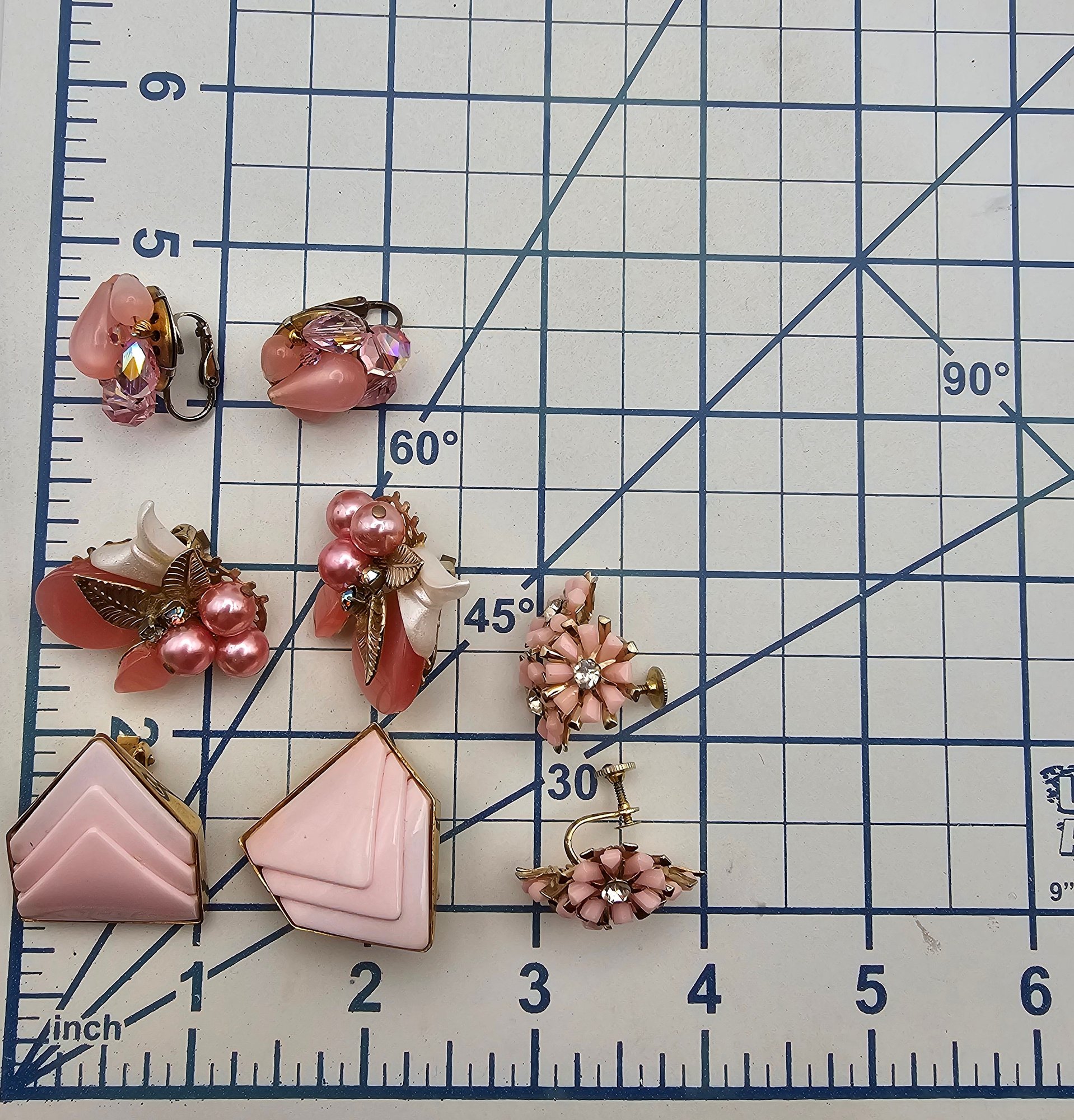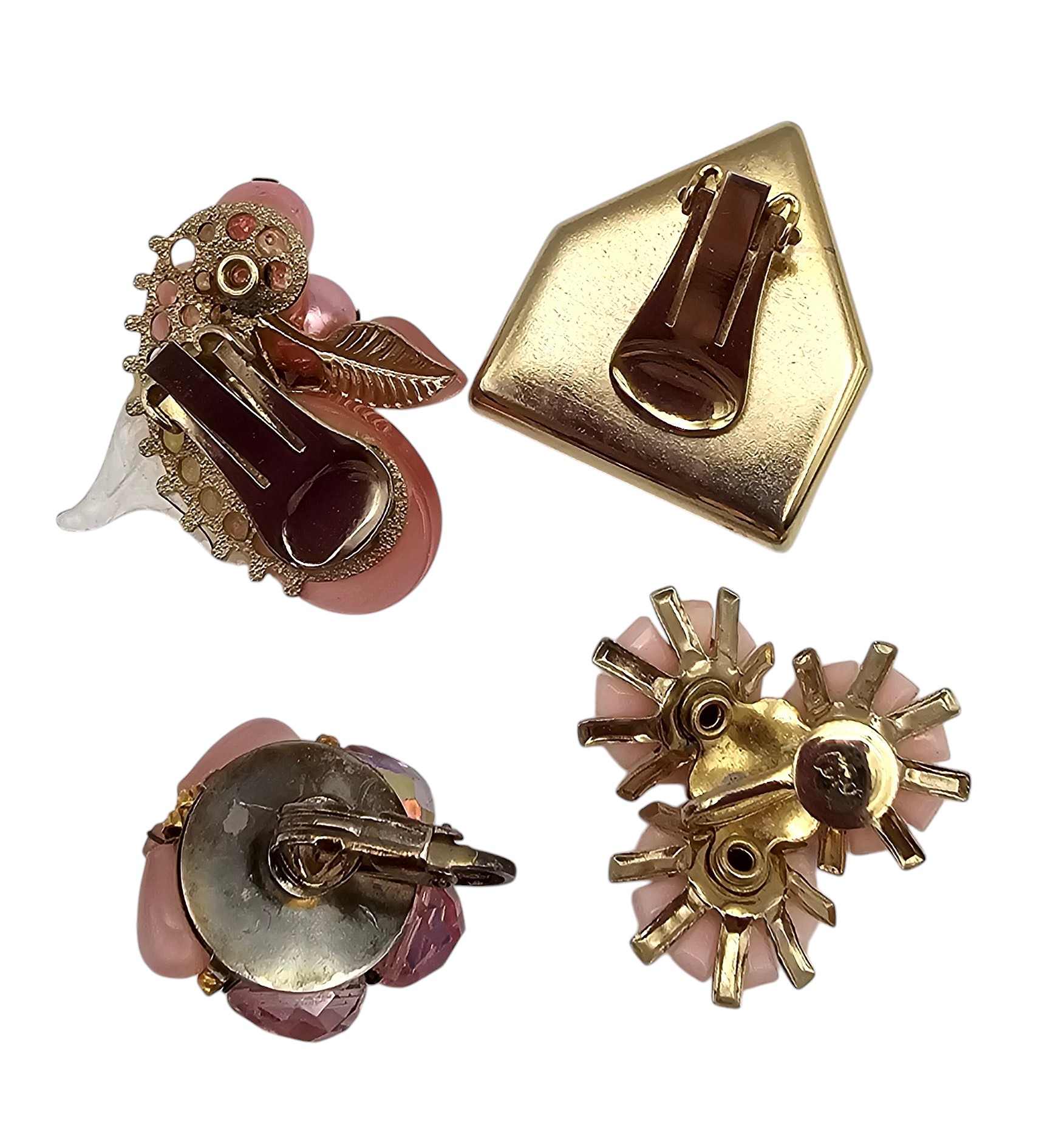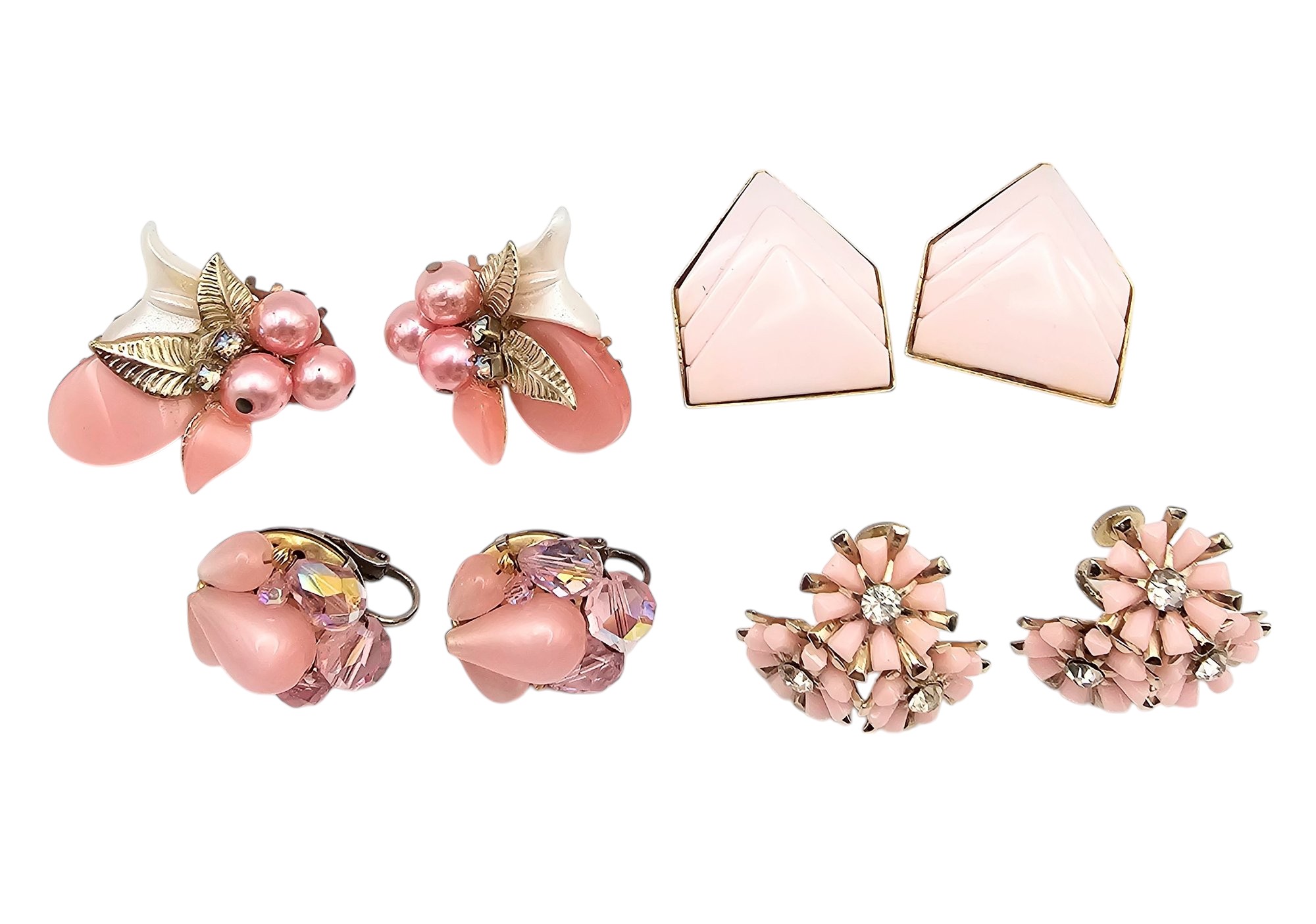 Coro Vintage Lot 4 Pink Rhinestone Thermoset /Lucite Earrings