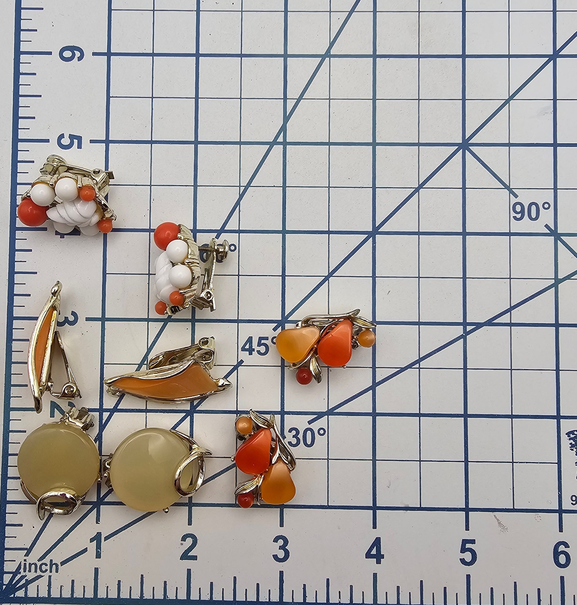 Coro Star Vintage Orange White Thermoset/Lucite Earrings
