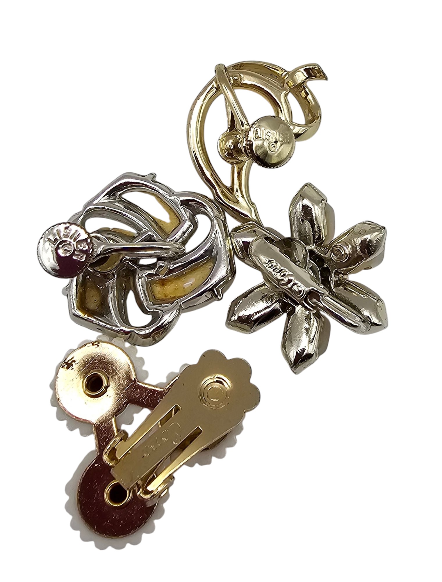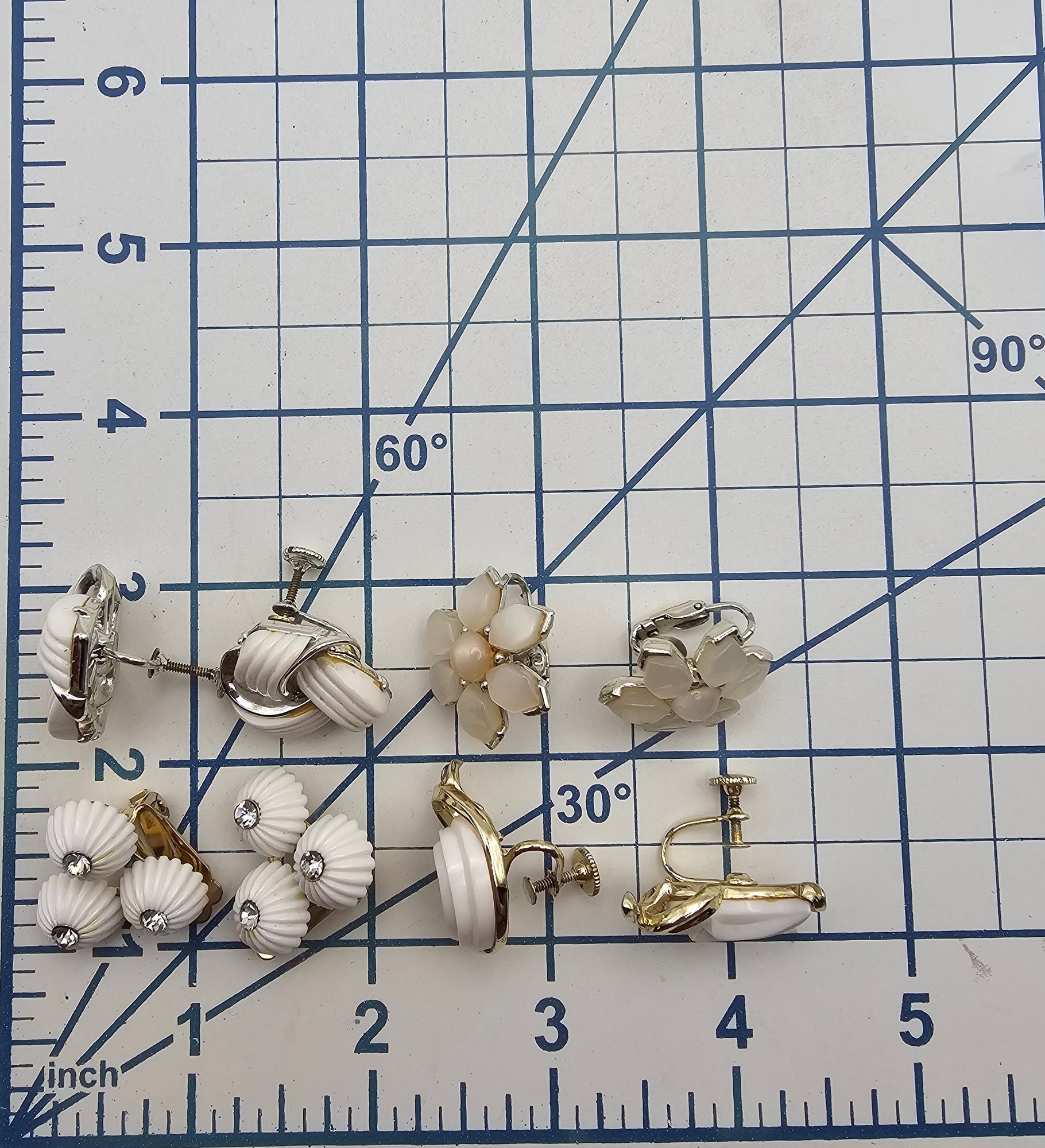 Coro Lisner Vintage Lot 4 White Thermoset/Lucite Earrings