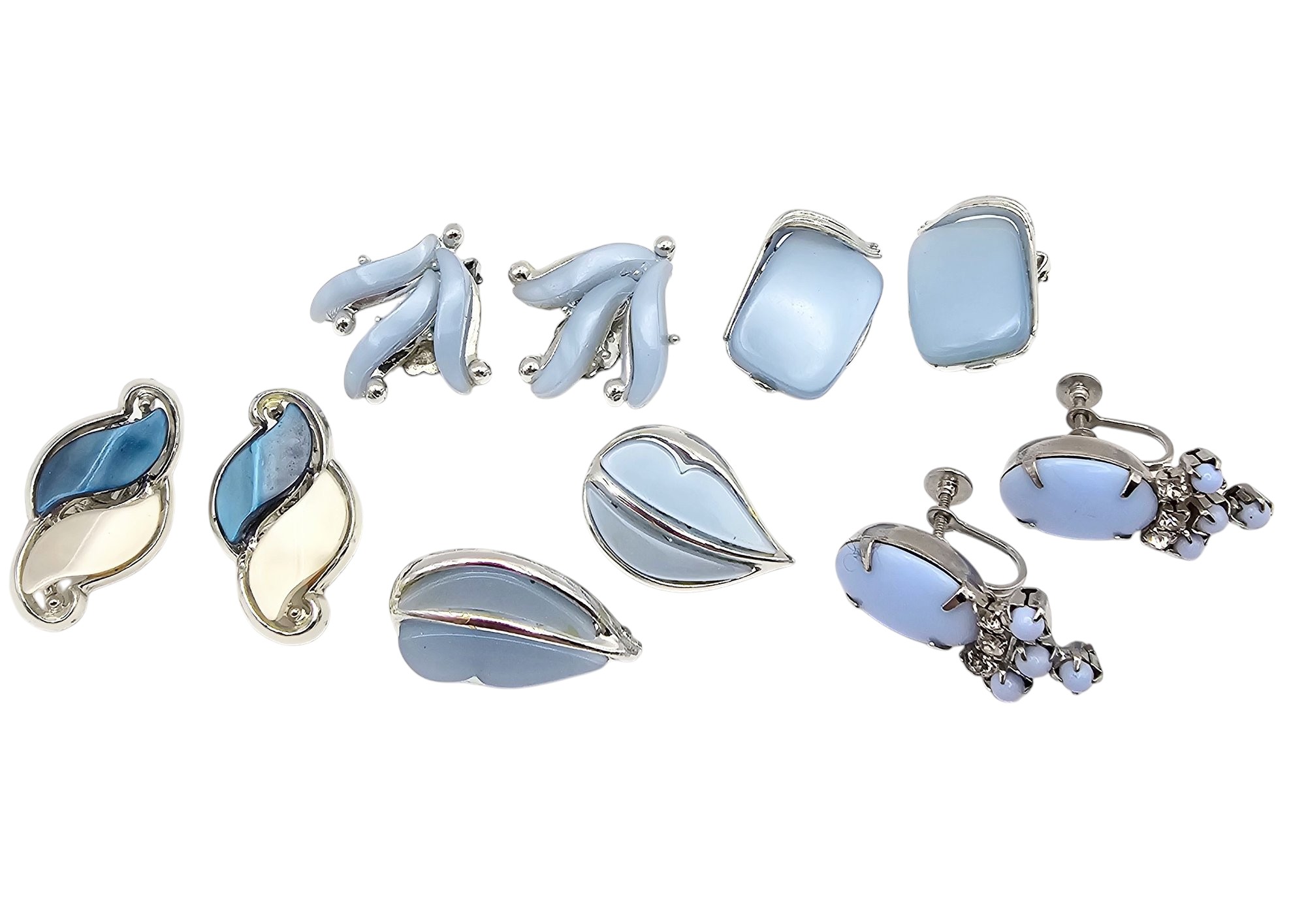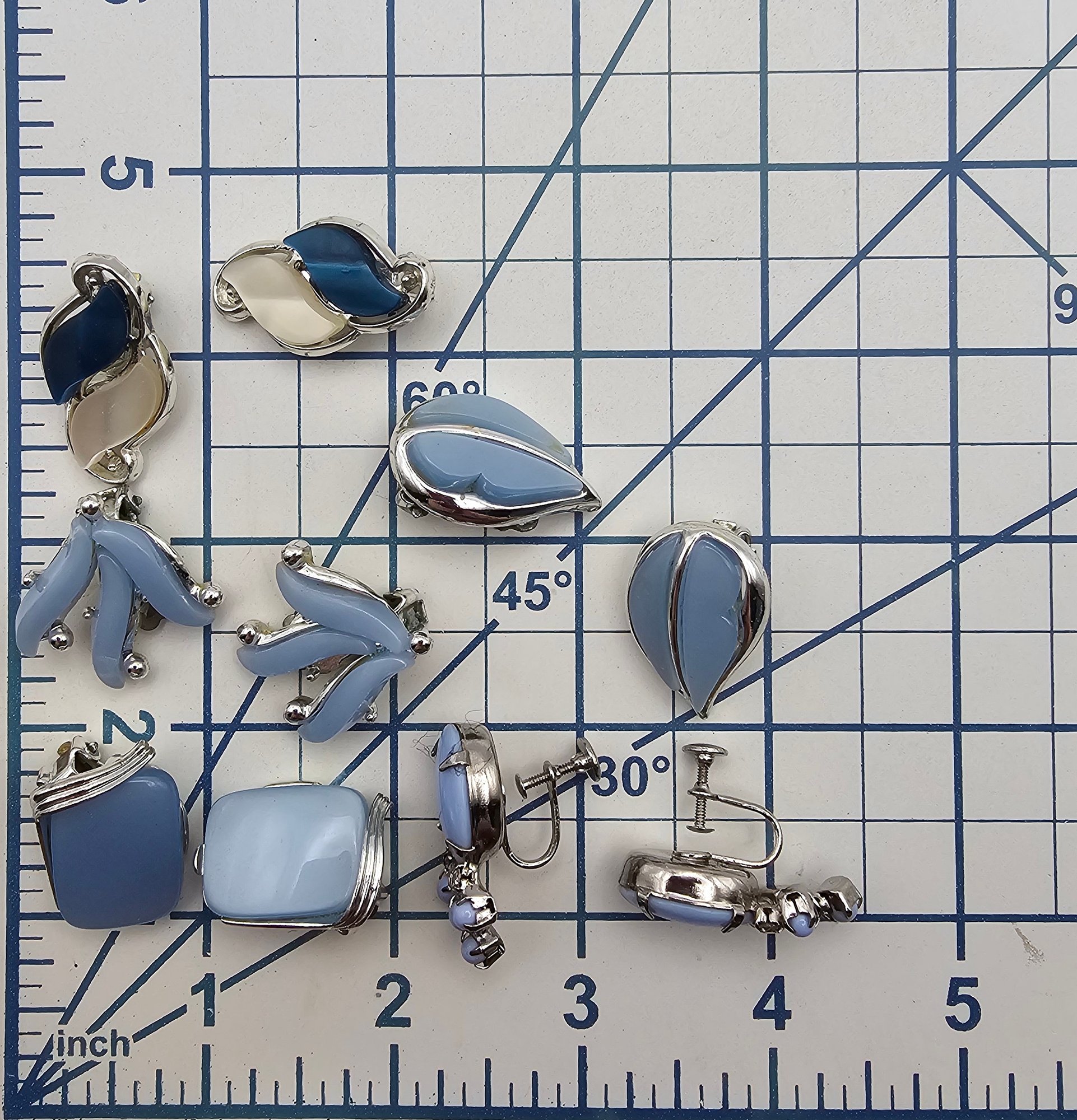 Lisner Jaycraft Vintage Lot 5 Blue Thermoset/Lucite Earrings