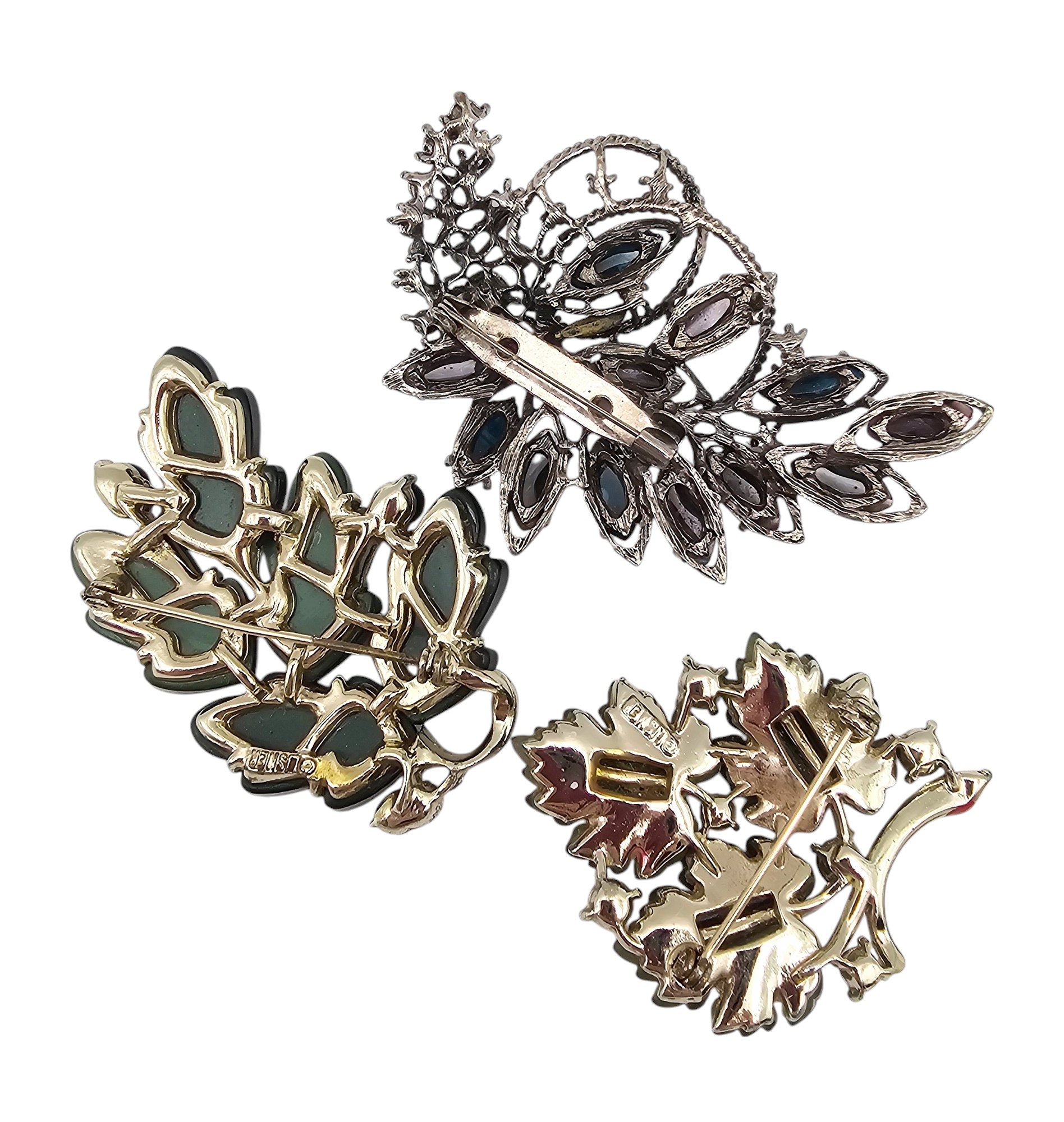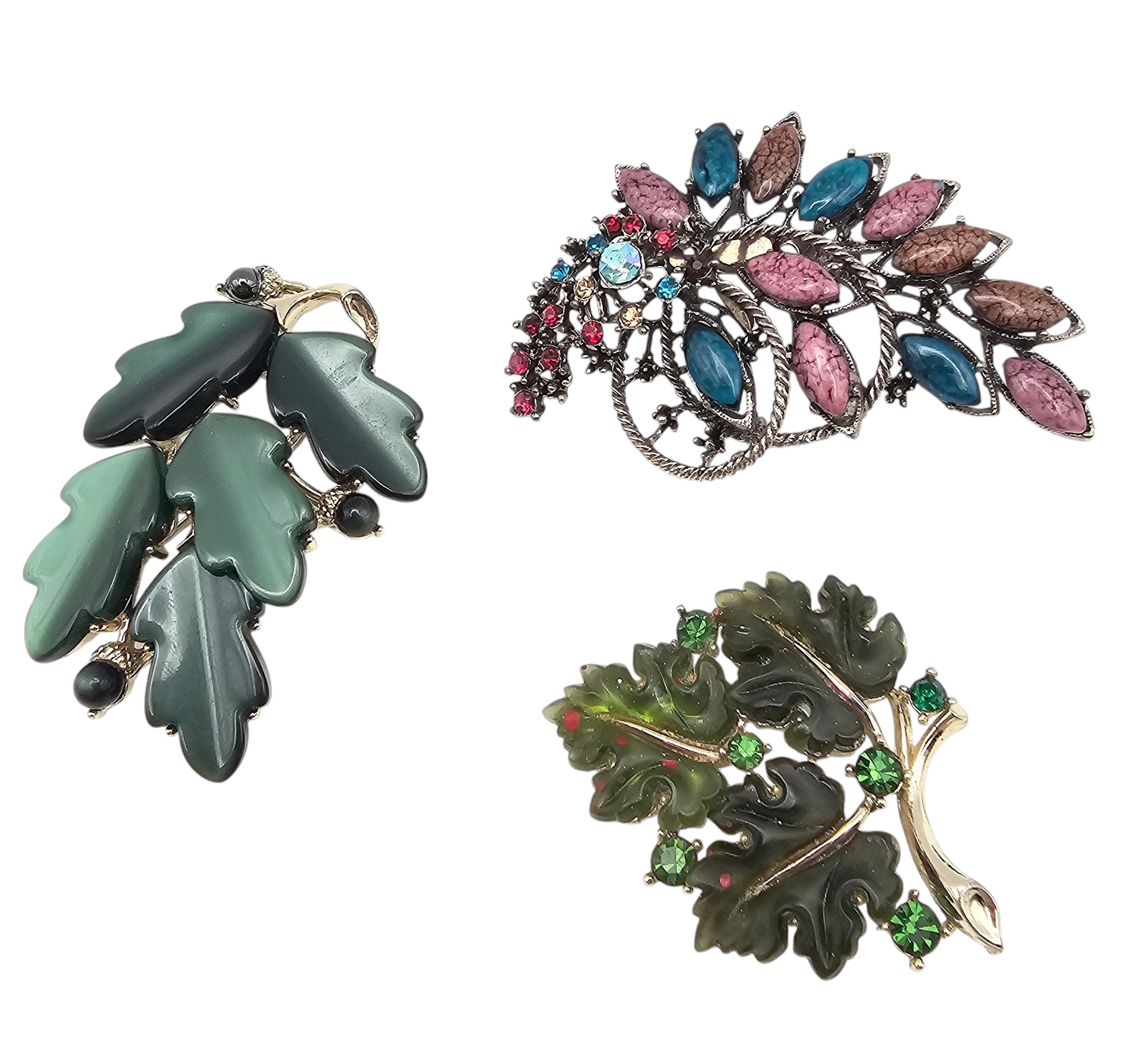 Lisner Vintage Lot 3 Green Thermoset/Lucite Brooches