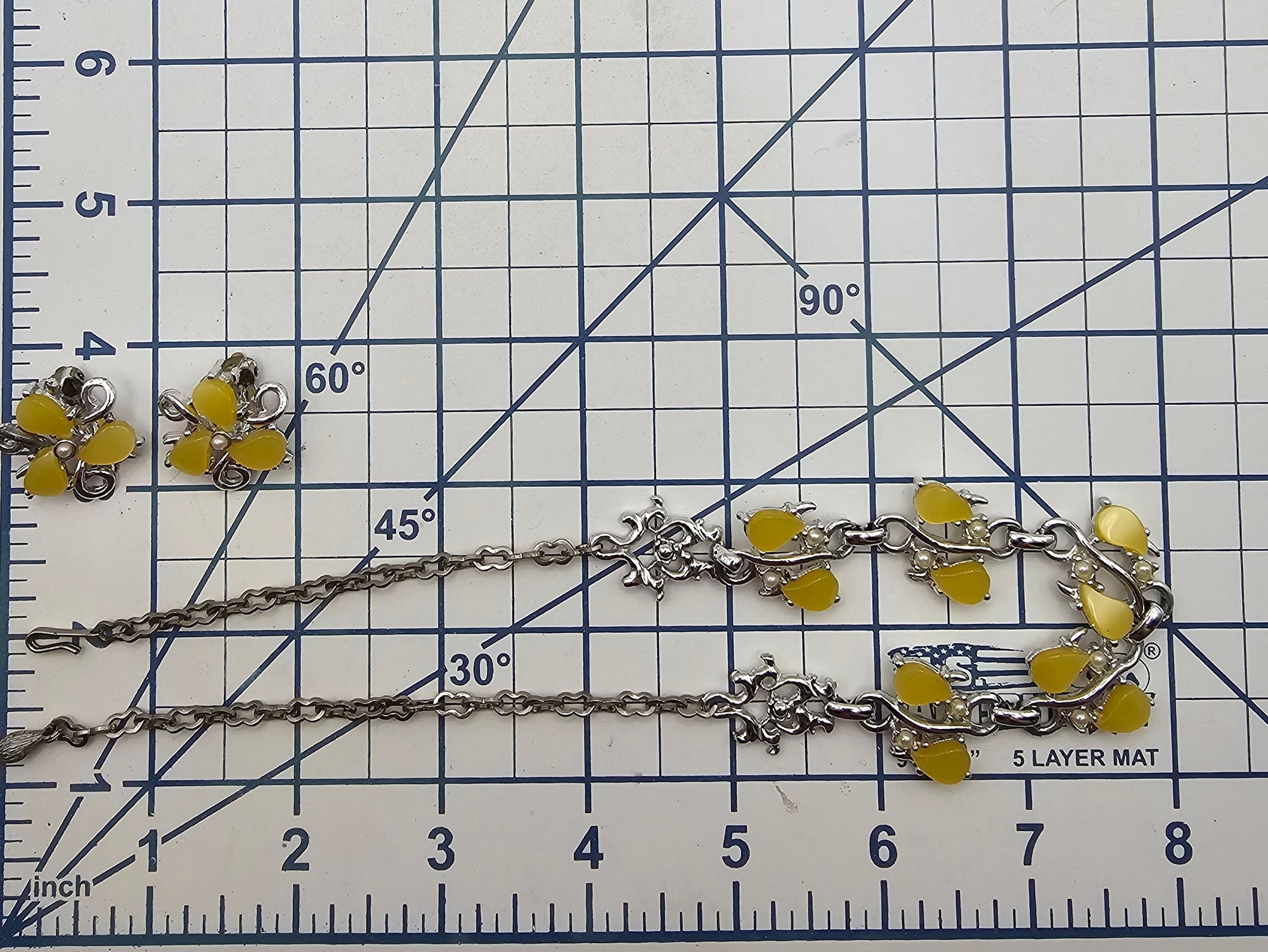 Vintage Pale Yellow Moonglow Thermoset/Lucite Necklace Earrings Set
