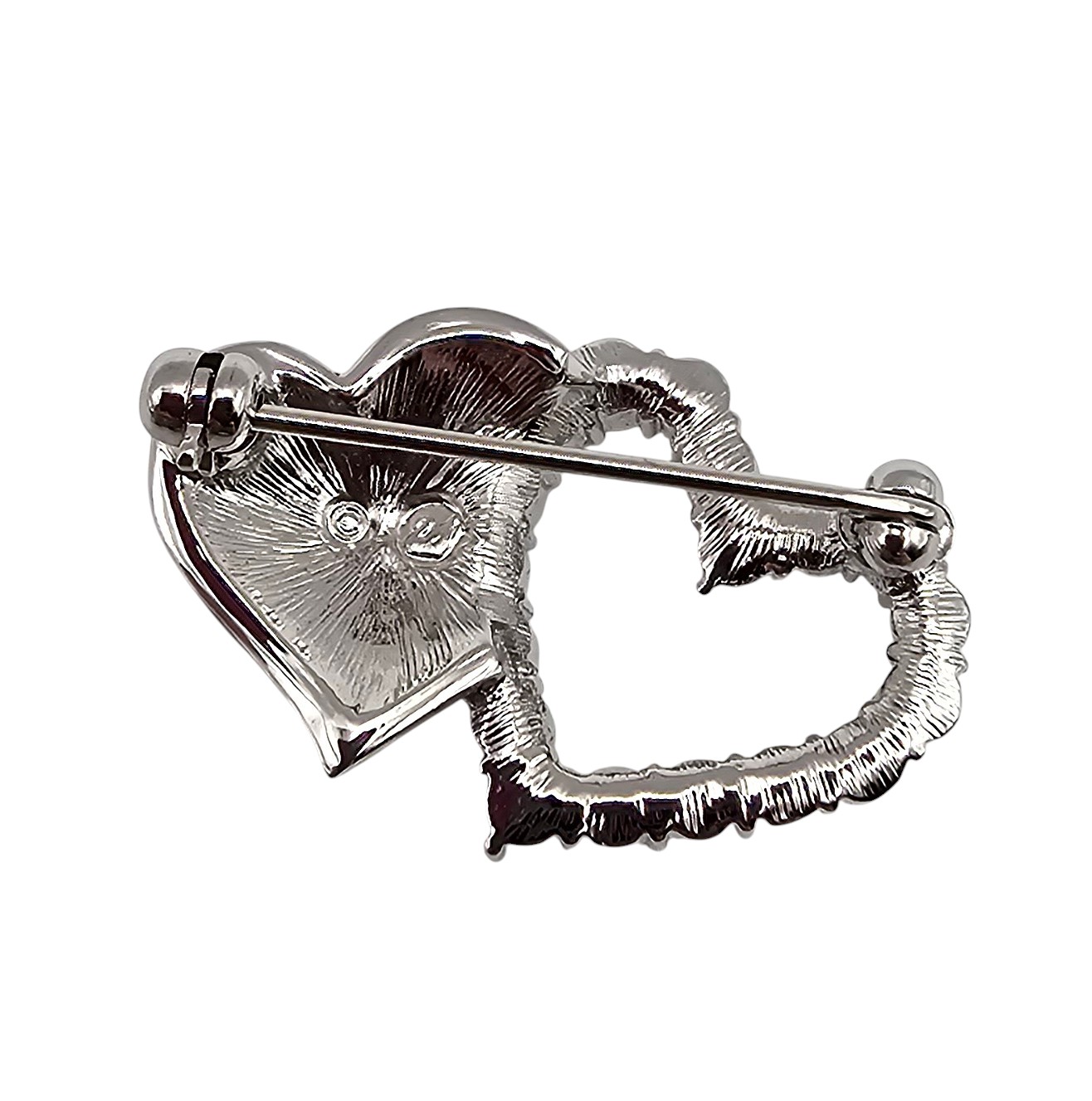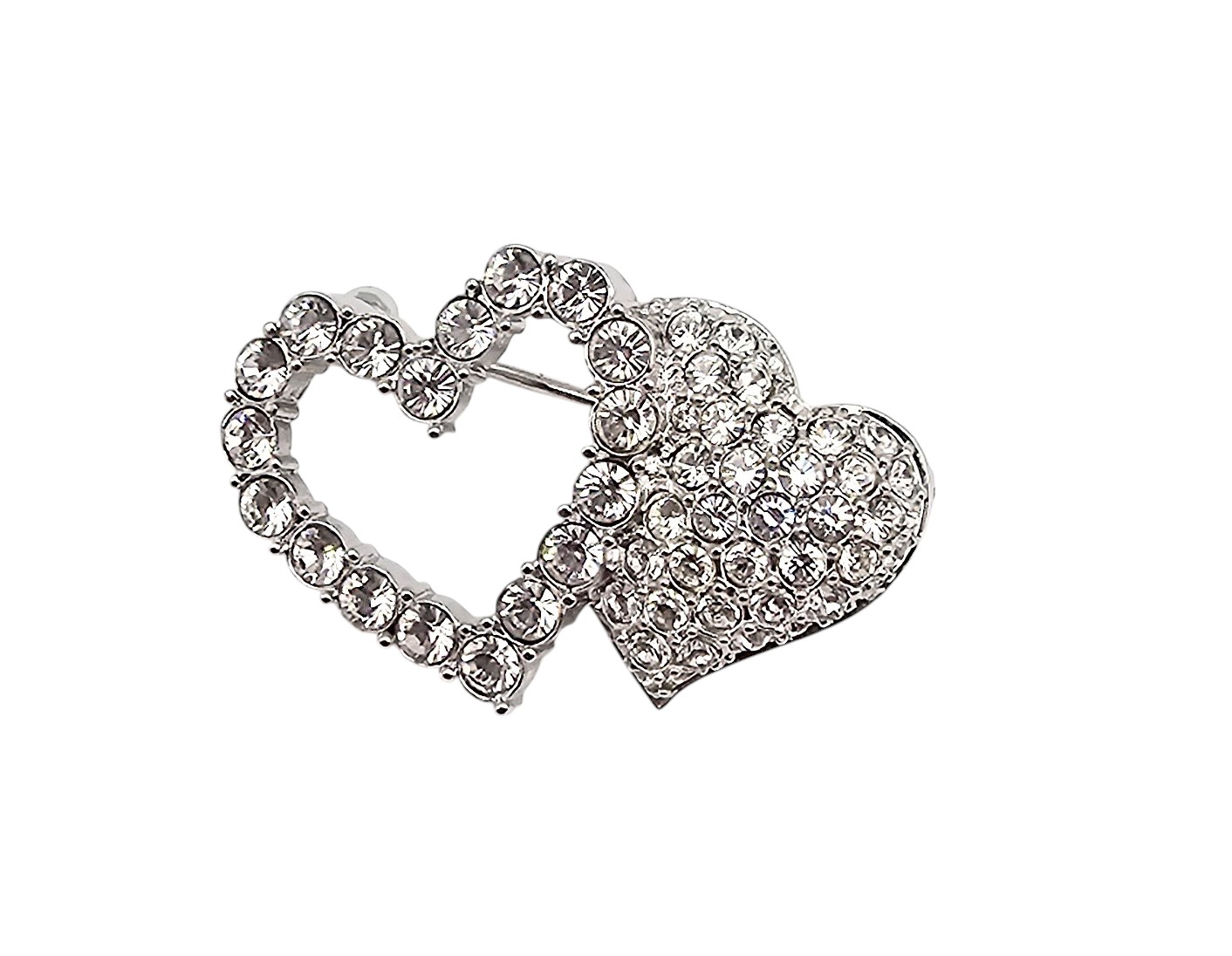 Swarovski Crystal Silver Tone Double Heart Brooch