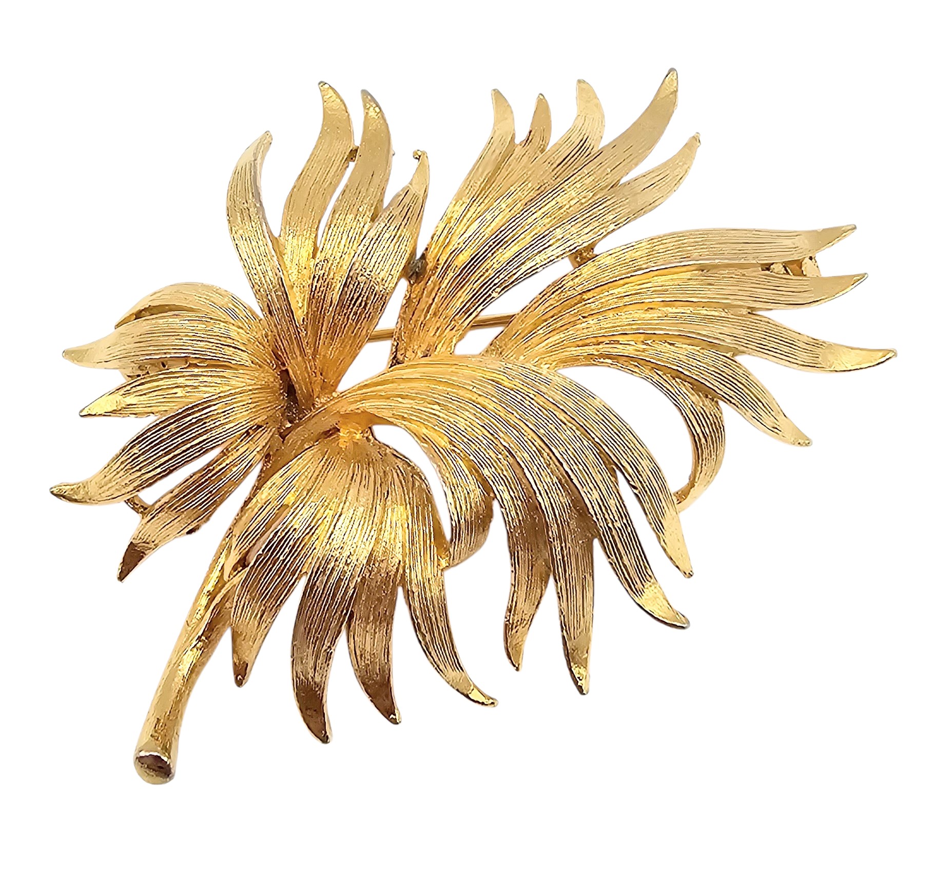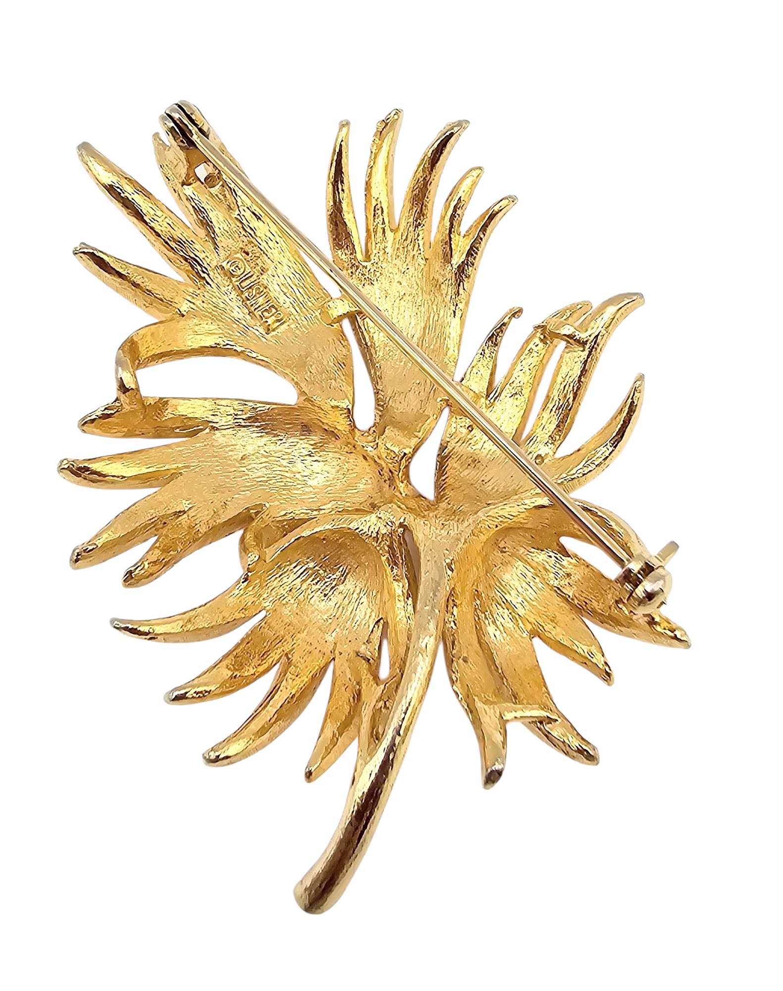 Lisner Vintage Large Textured Gold Tone Leaf Brooch