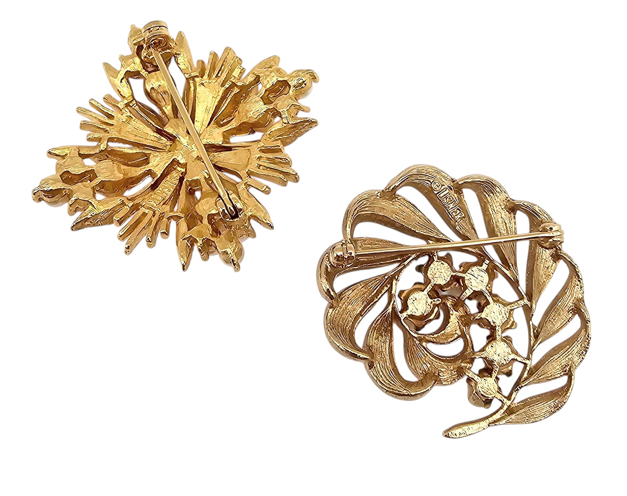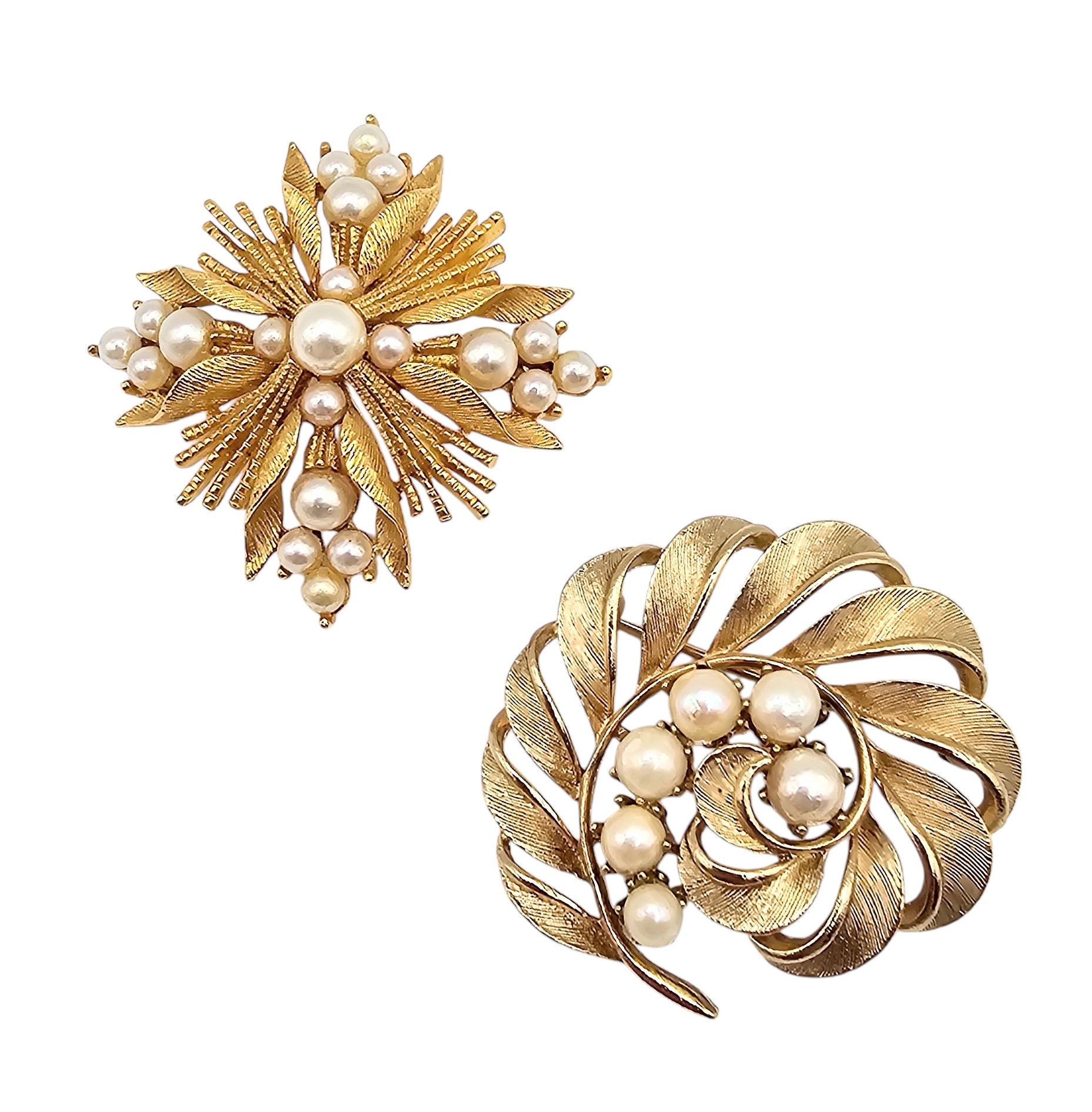 Lisner Vintage Lot 2 Faux Pearl Gold Tone Brooches