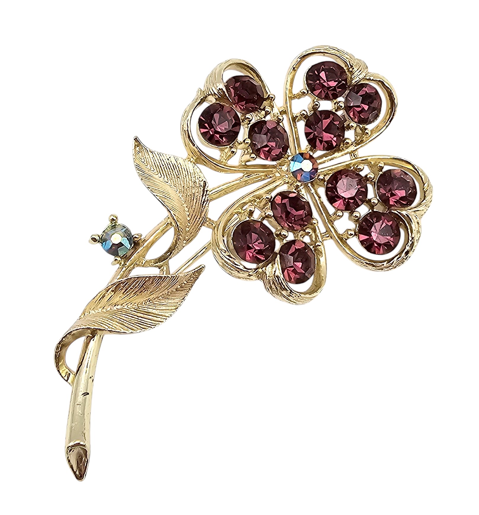 Lisner Vintage Rhinestone Gold Tone Flower Brooch
