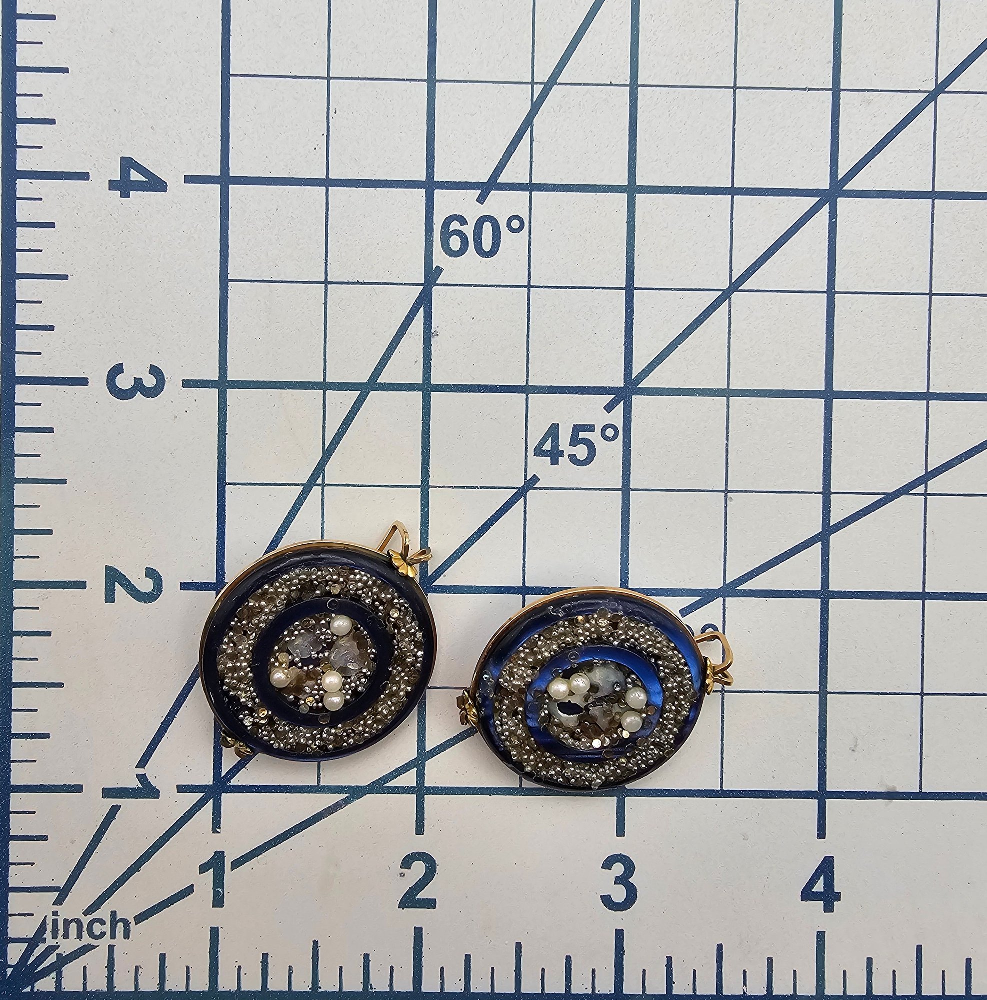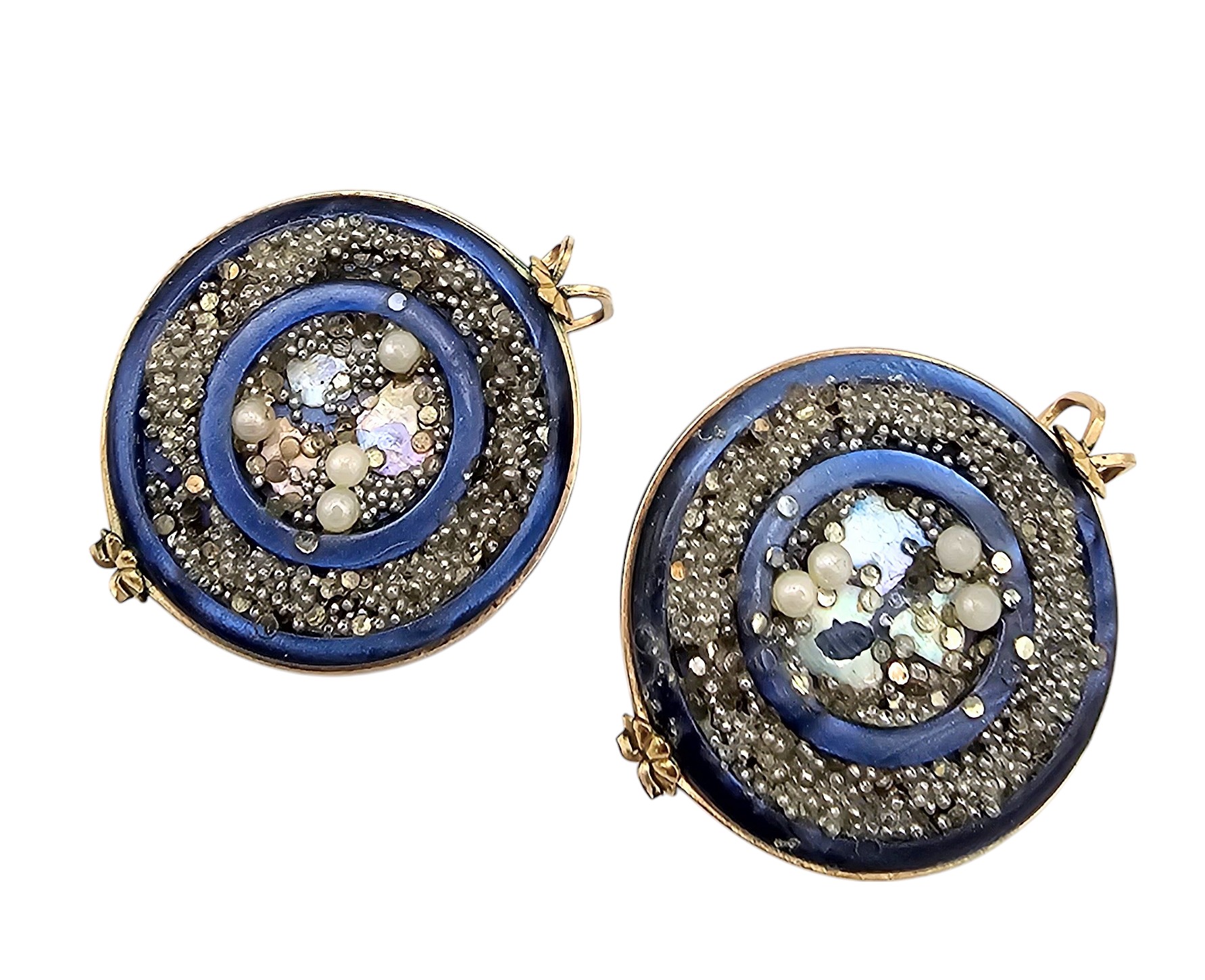 Castlecraft 1920’s-30’s Blue Plastic Confetti Gold Tone Clip Earrings