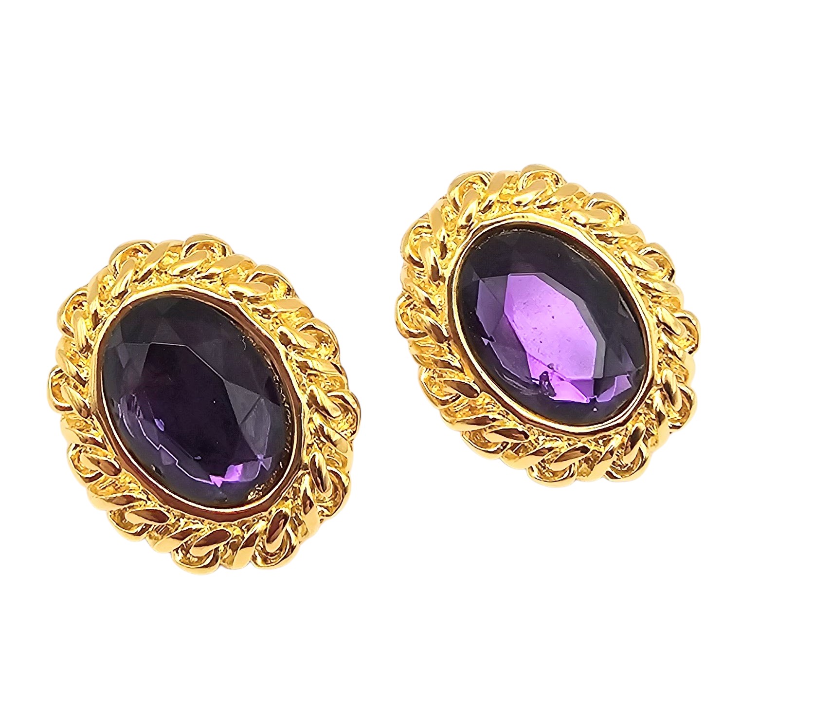 Kennith J Lane Purple Center Gold Tone Earrings