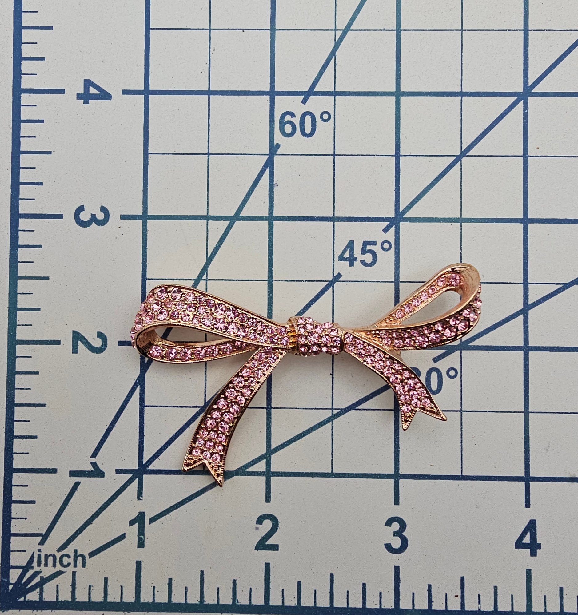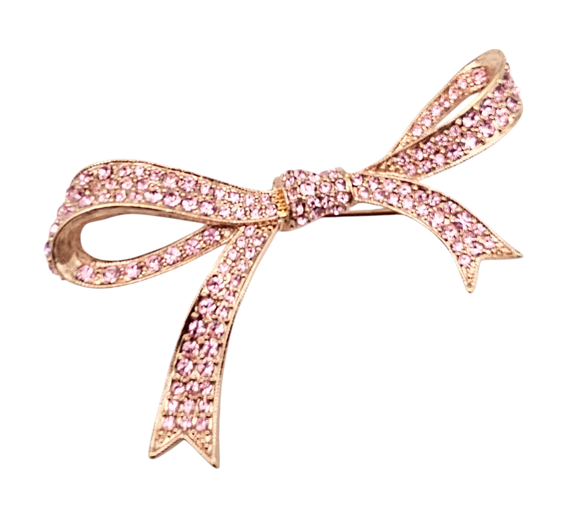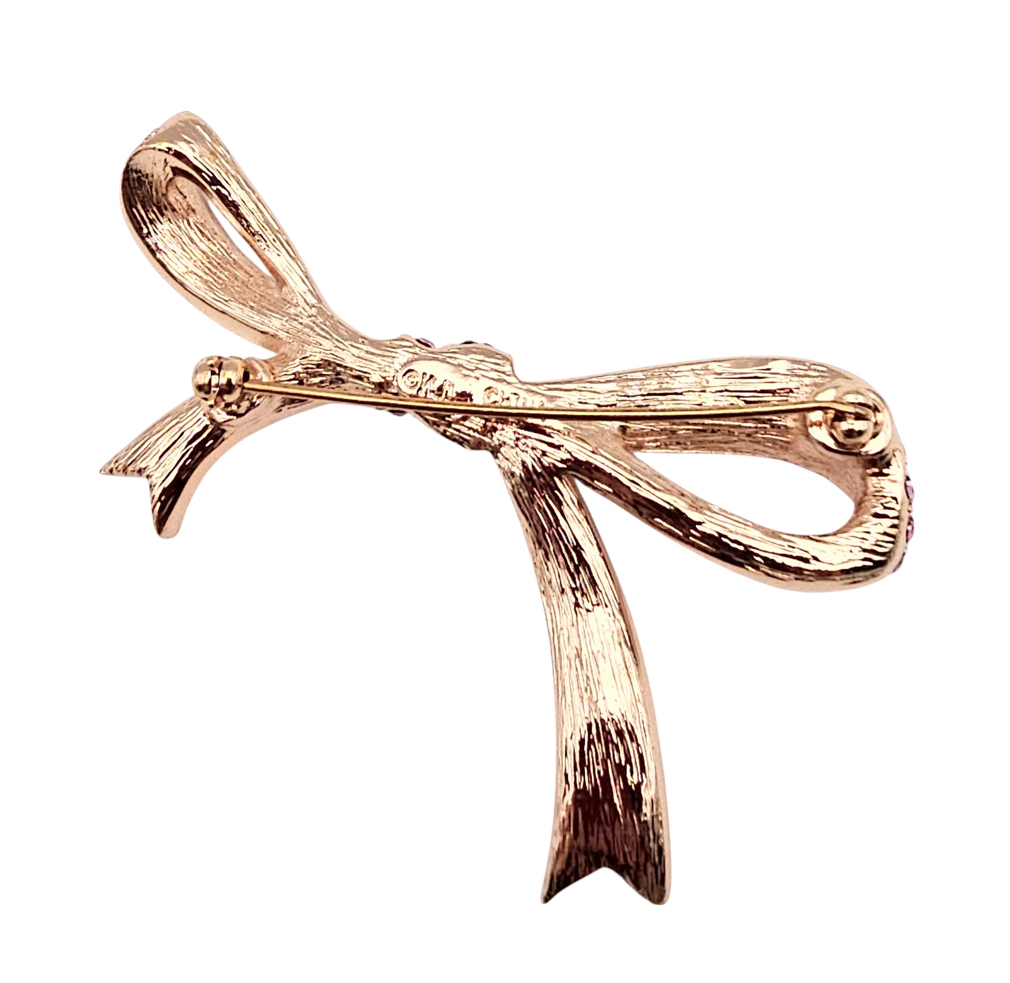 Kennith J Lane Pink Rhinestone Rose Gold Tone Bow Brooch