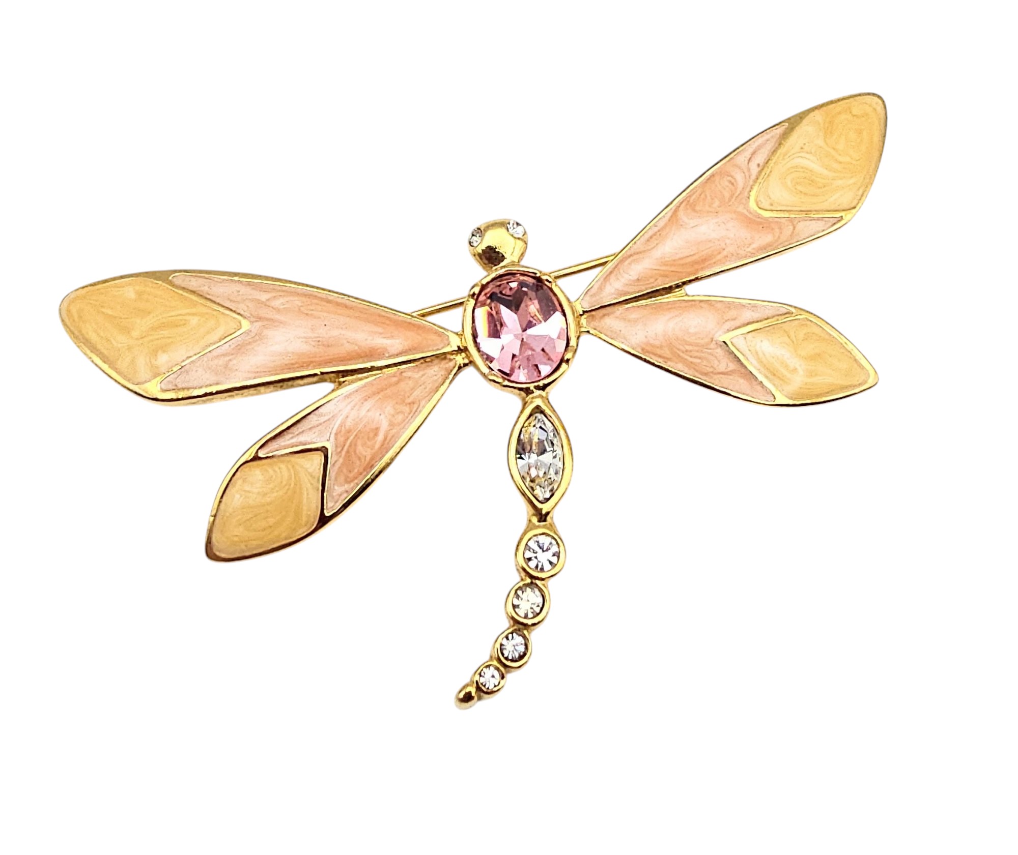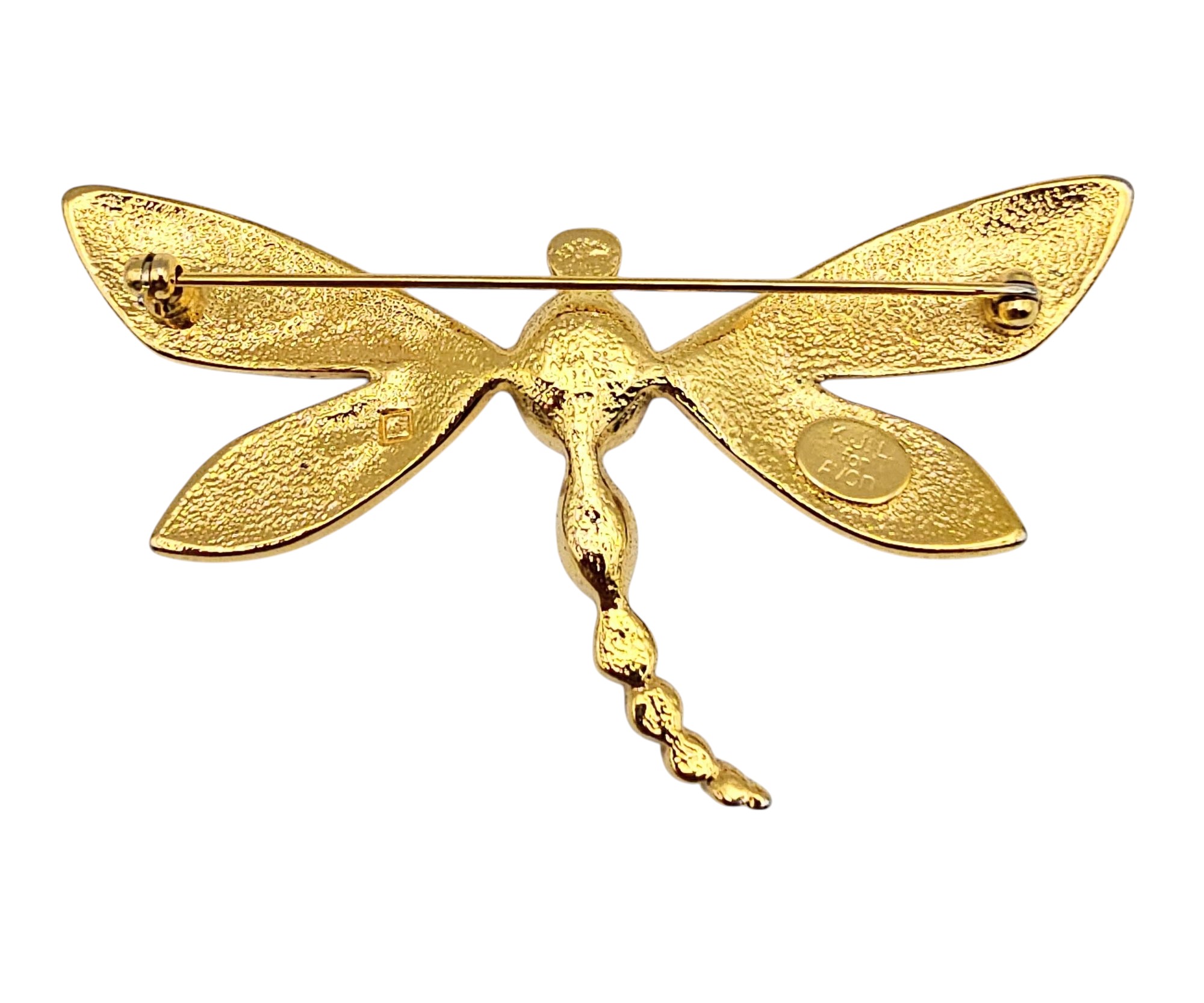 Kennith J Lane Enamel Rhinestone Gold Tone Dragonfly Brooch