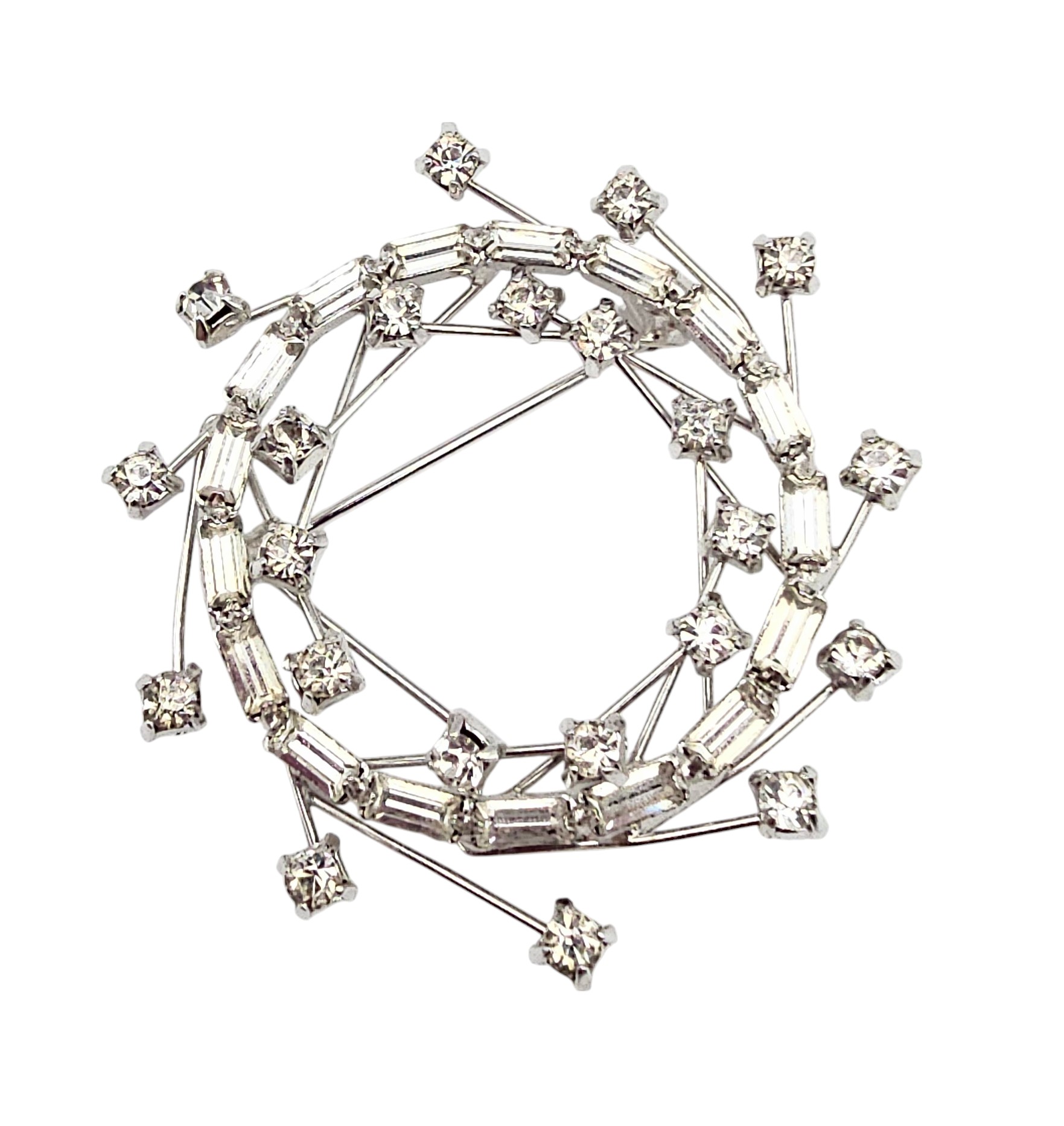 Castlecliff Clear Rhinestone Silver Tone Wreath Brooch