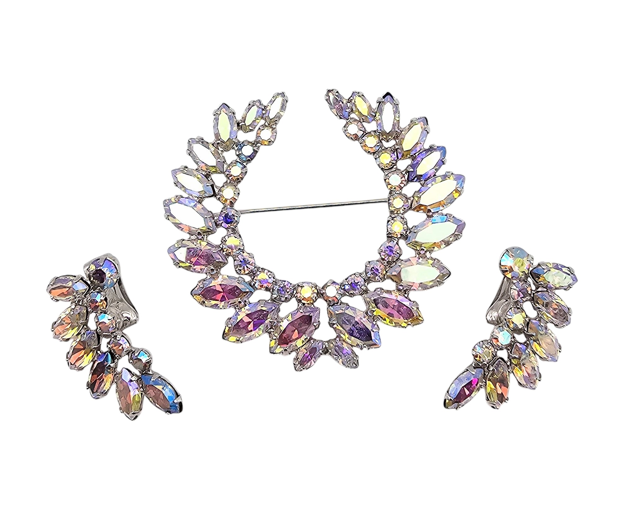 B David Iridescent Semi Circle Brooch Earrings Set
