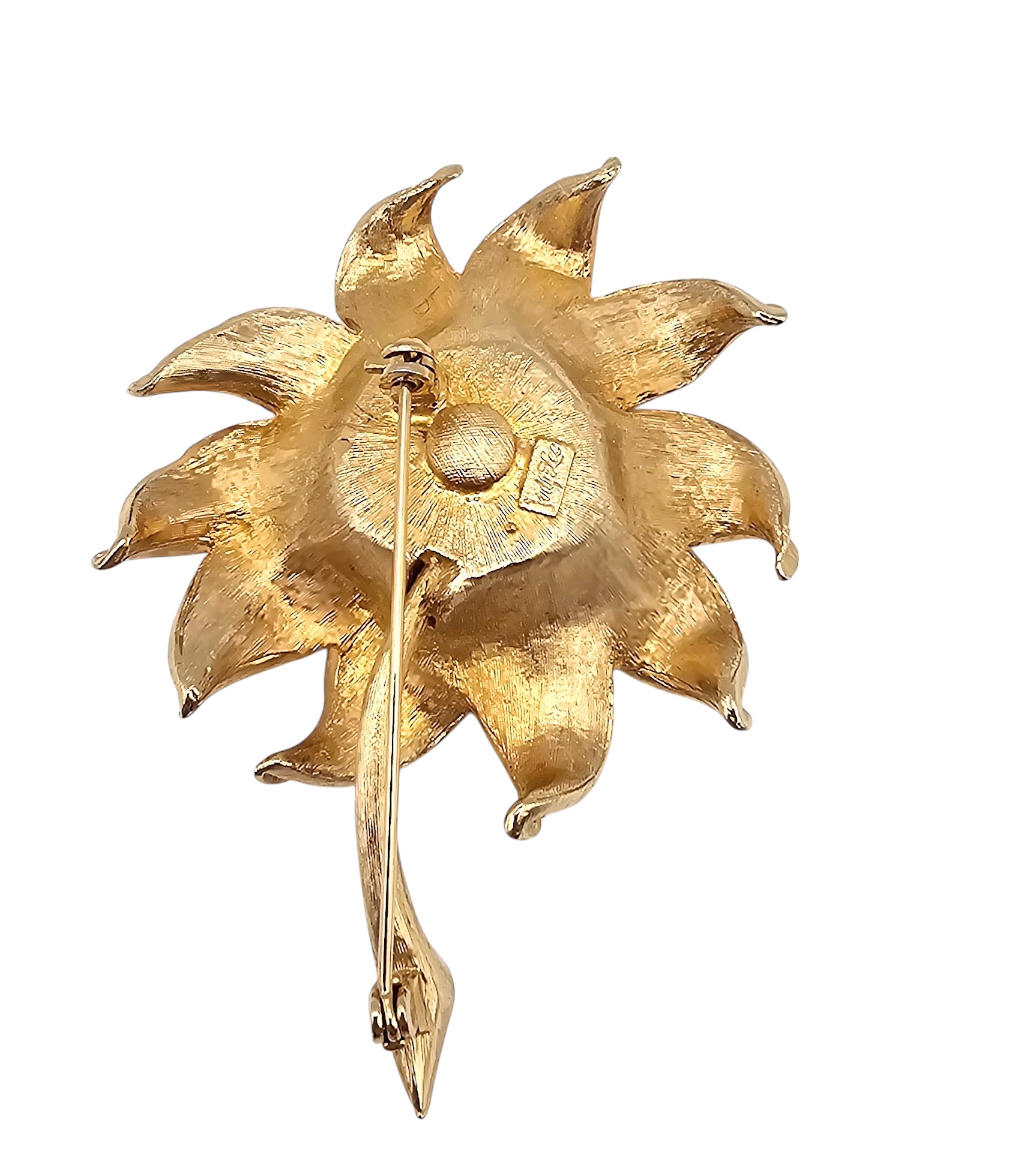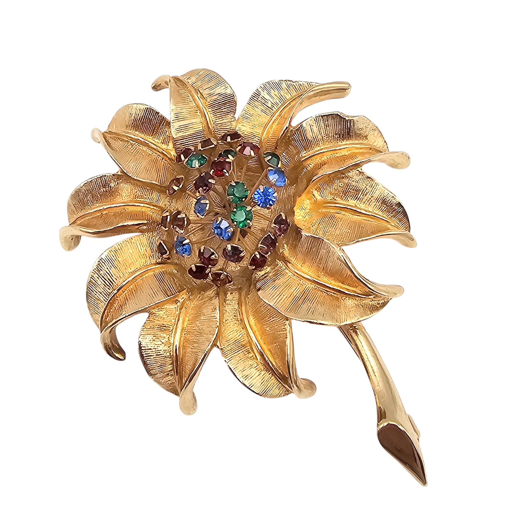 Judy Lee Rhinestone Brushed Gold Tone Flower Brooch