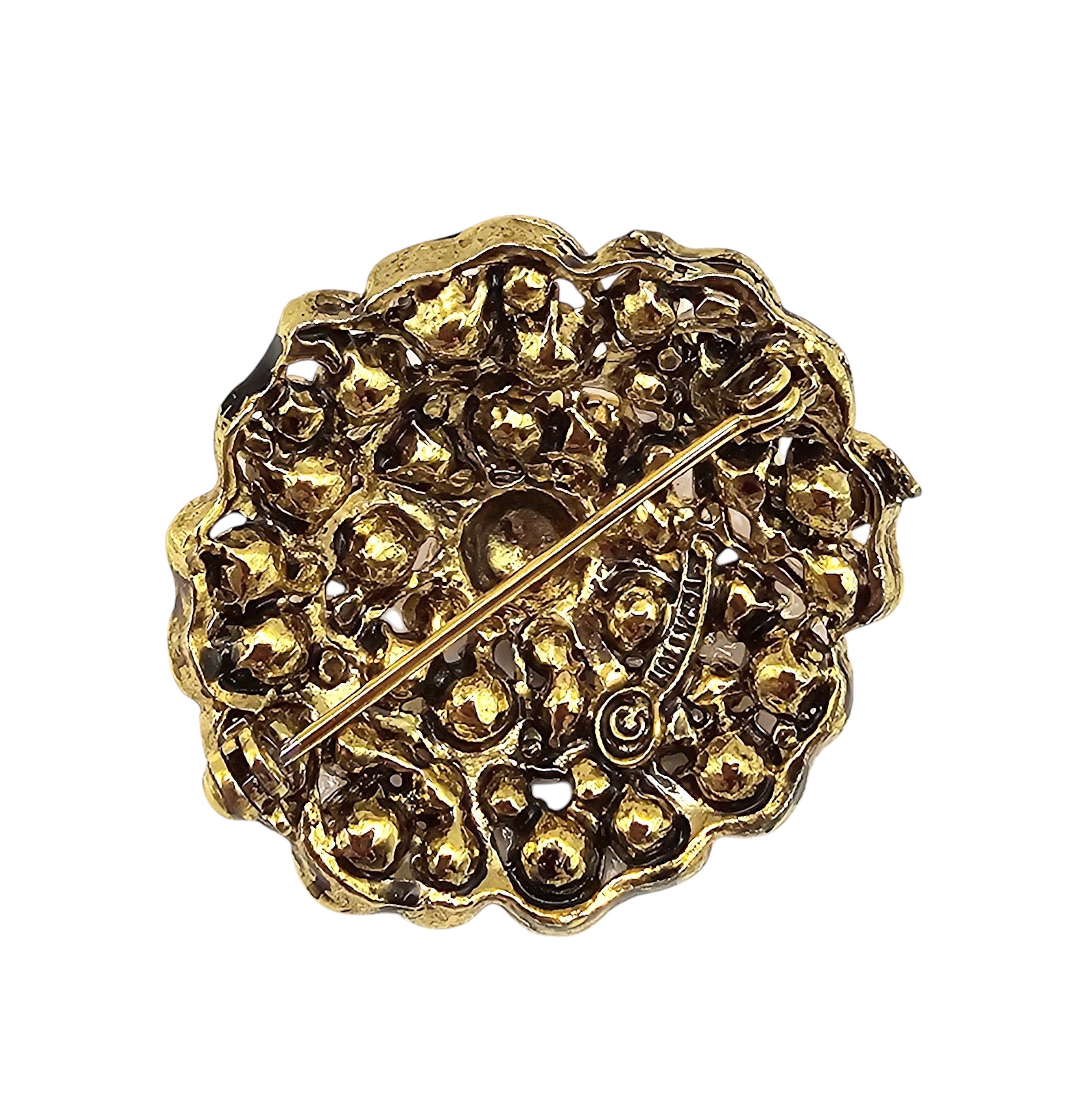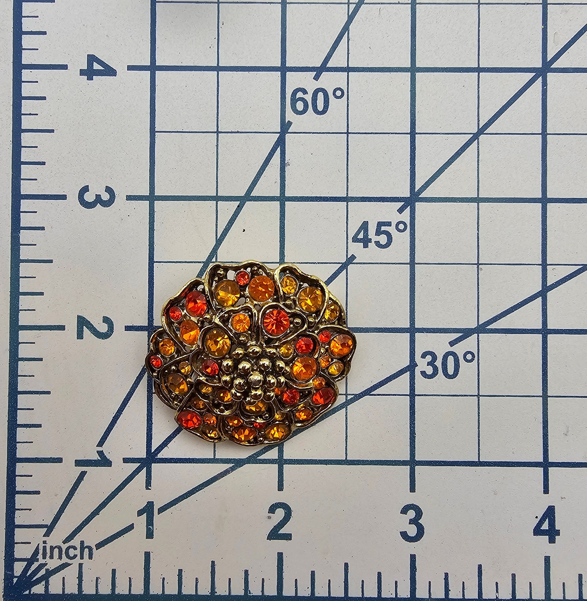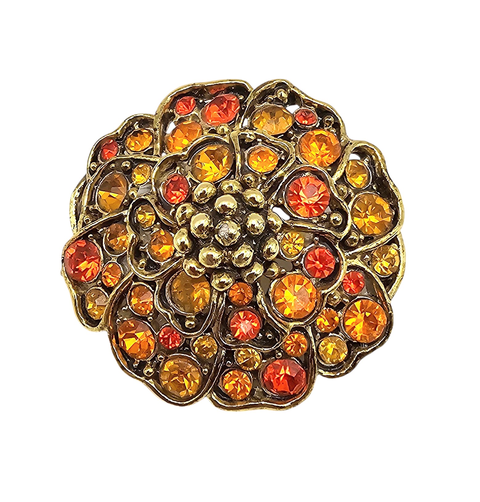 Hollycraft Orange Rhinestone Gold Tone Flower Brooch