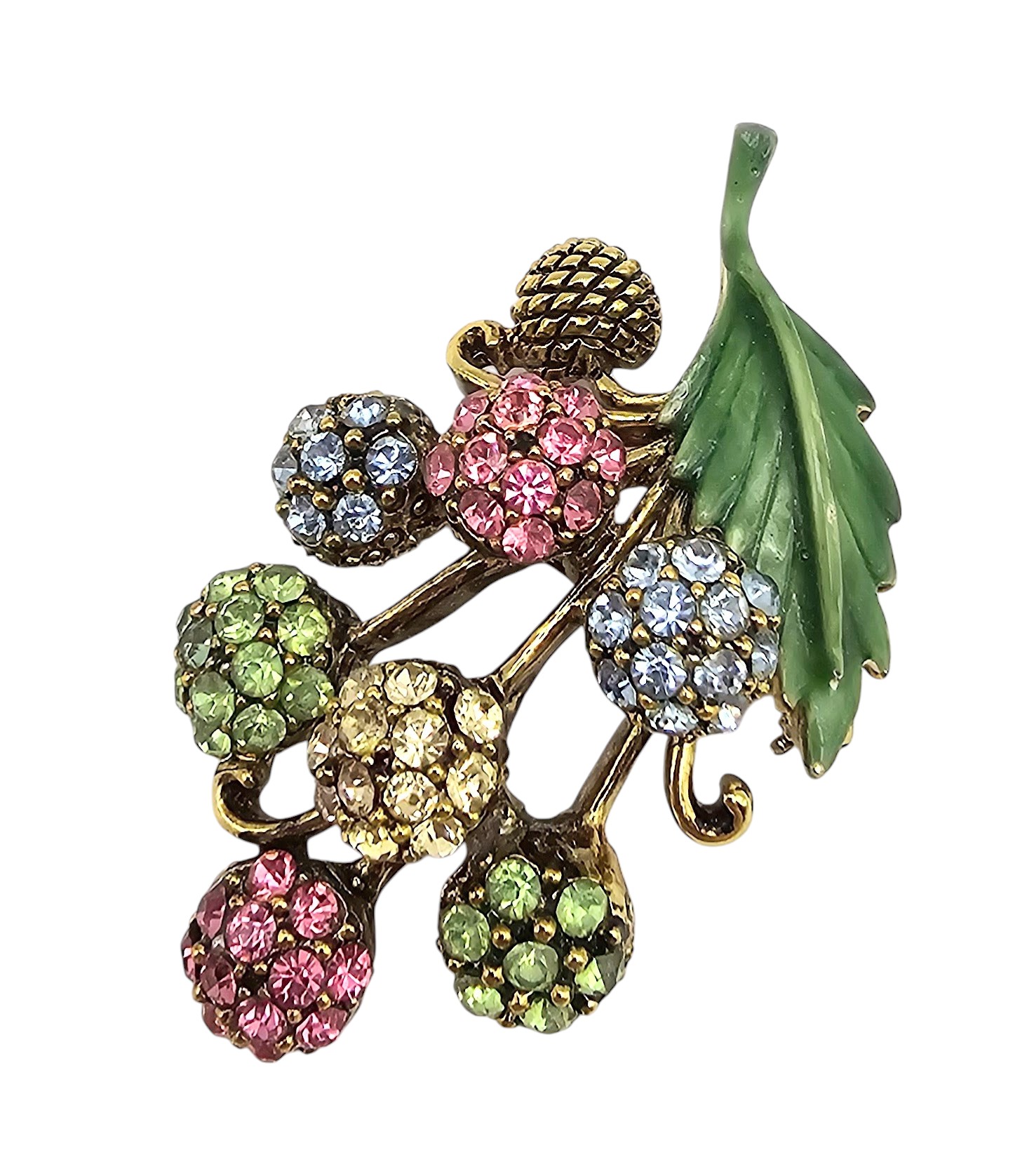 Hollycraft Colorful Rhinestone Enamel Gold Tone Floral Bouquet Brooch
