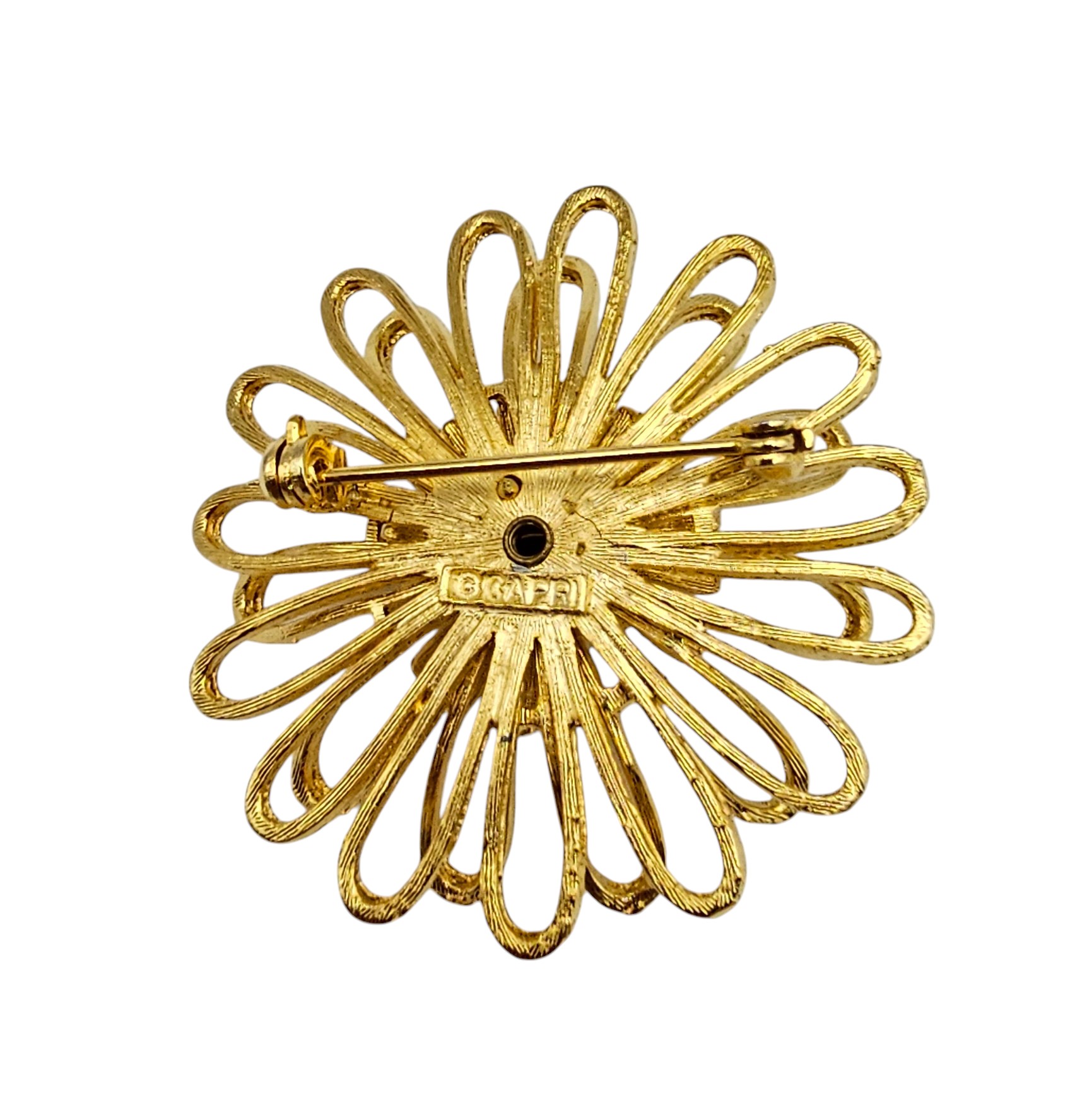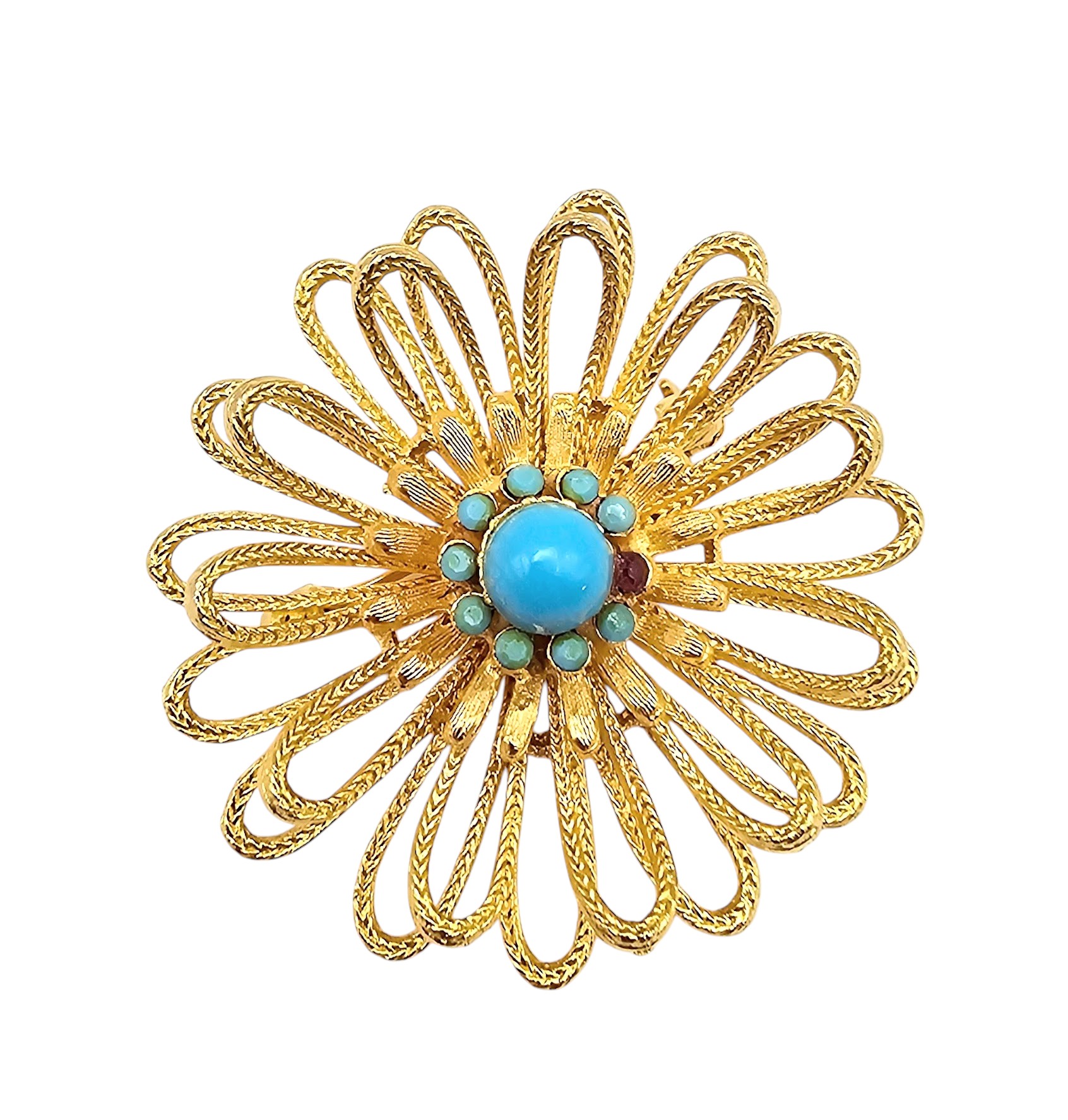 Capri Faux Turquoise Gold Tone Layered Flower Brooch