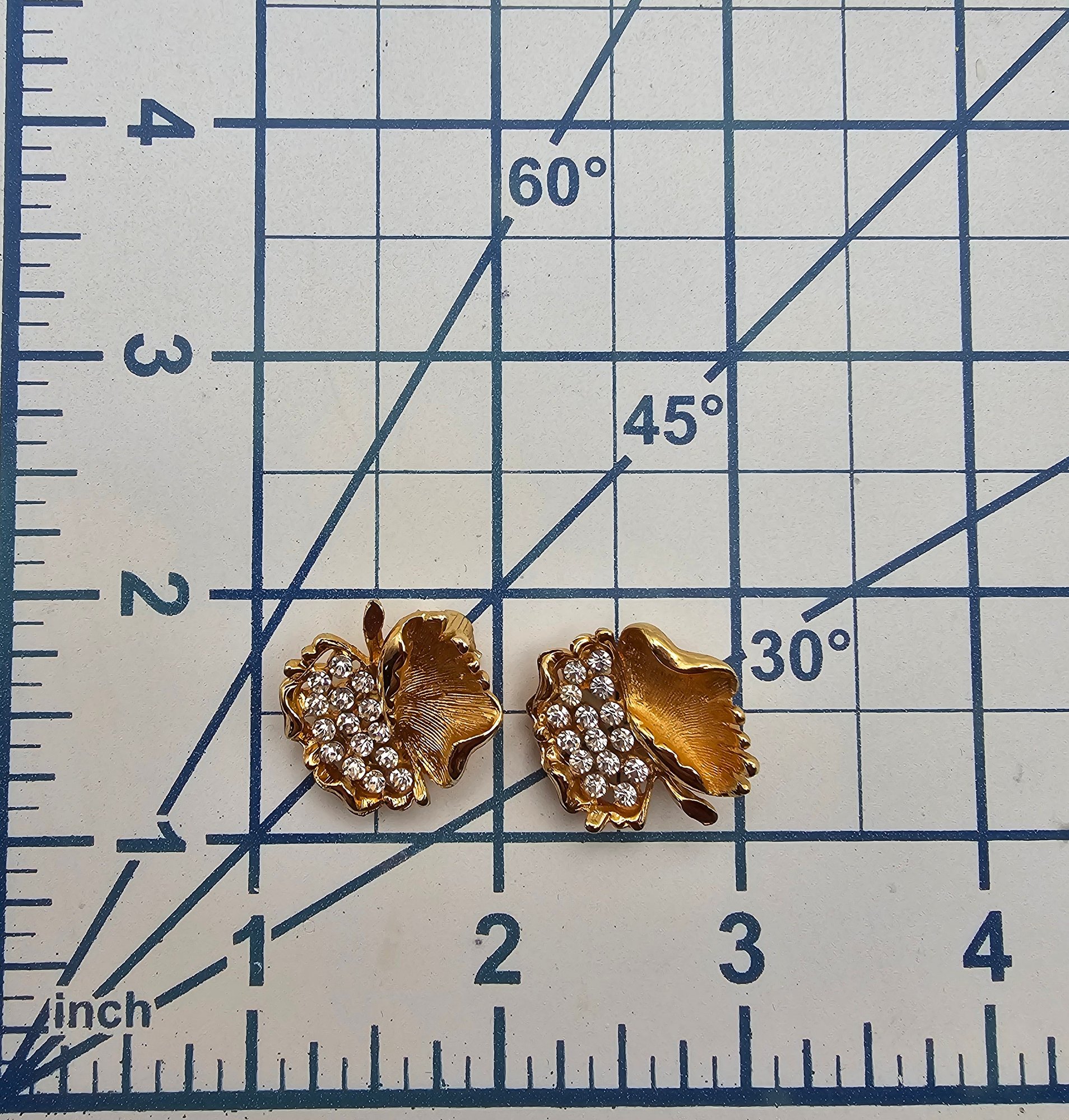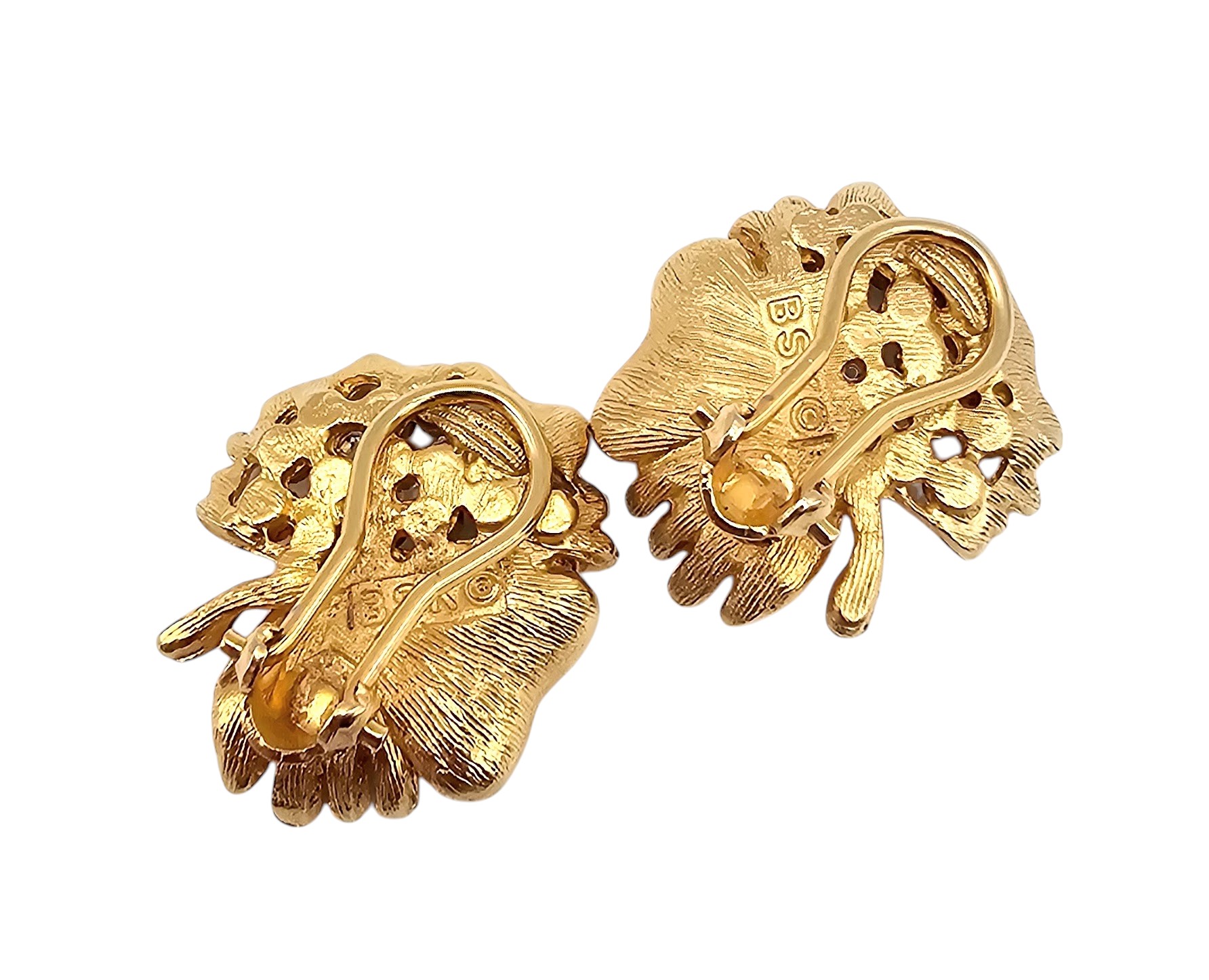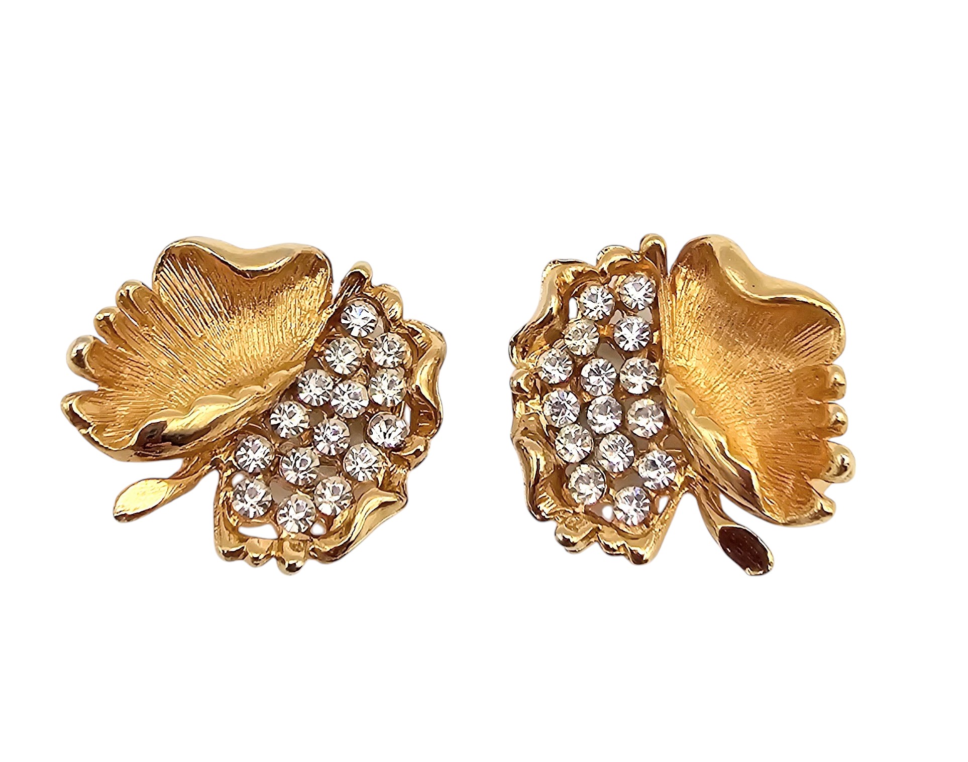 BSK Rhinestone Gold Tone Curled Leaf Earrings