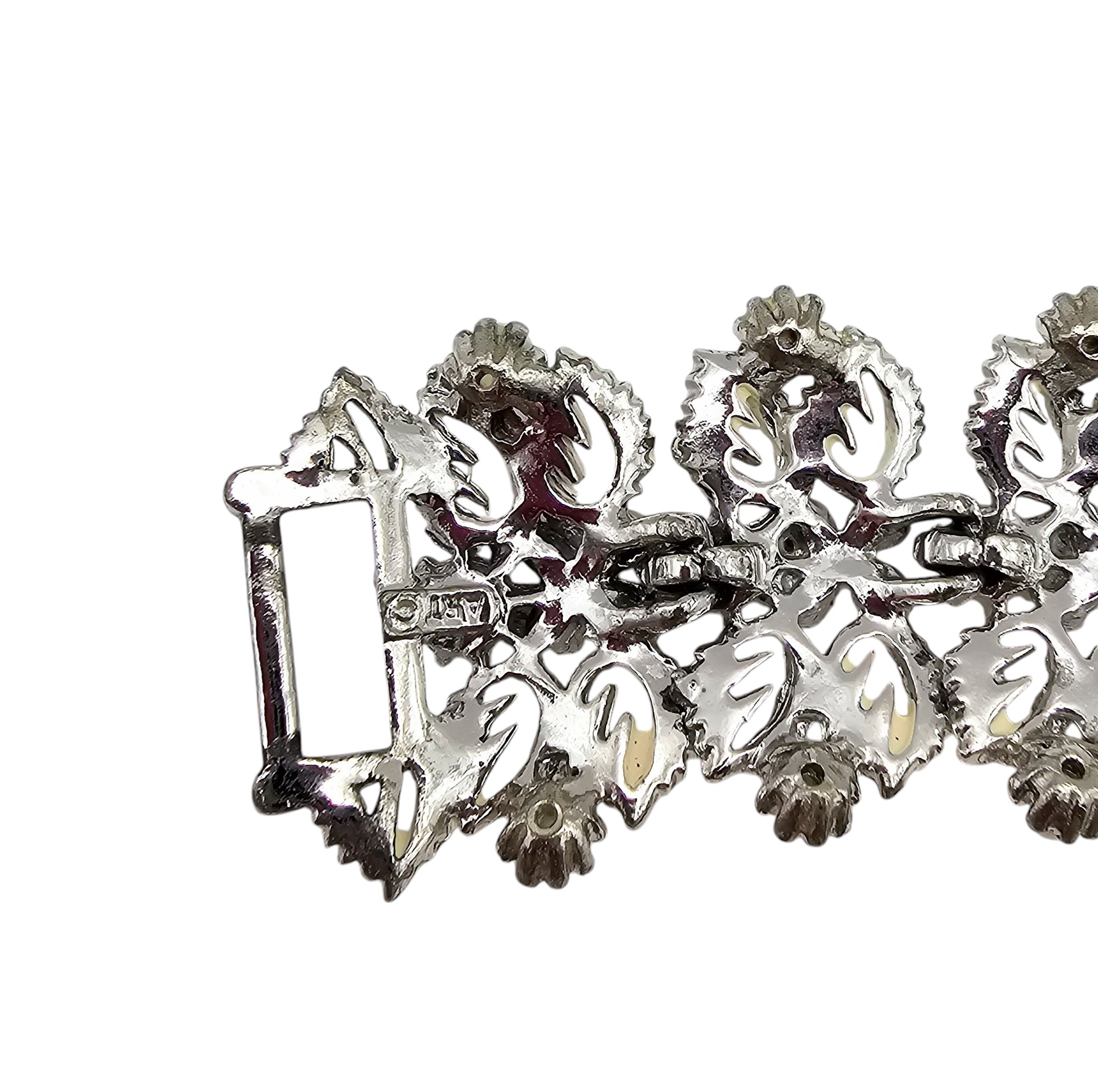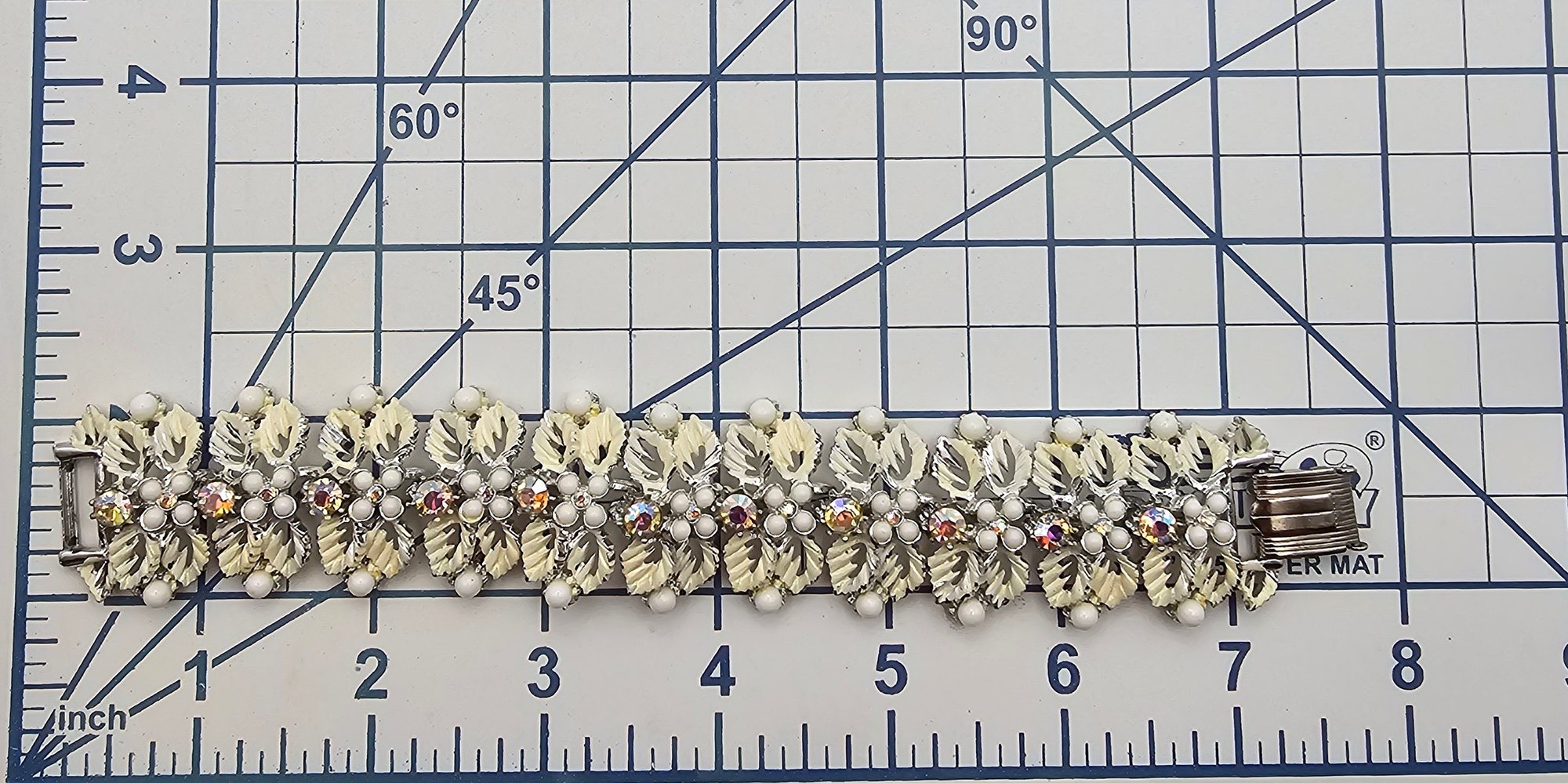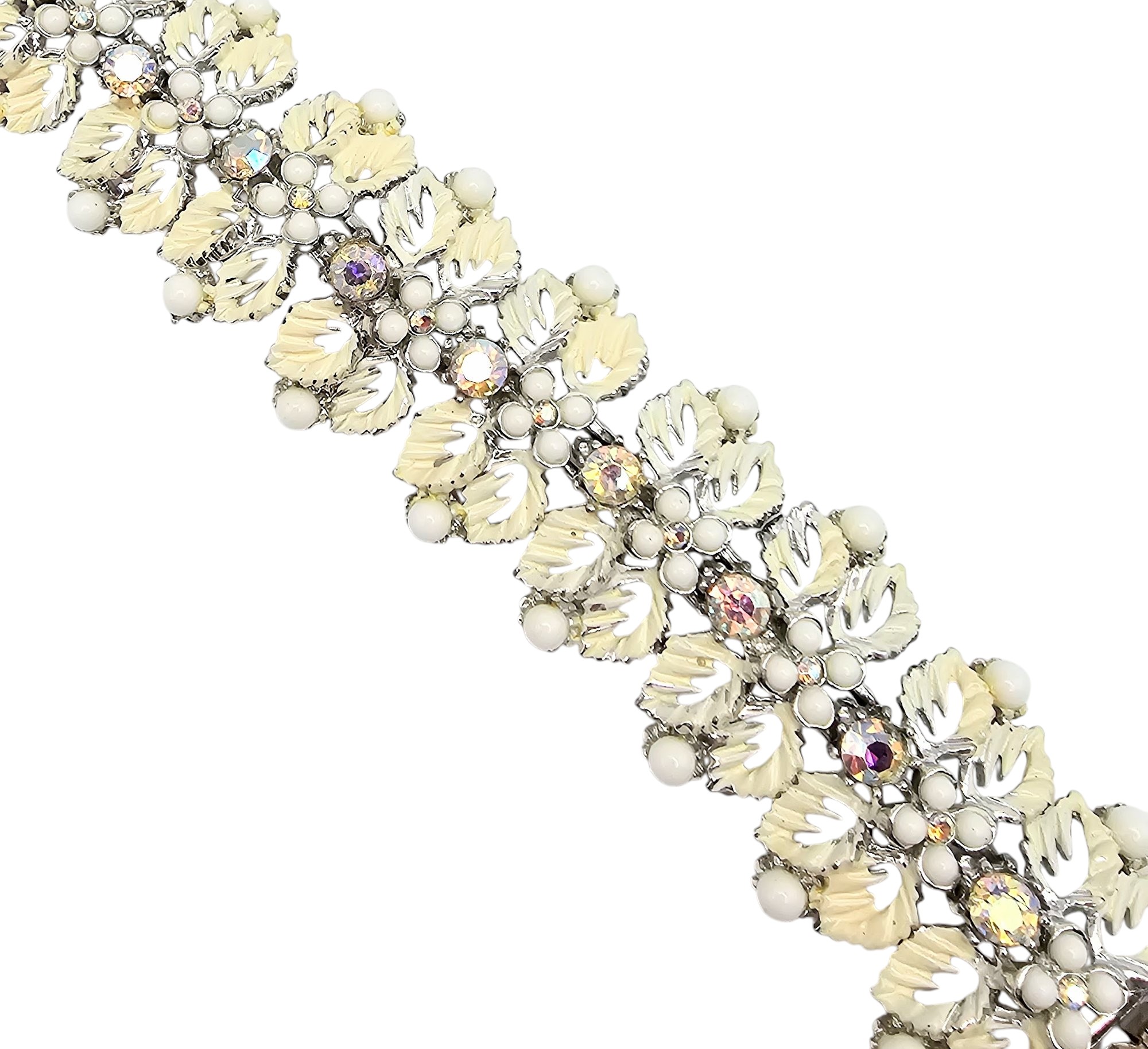 ART Aurora Borealis Rhinestone White Enamel Floral Link Bracelet