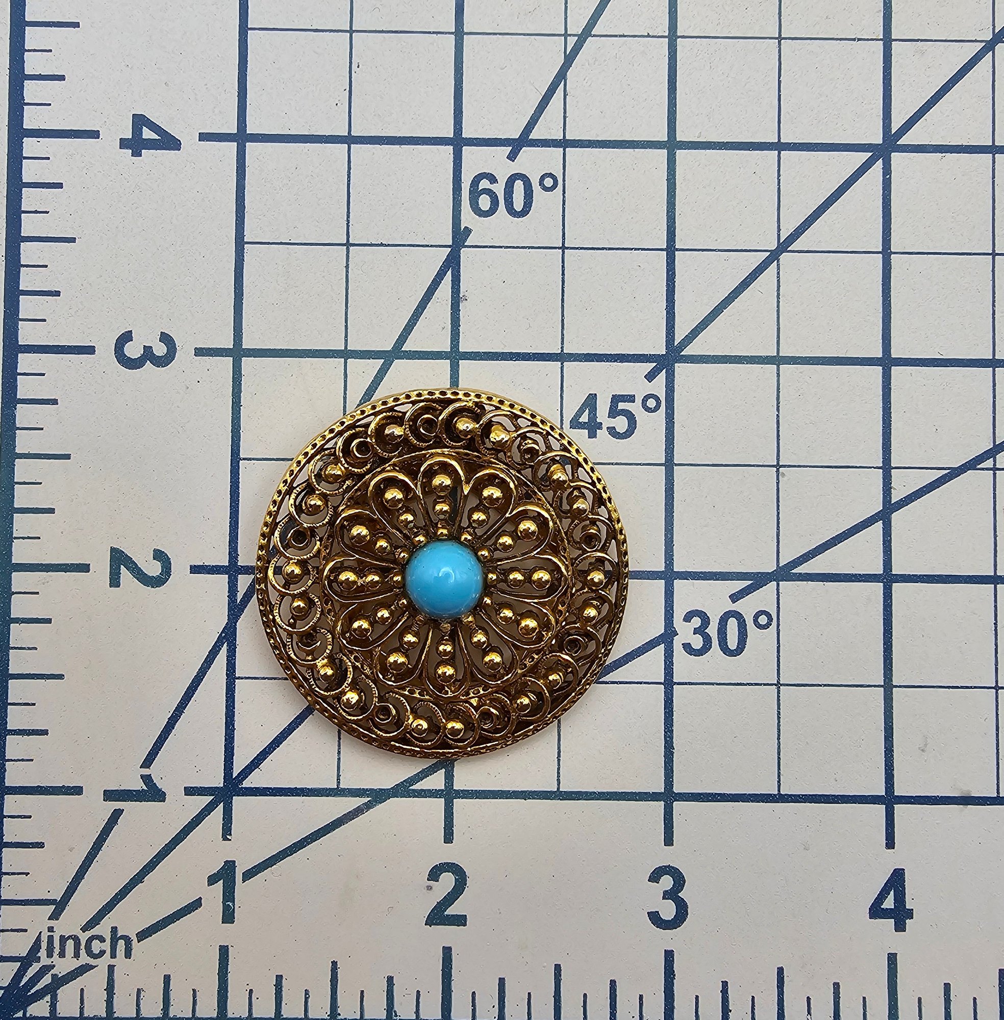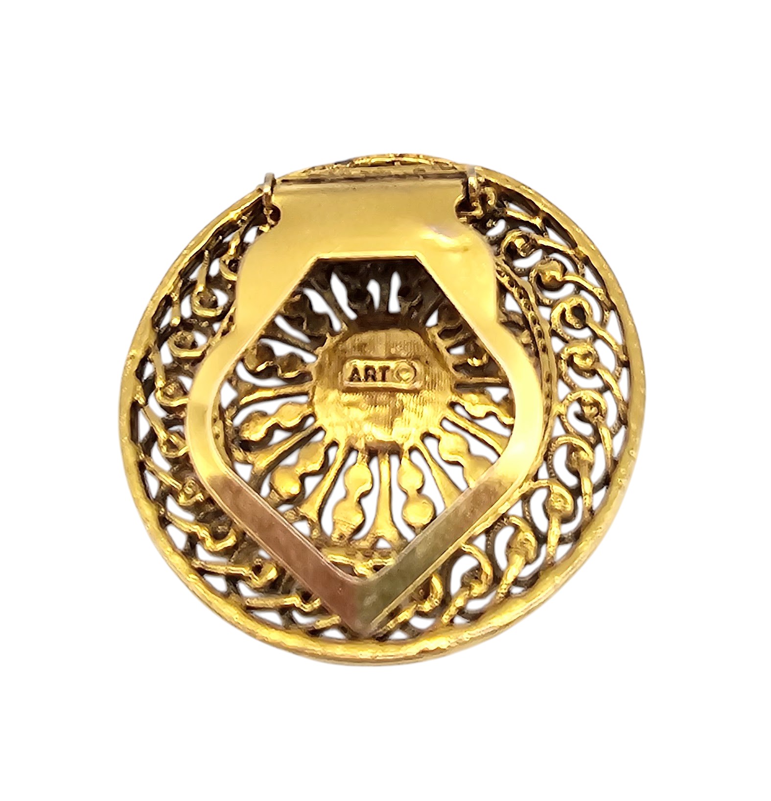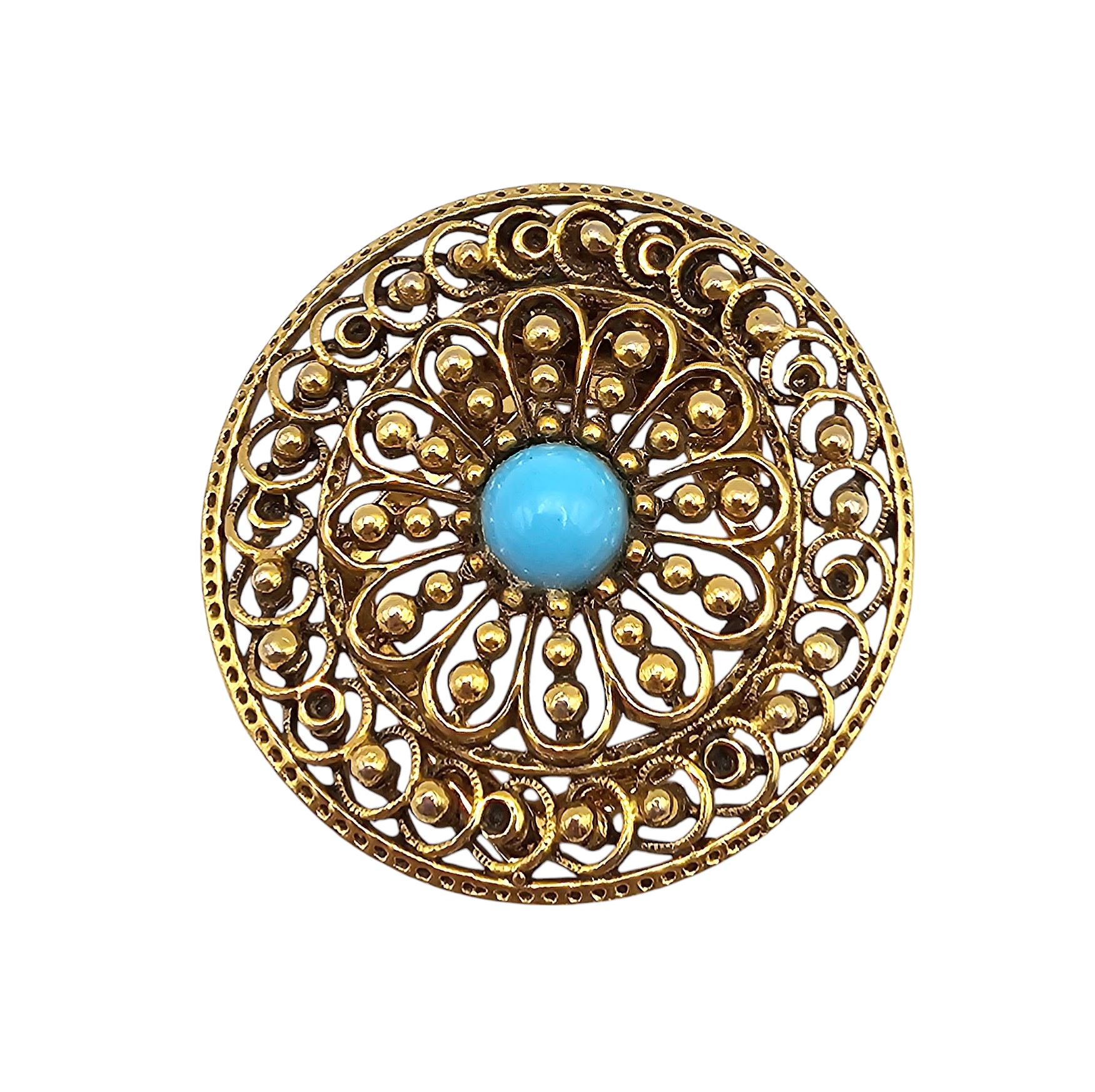 ART Faux Turquoise Gold Tone Round Clip