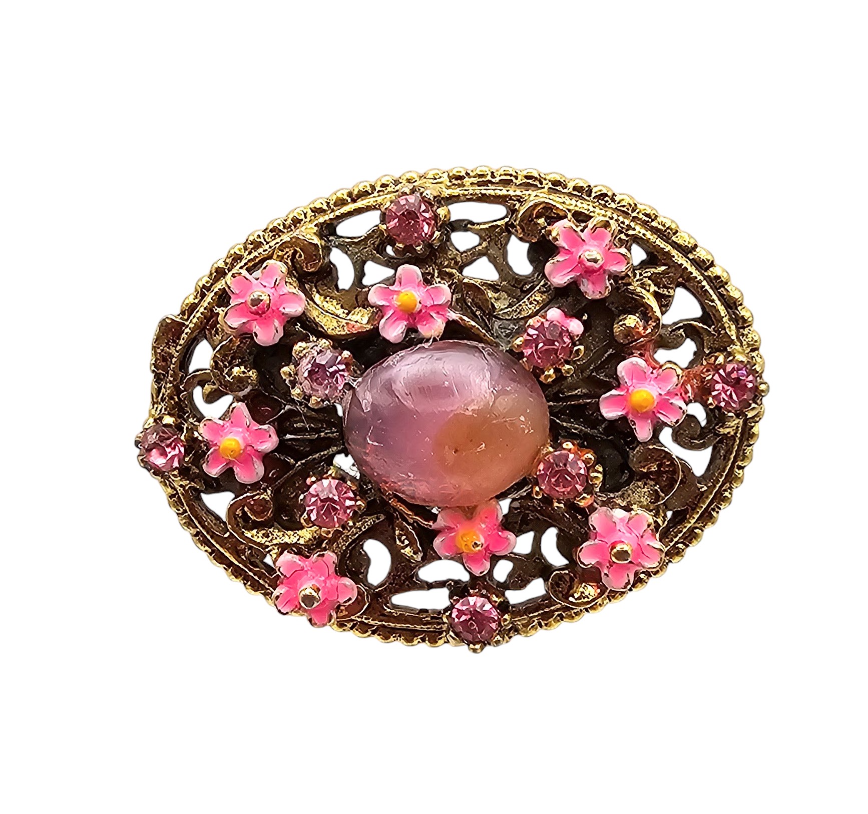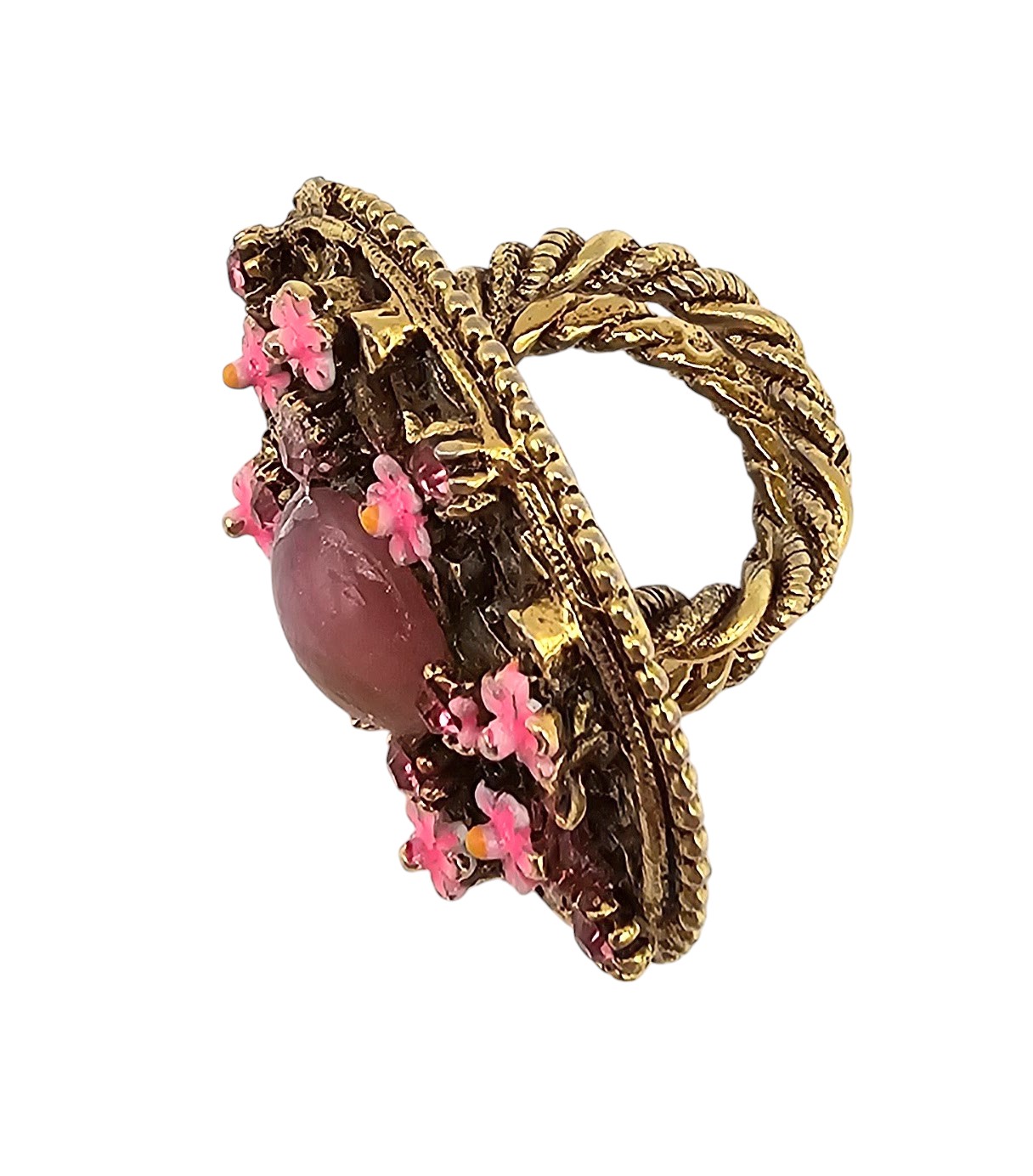 ART Pink Rhinestone Enamel Flower Ring Size 1.5