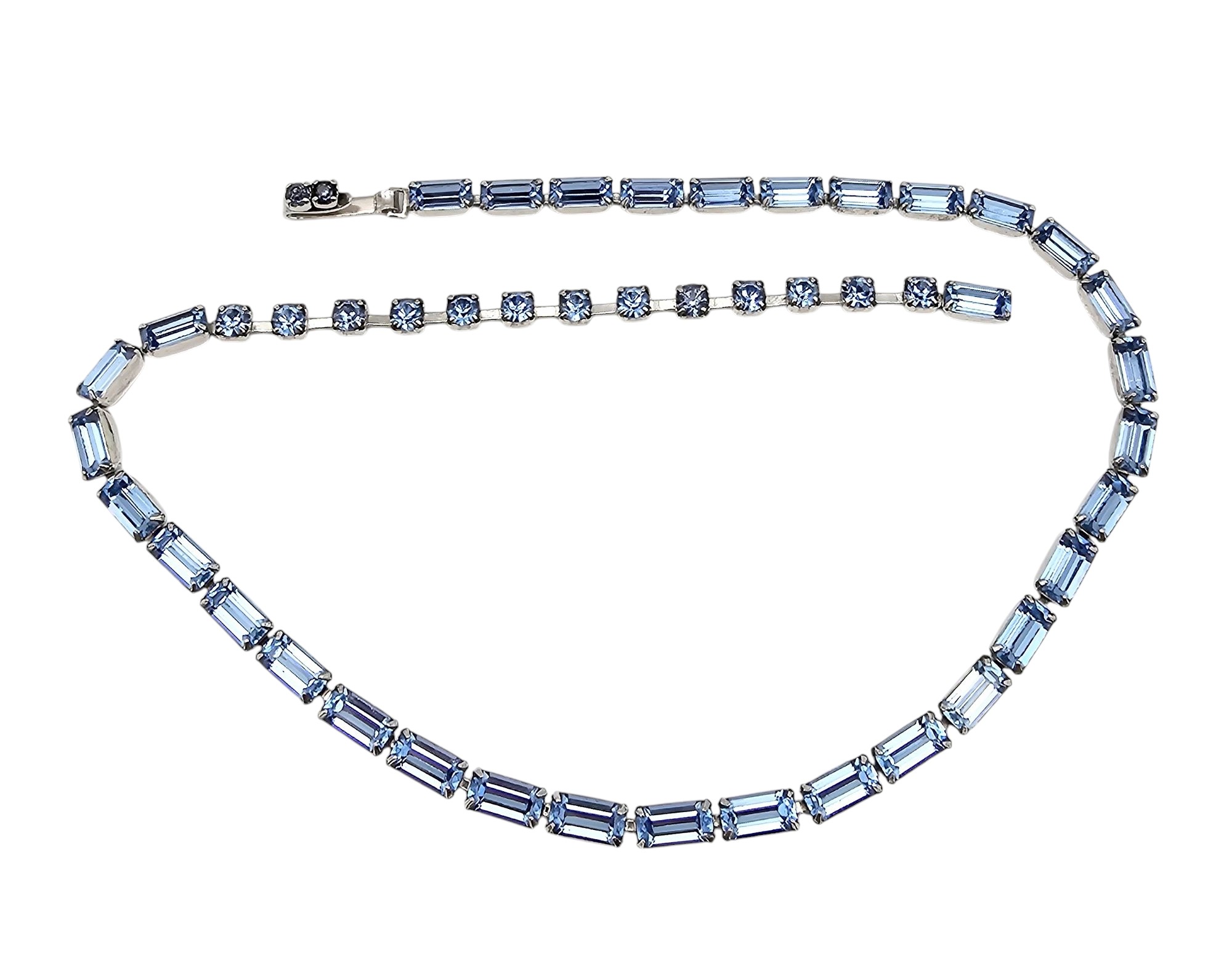 Fenichel Blue Baguette Rhinestone Silver Tone Necklace