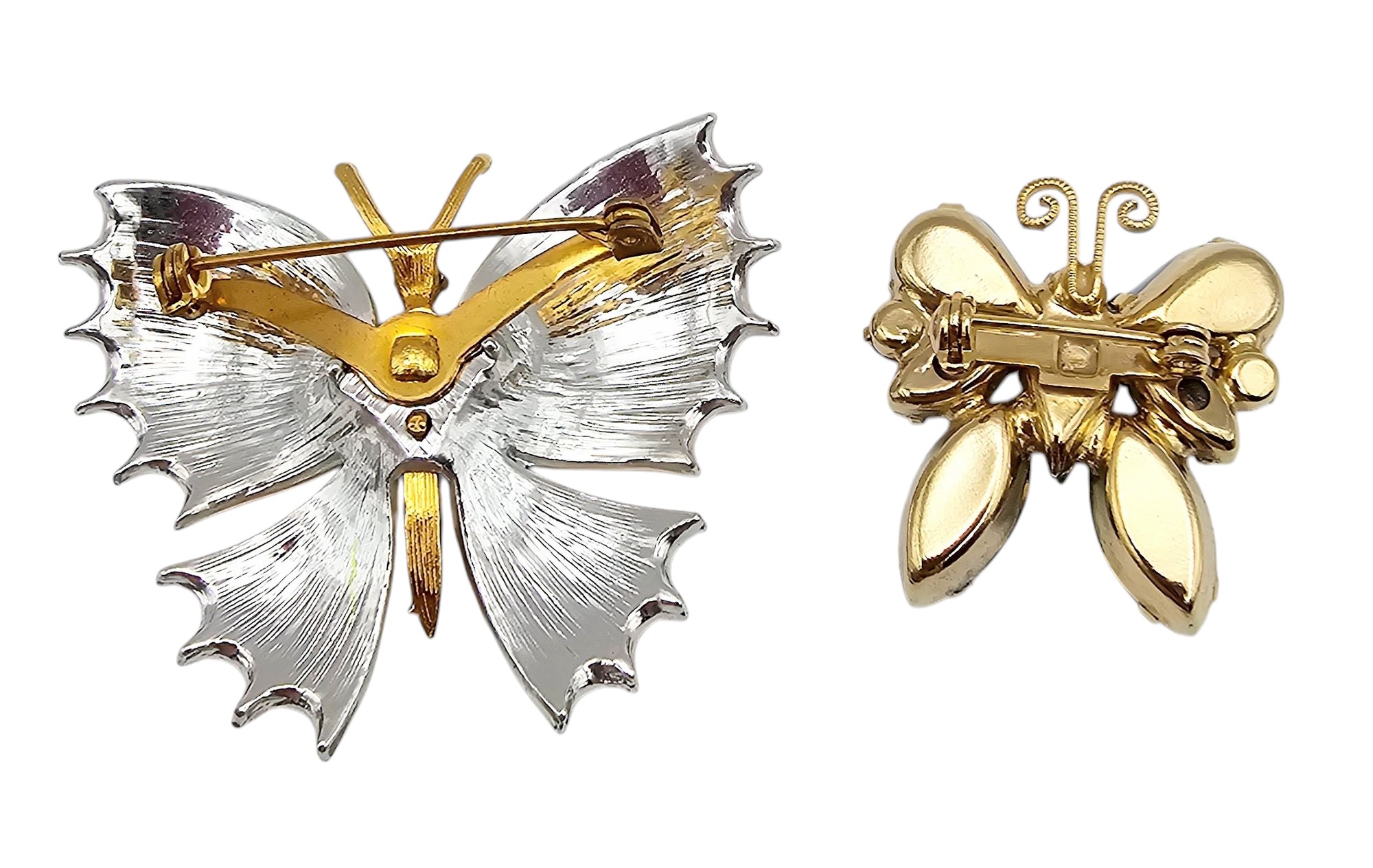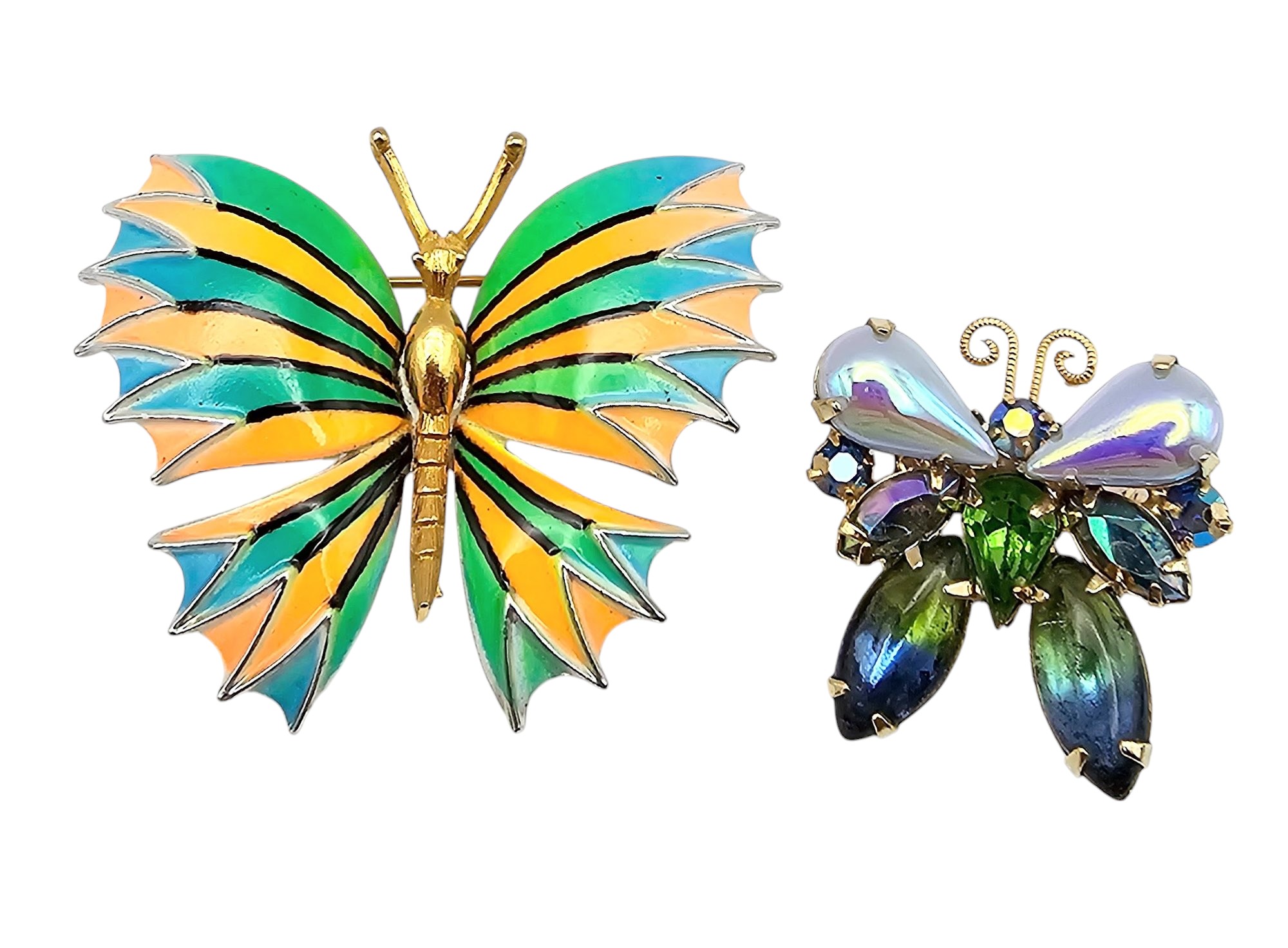 Vintage Lot 2 Rhinestone Enamel Butterfly Brooches