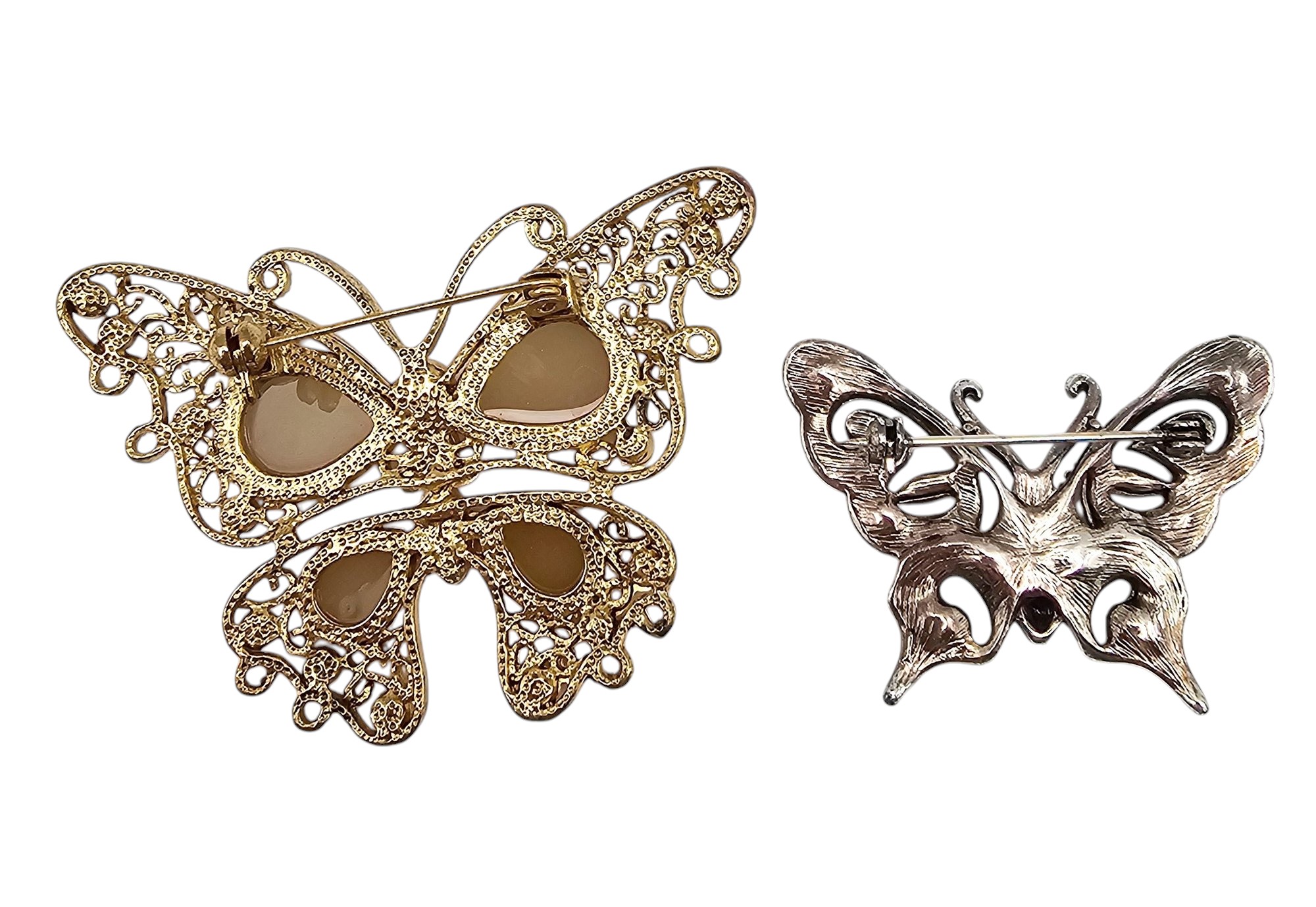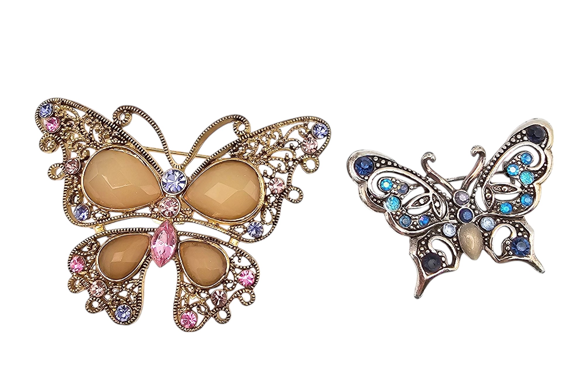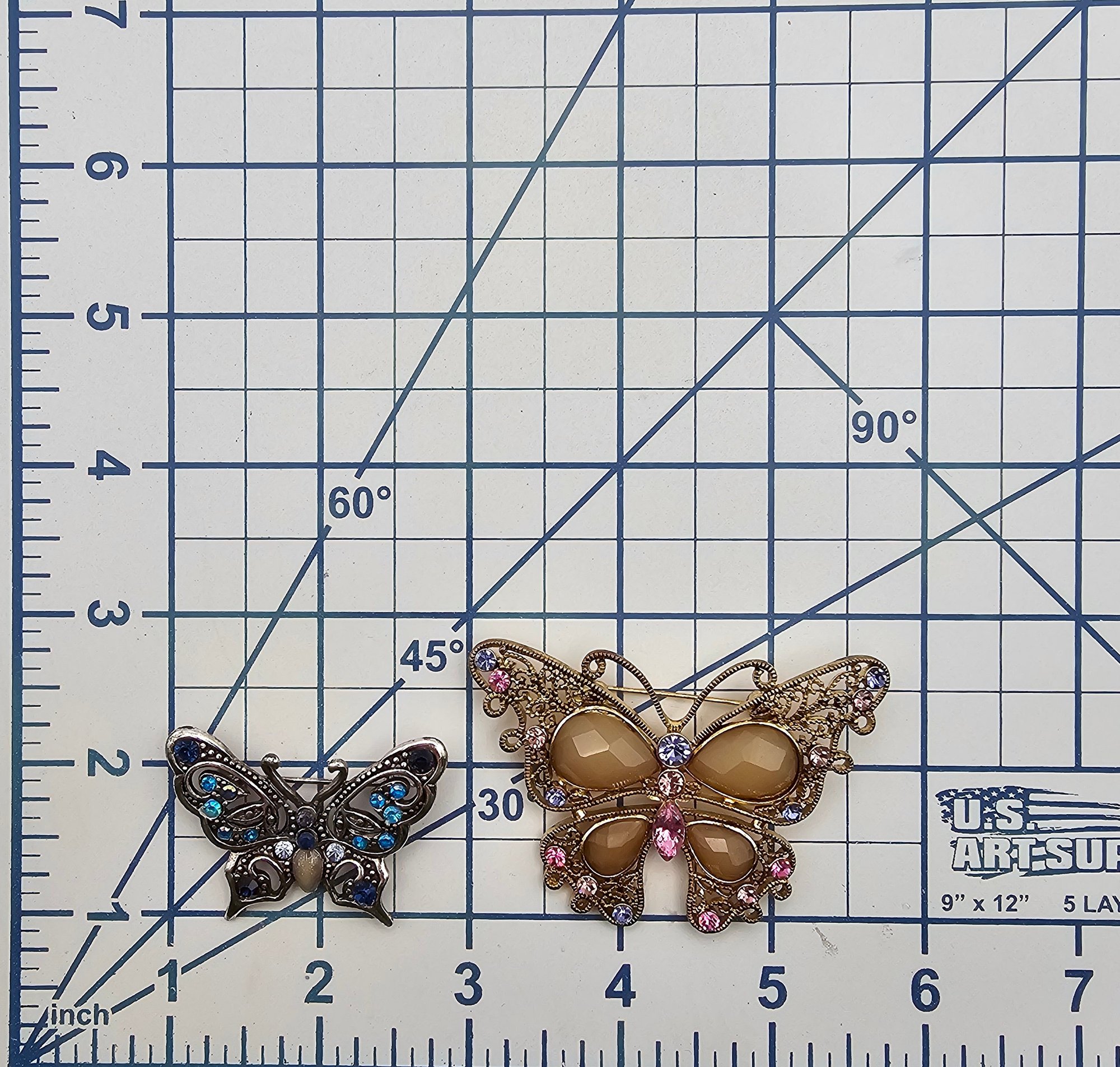 Lot 2 Rhinestone Blue Pink Butterfly Brooches