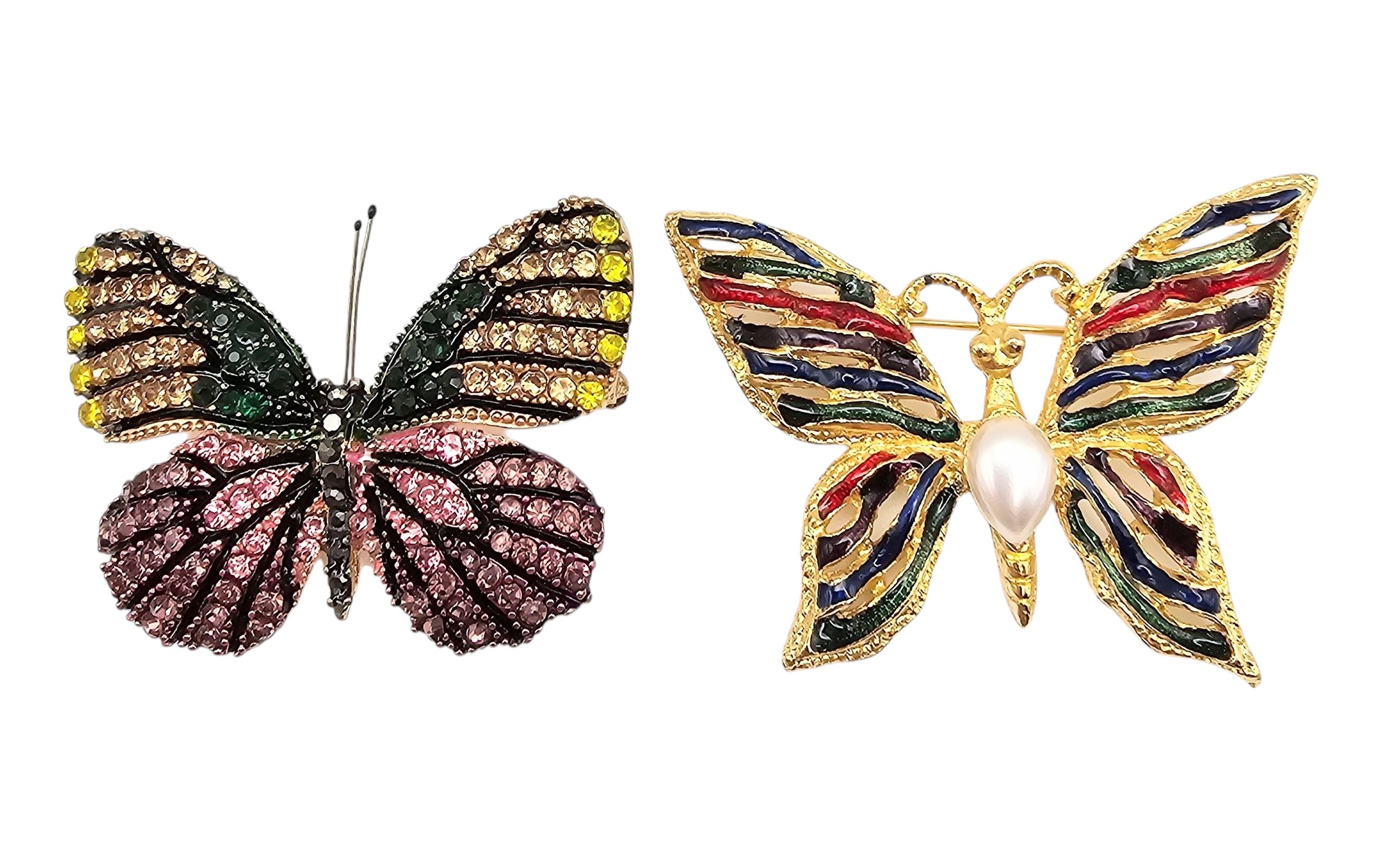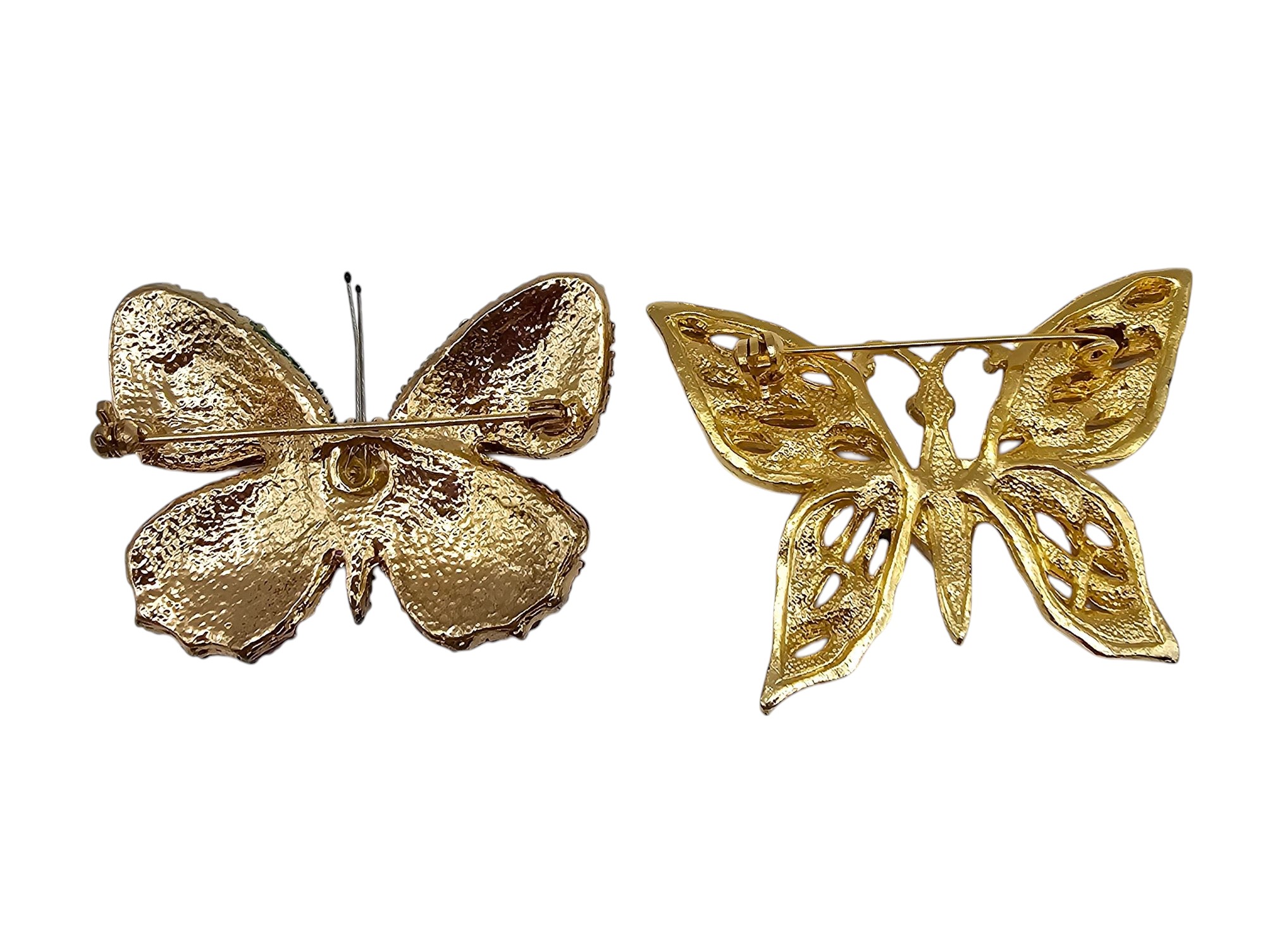 Lot 2 Dark Rhinestone Butterfly Brooches