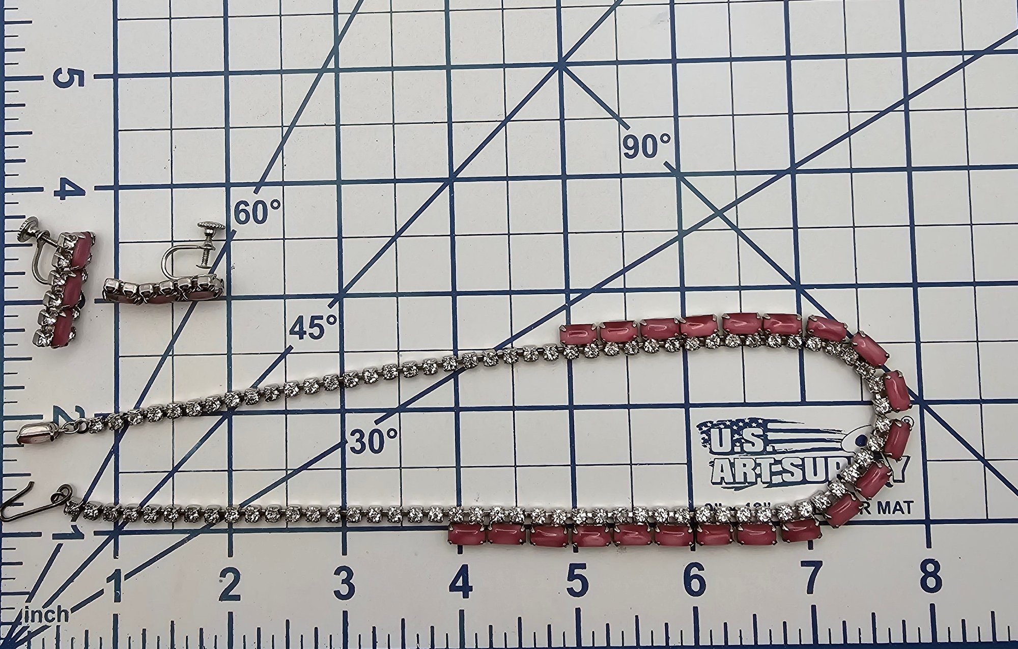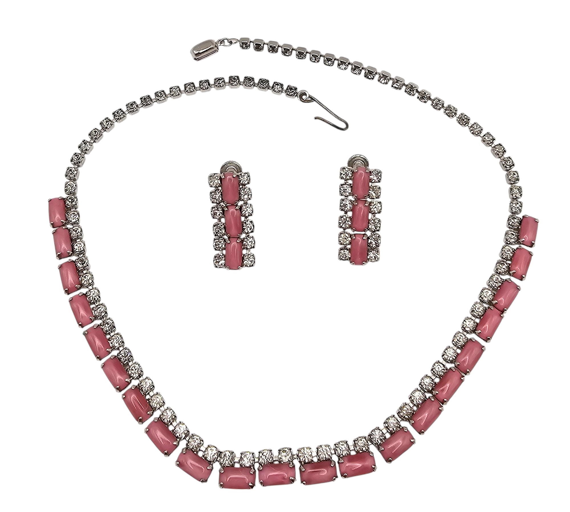 Vintage Lot Pink Clear Rhinestone Choker Necklace Earrings Set