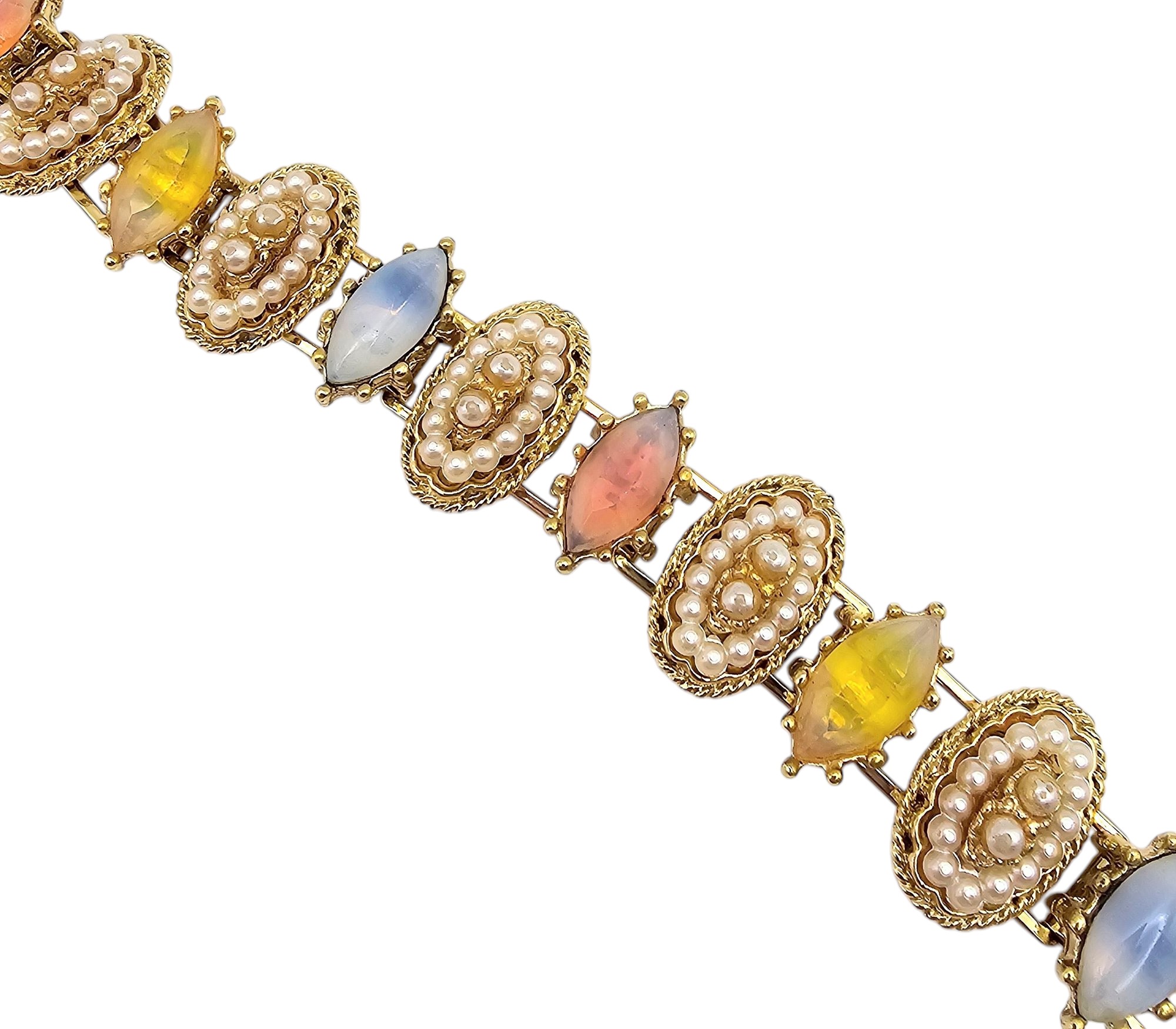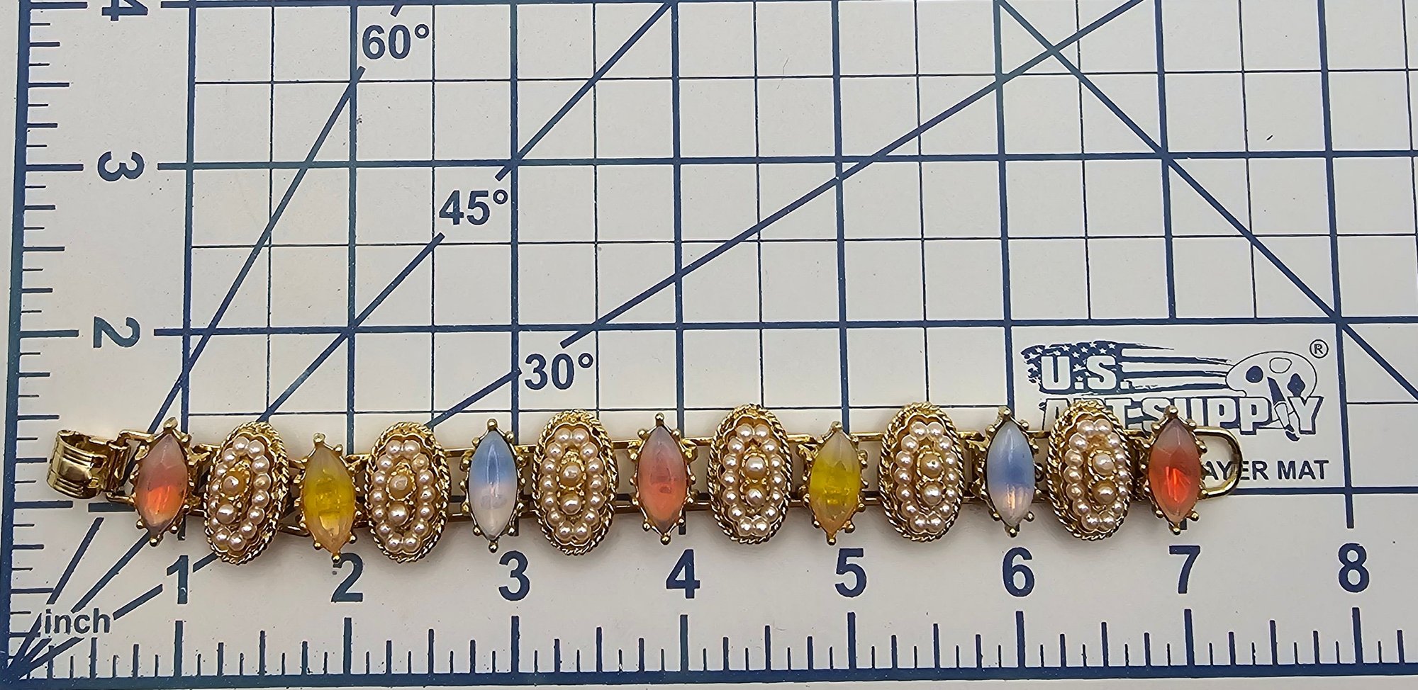 Faux Pearl Plastic Gold Tone Victorian Style Bracelet