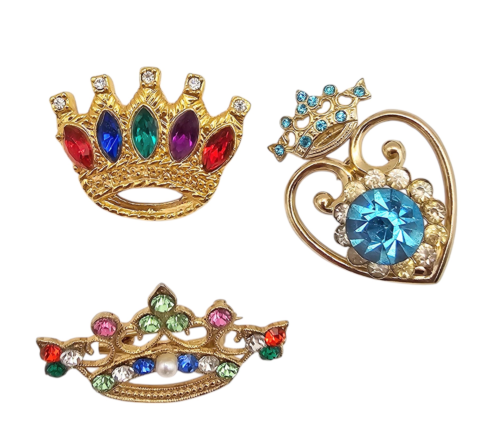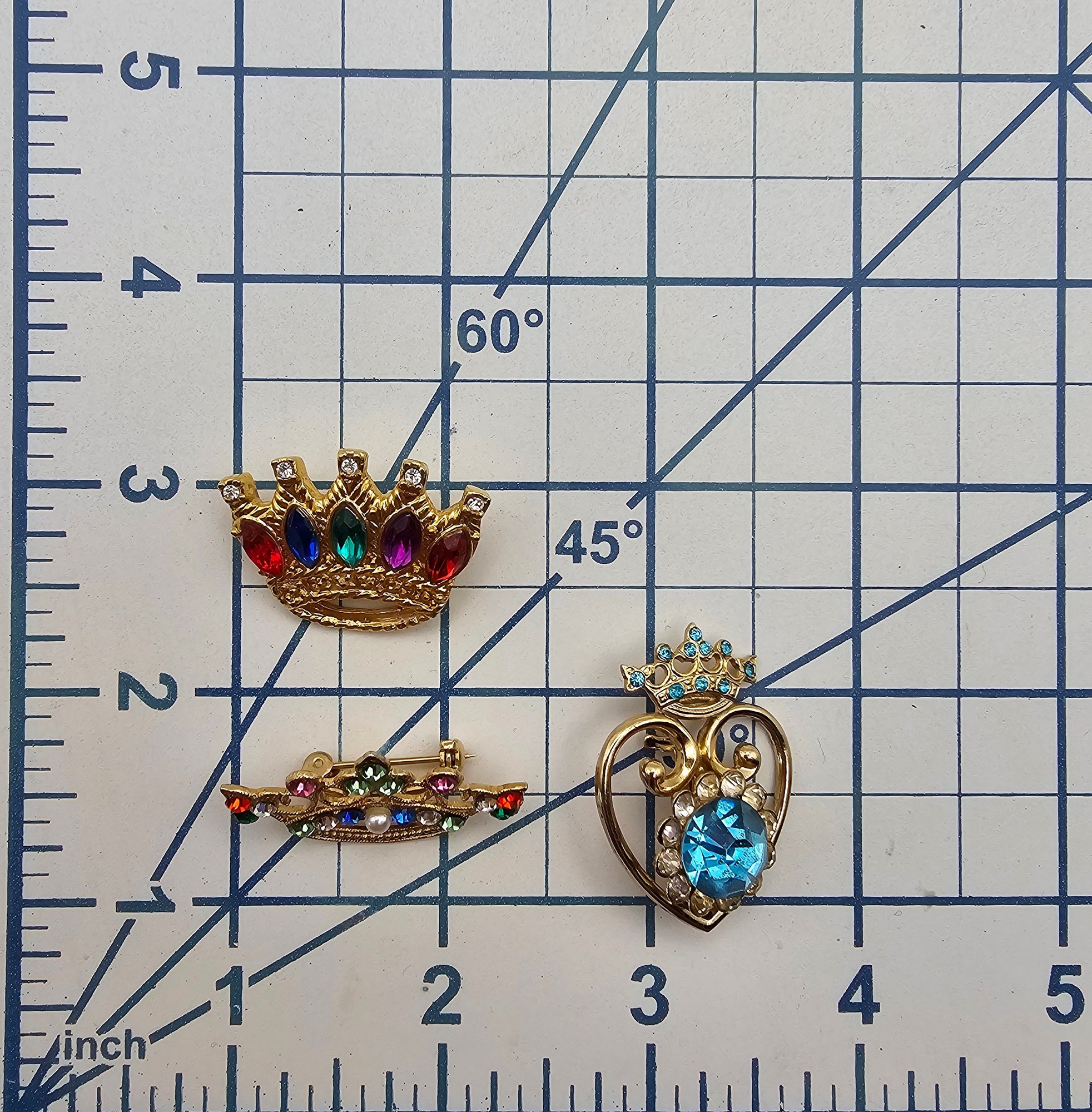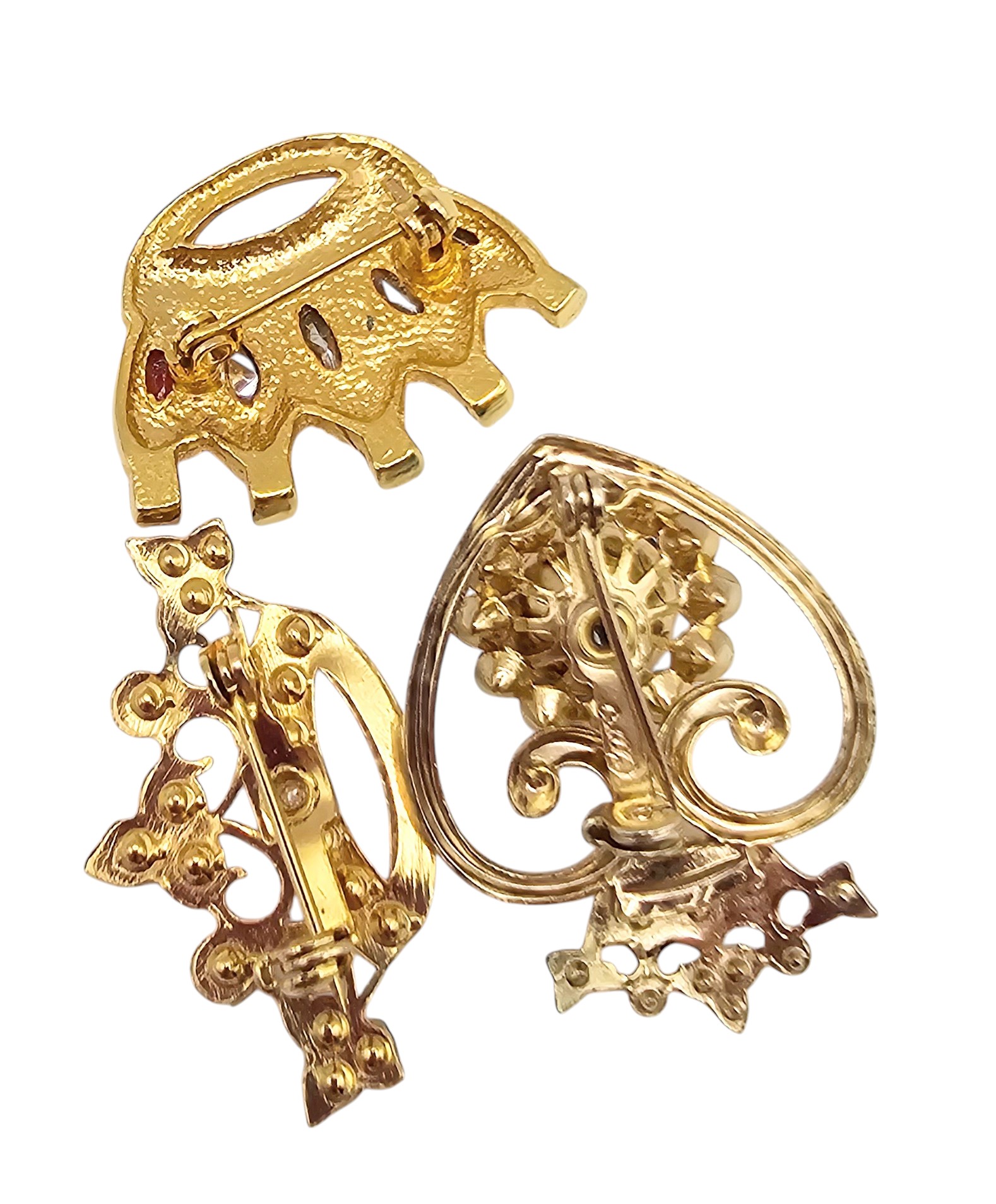 Lot 3 Colorful Rhinestone Gold Tone Brooches