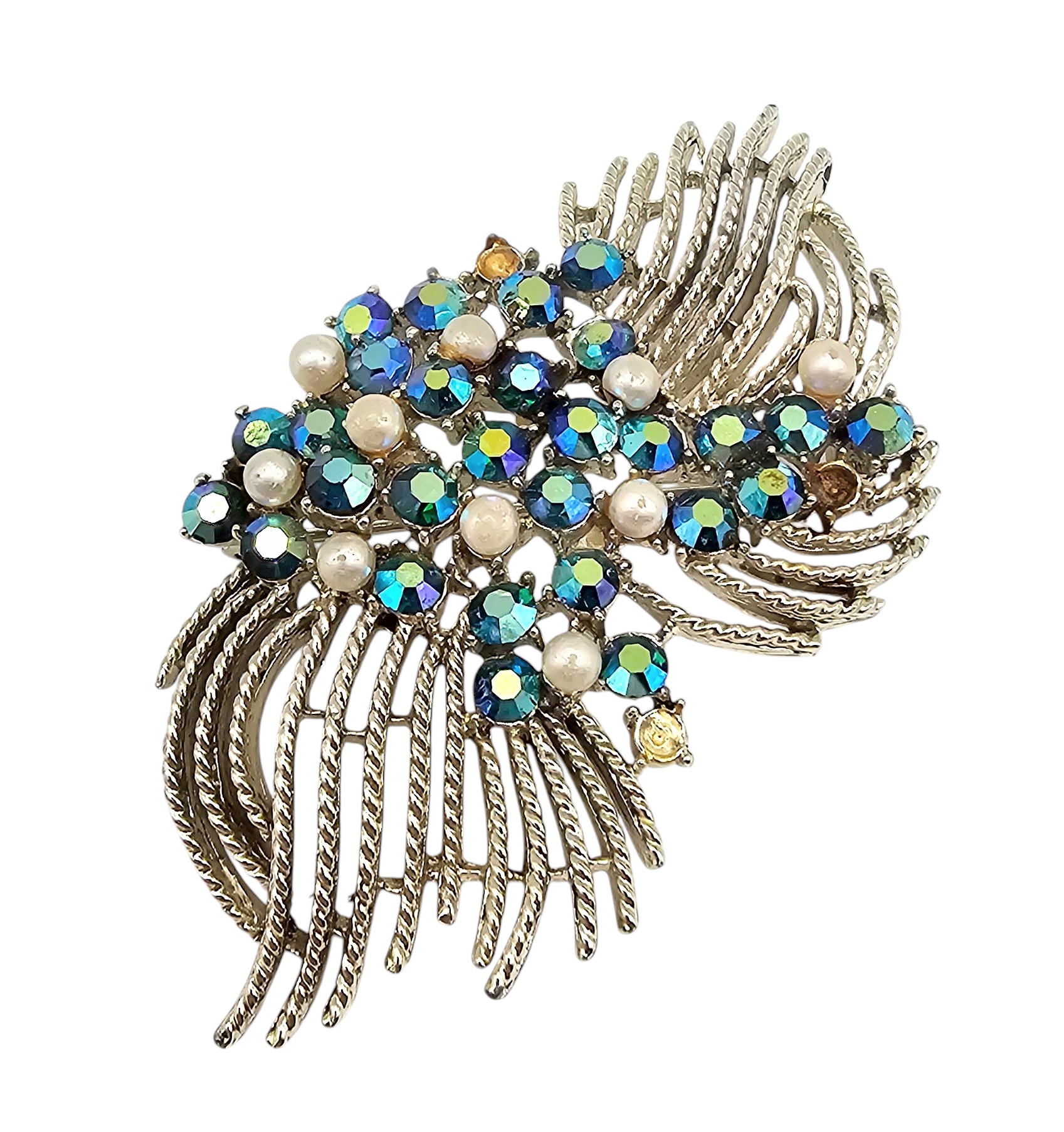 Pegasus Corocraft Vintage Faux Pearl Rhinestone Brooch as is