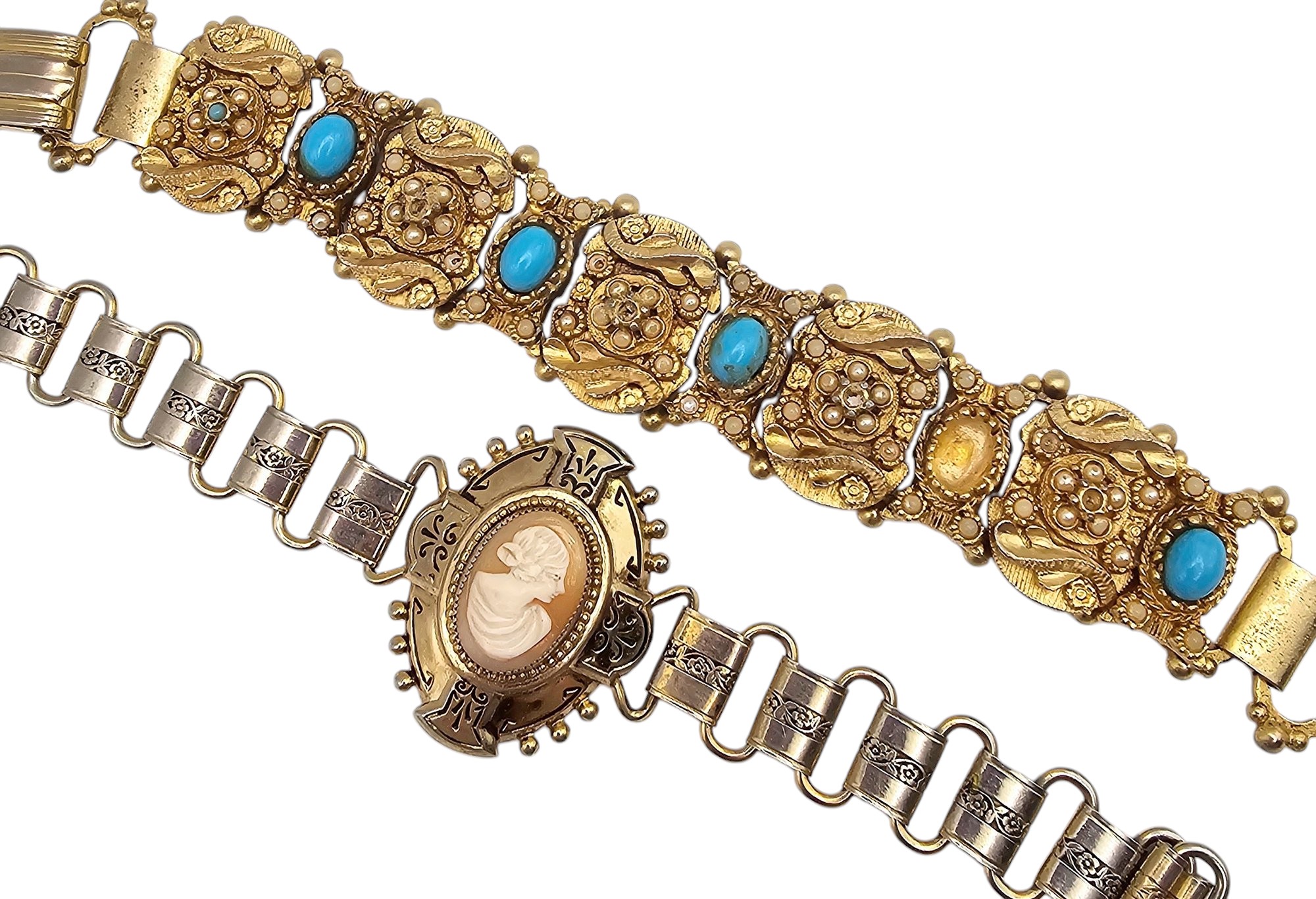 Lot 2 Victorian Style Bracelets Cameo Faux Pearl