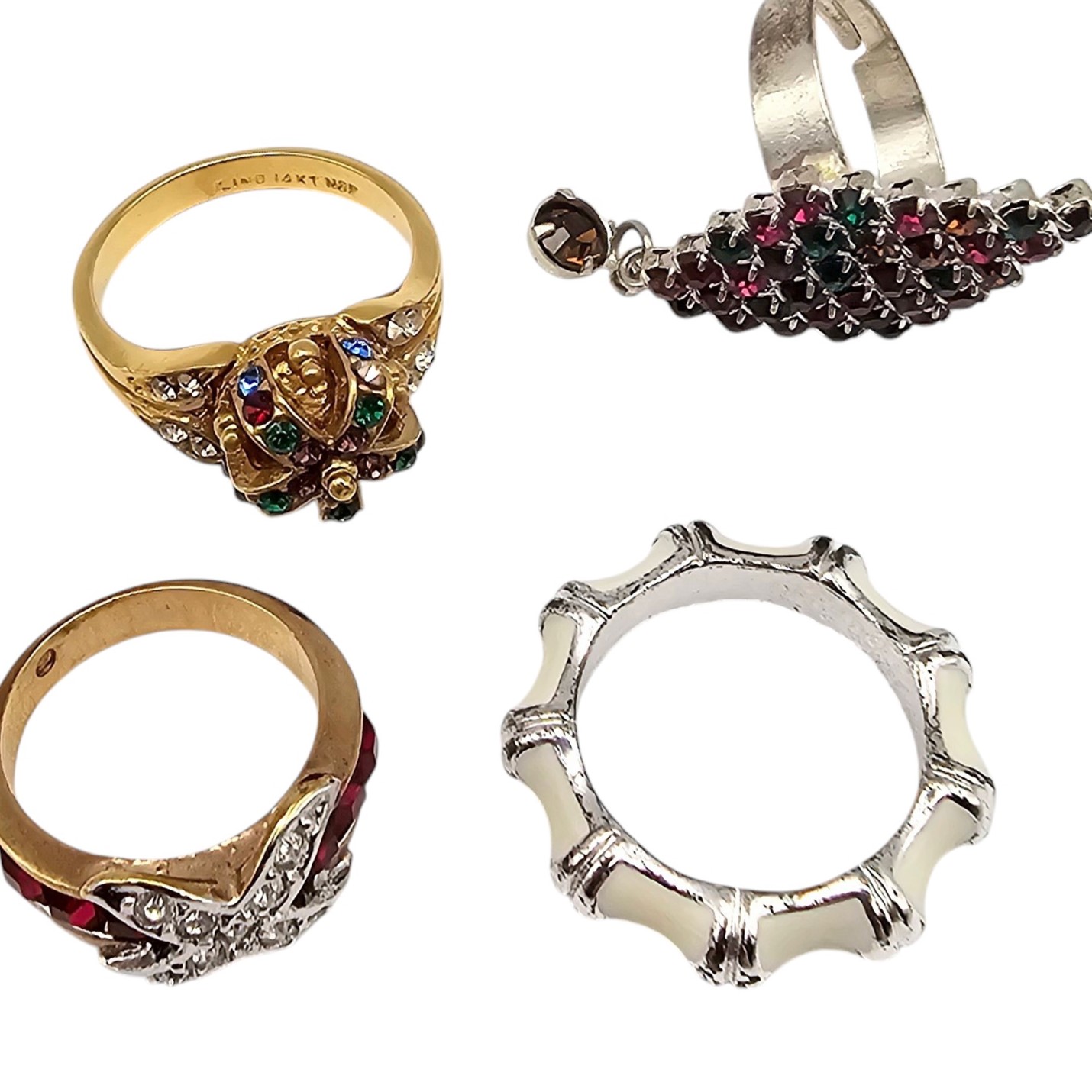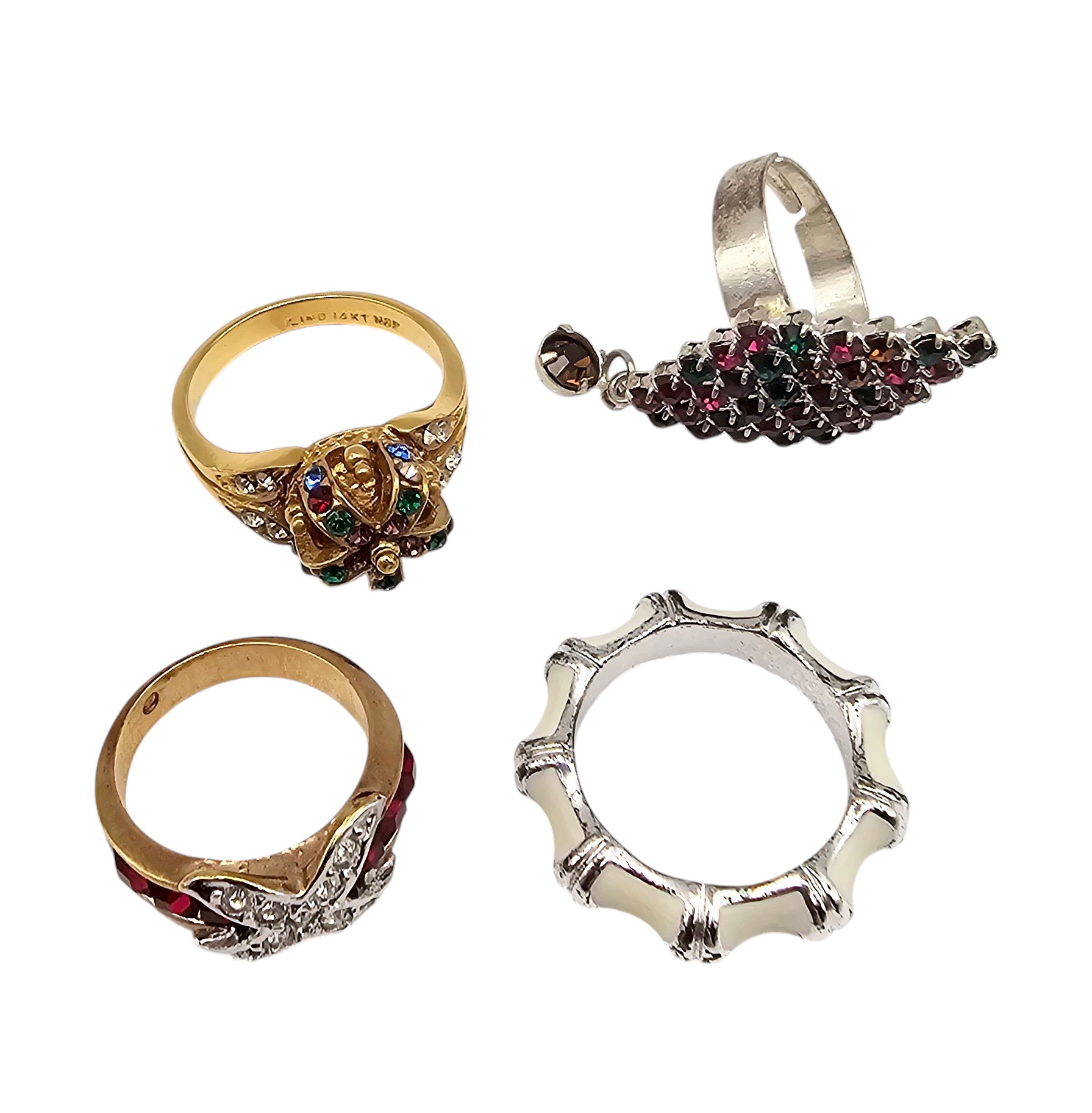 Lot 4 Rhinestone Enamel Rings Size 7 Size 7.25 Size 9.25 Size 5.5