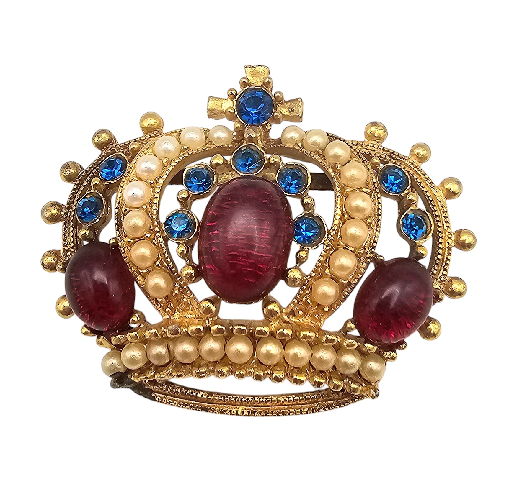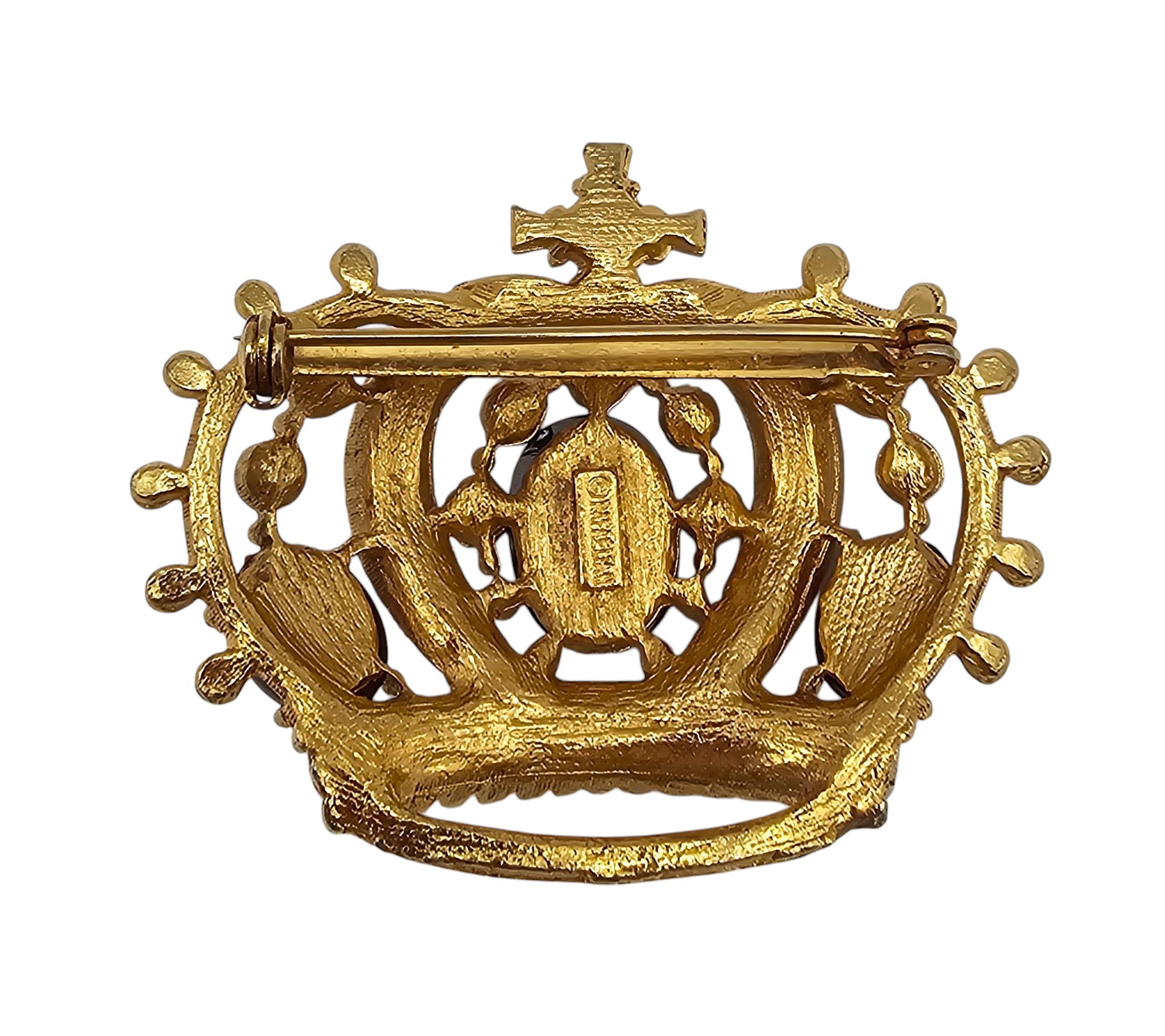 Rafaclian Faux Pearl Rhinestone Gold Tone Crown Brooch
