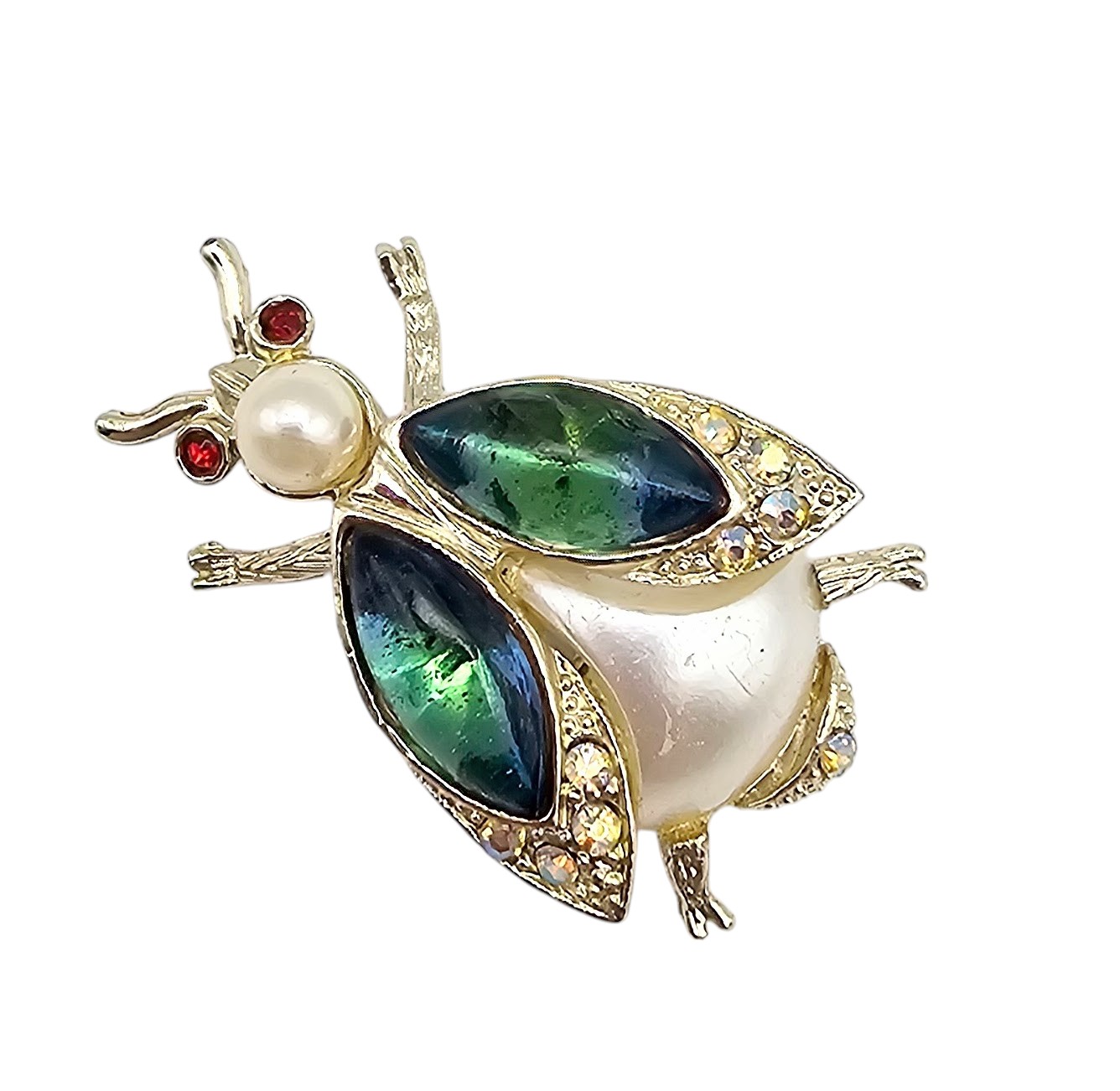 Rhinestone Faux Pearl beetle Bug Brooch