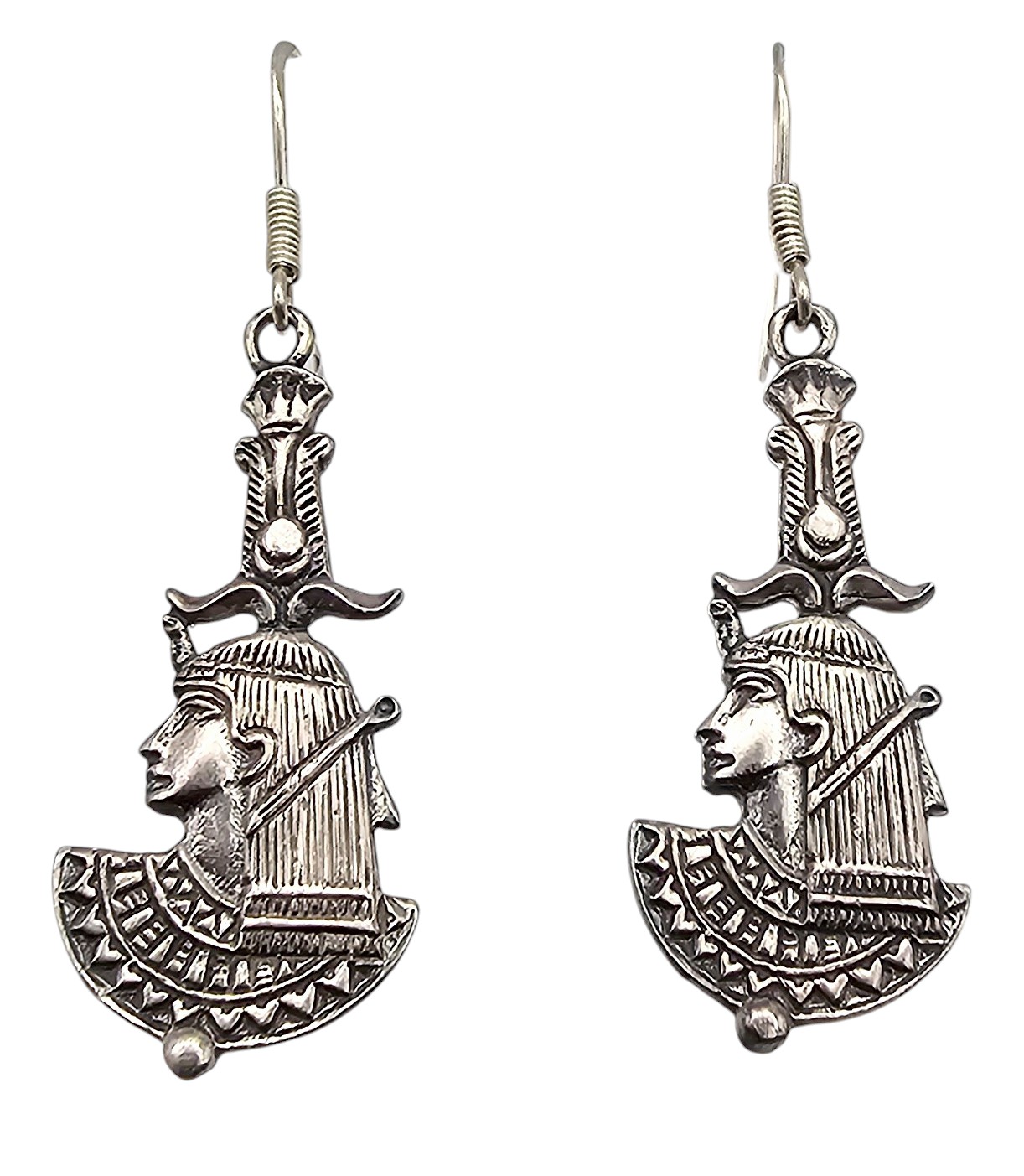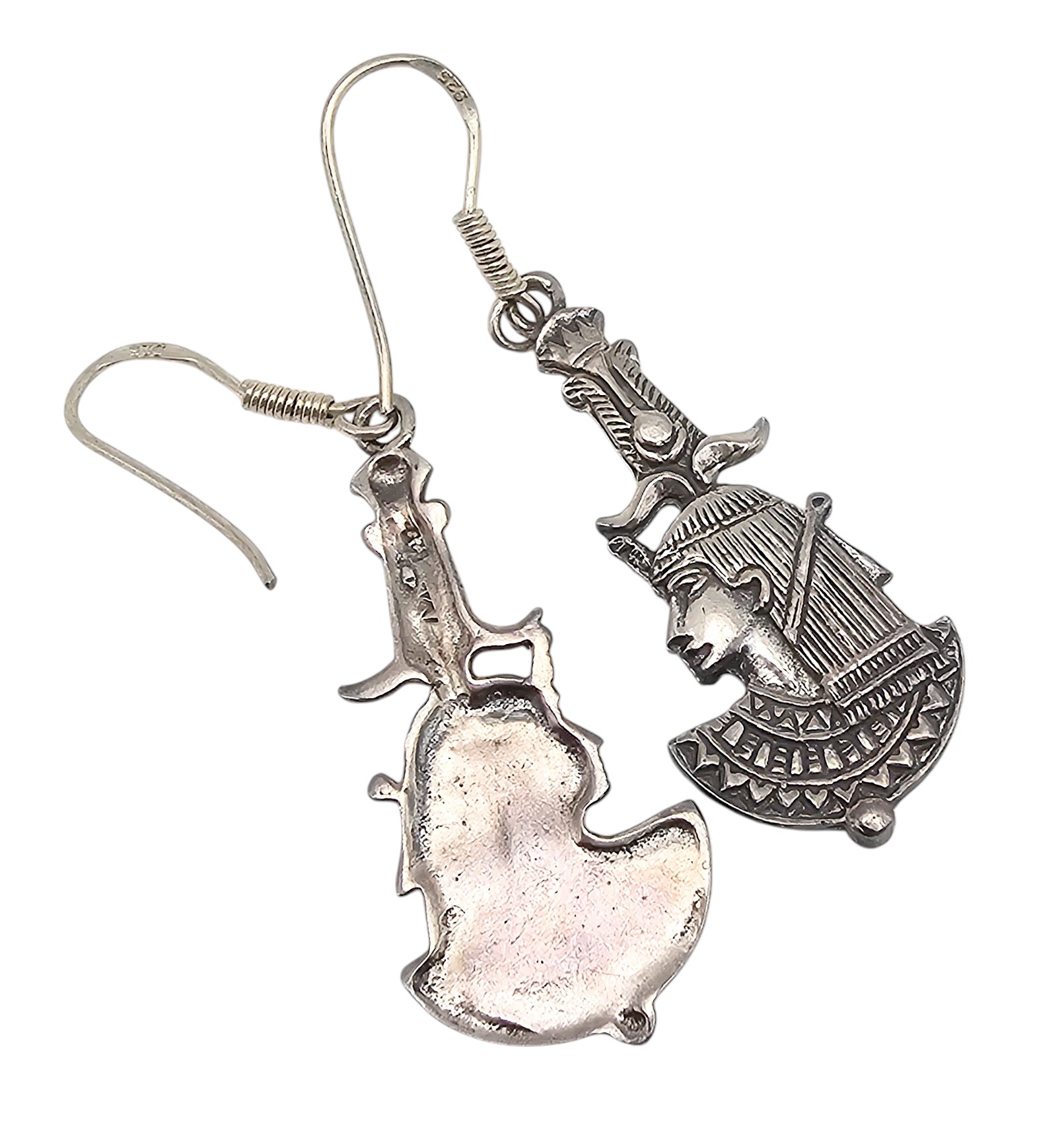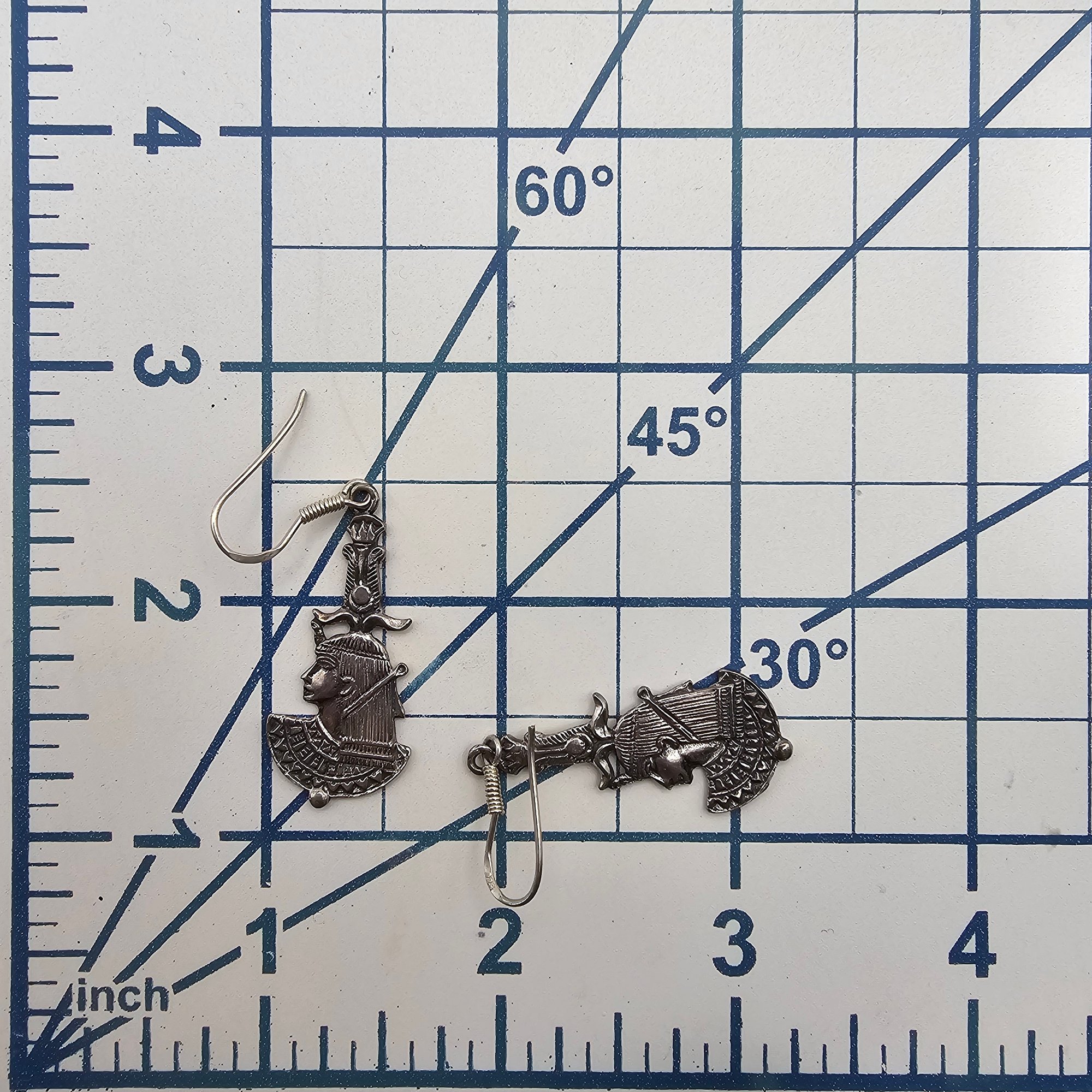 Sterling Silver Egyptian Revival Pharo Drop Dangle Earrings 4.4 G