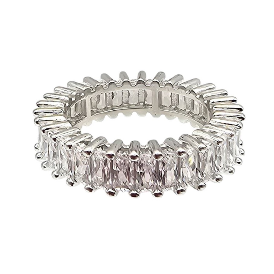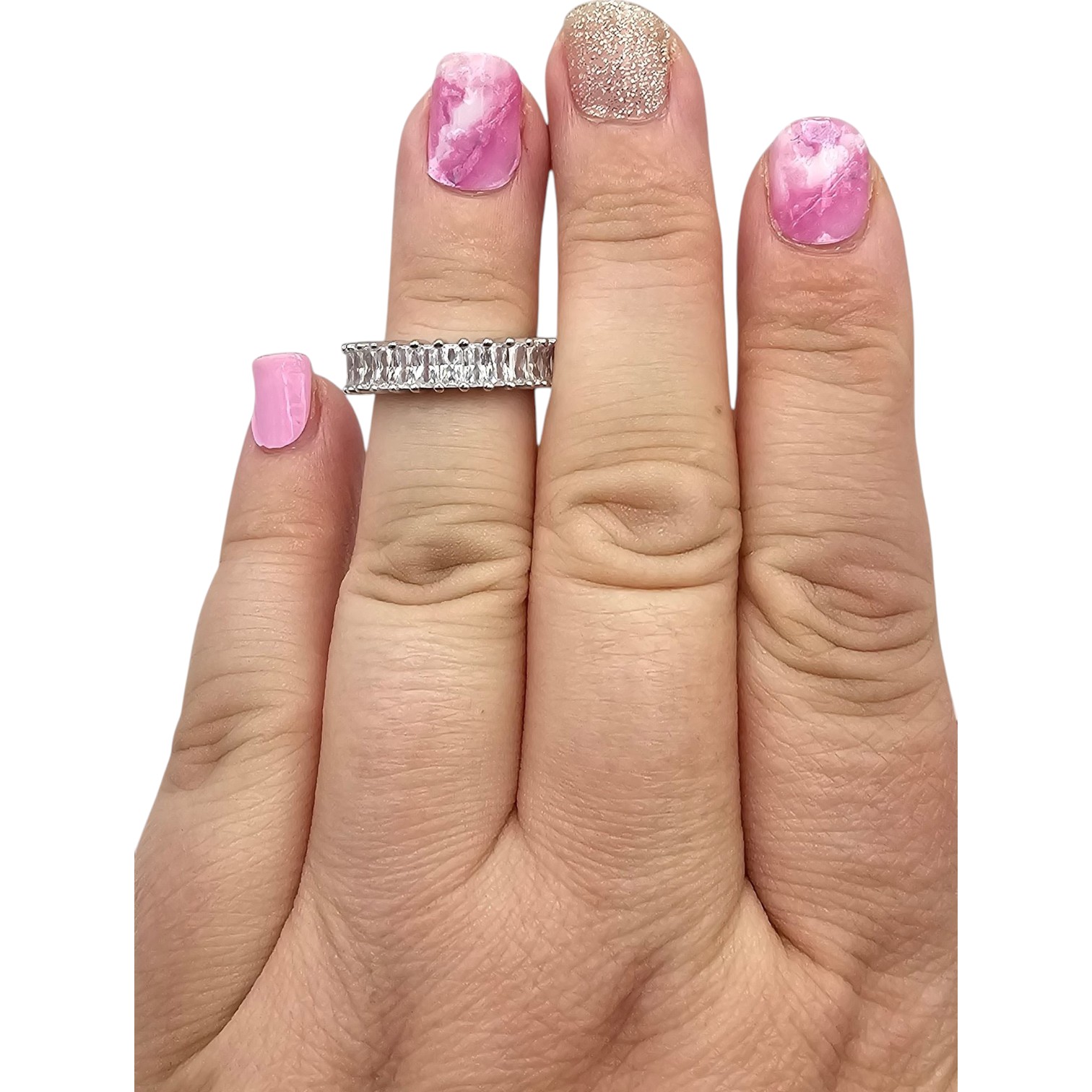 FZN Rhinestone Sterling Silver Cocktail Ring Size 4.75 4 G