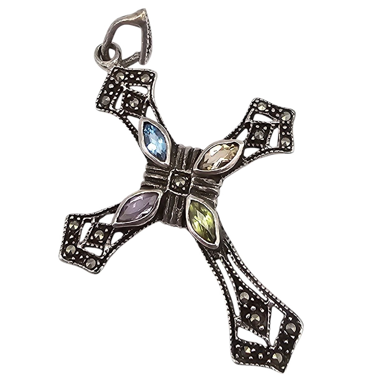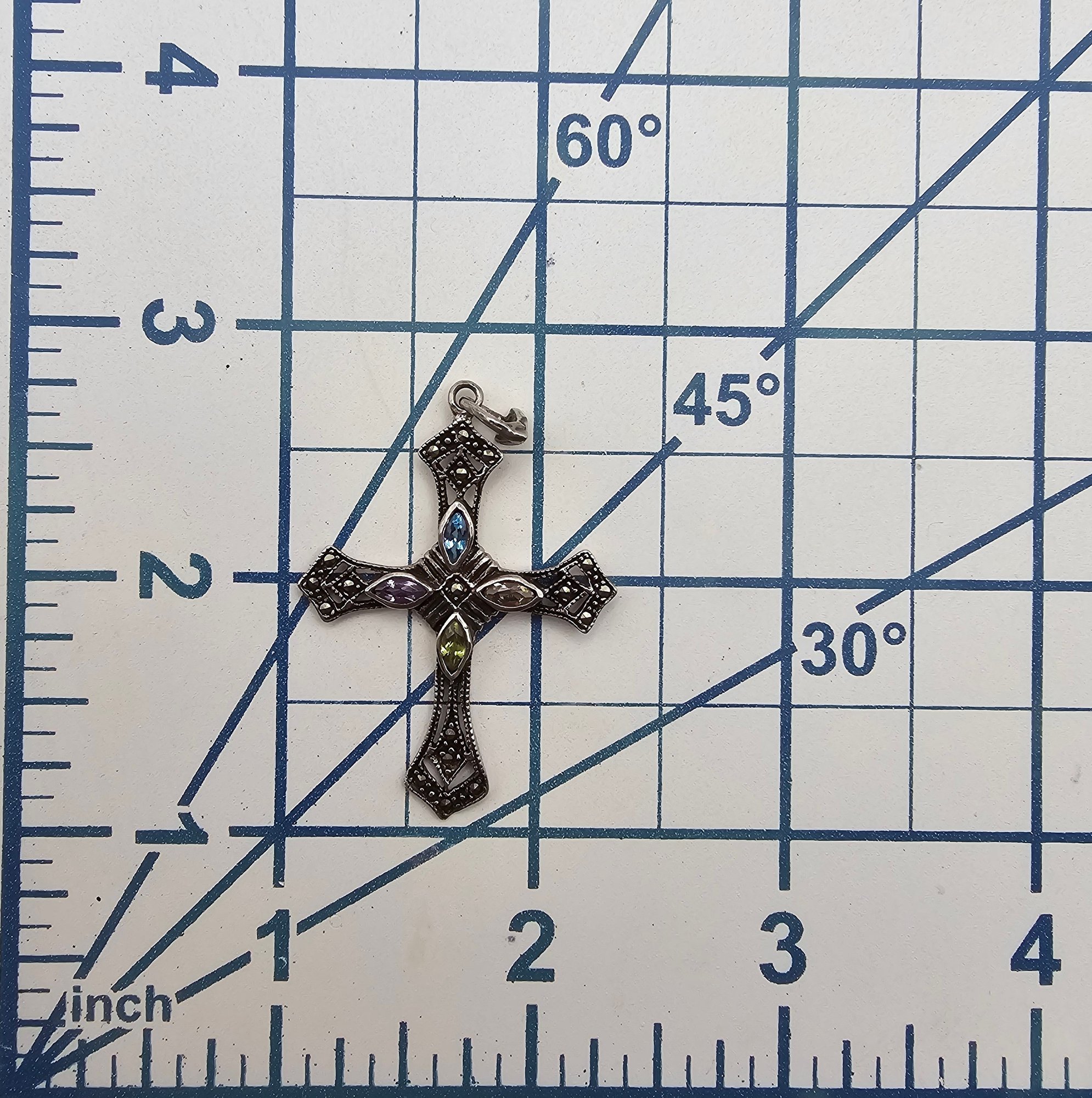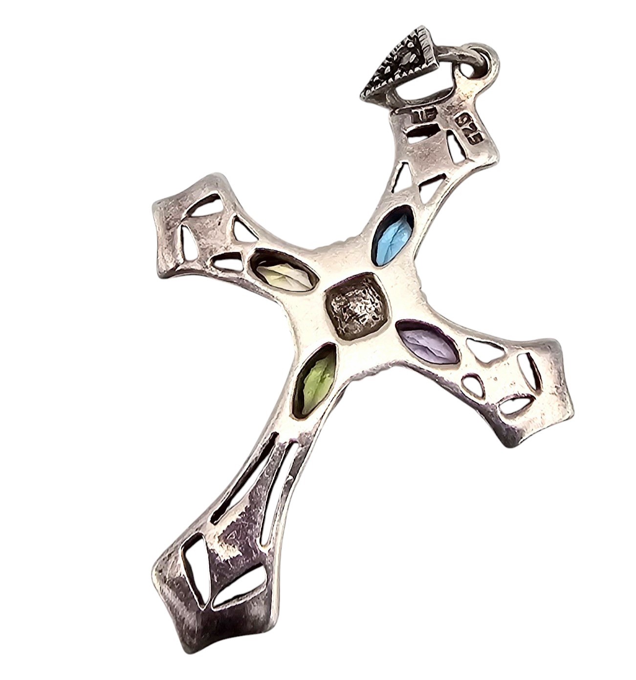 NF Multi Gemstone Sterling Silver Cross Pendant 3.9 G