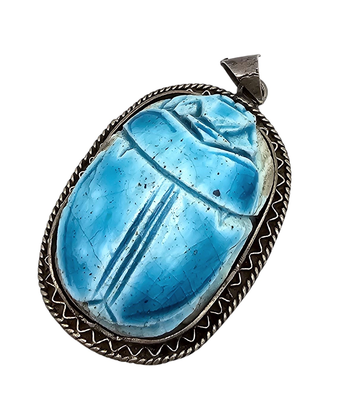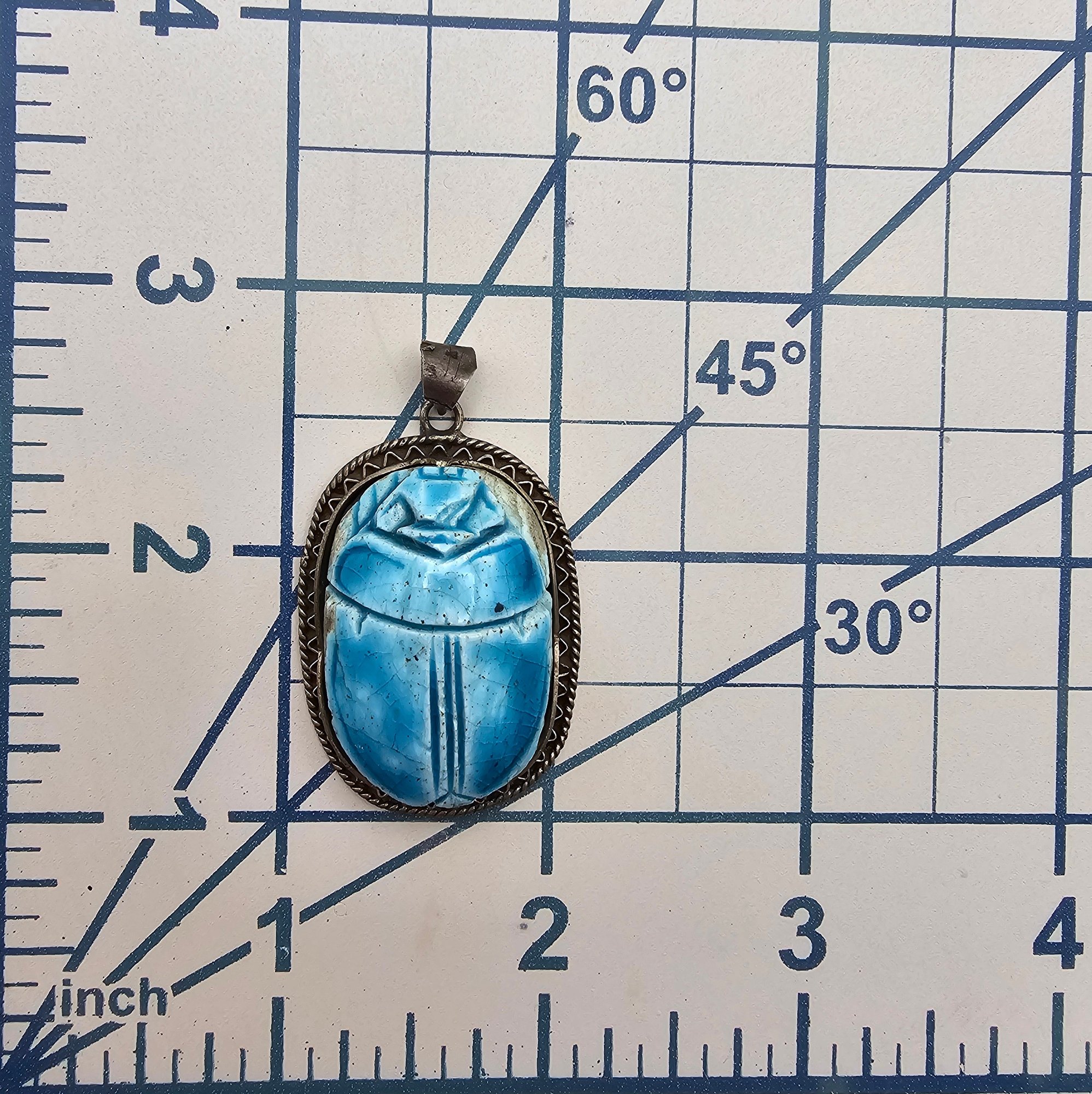 Sterling Silver Scarab Egyptian Revival Pendant 15.4 G