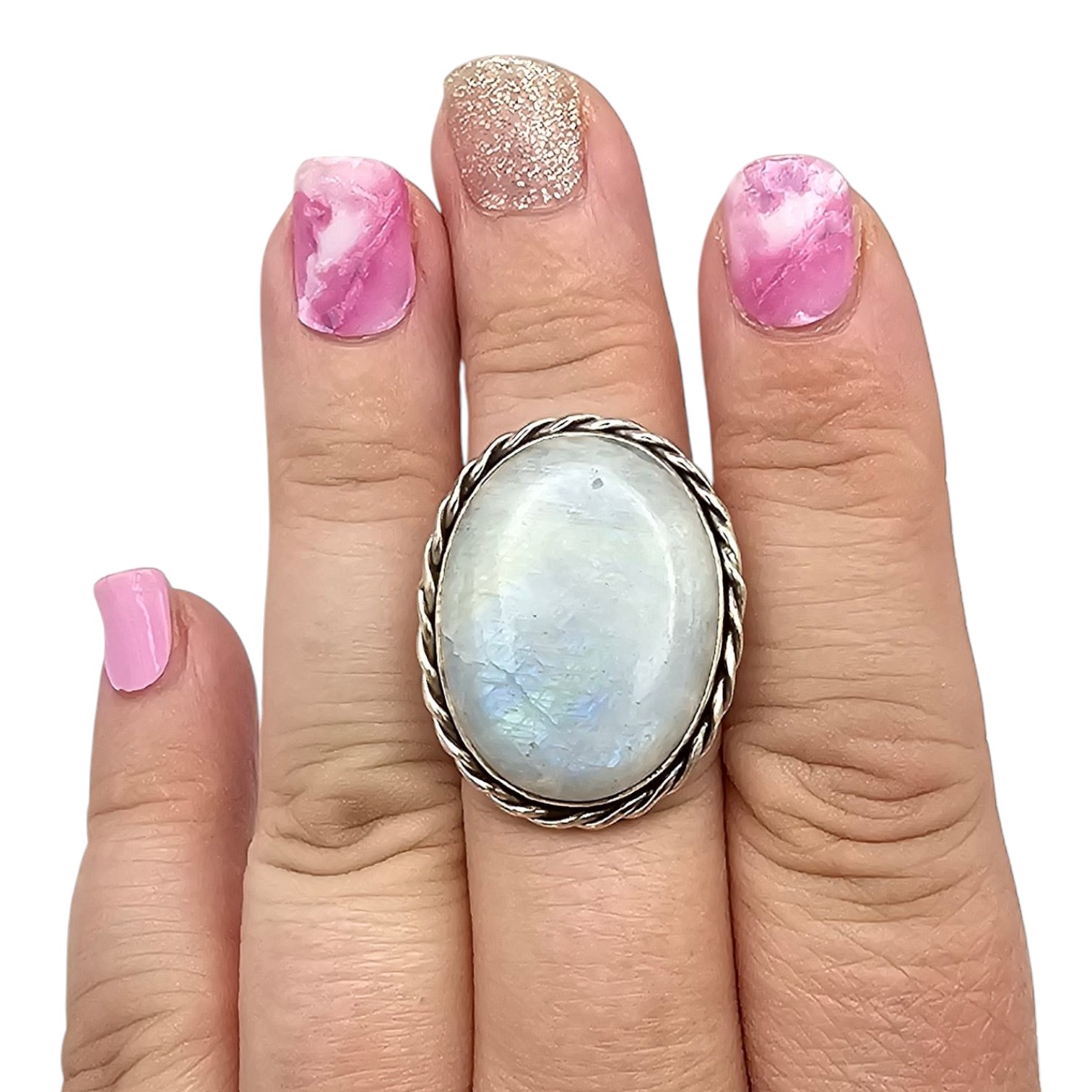 Moonstone Sterling Silver Ring Size 8 12.9 G