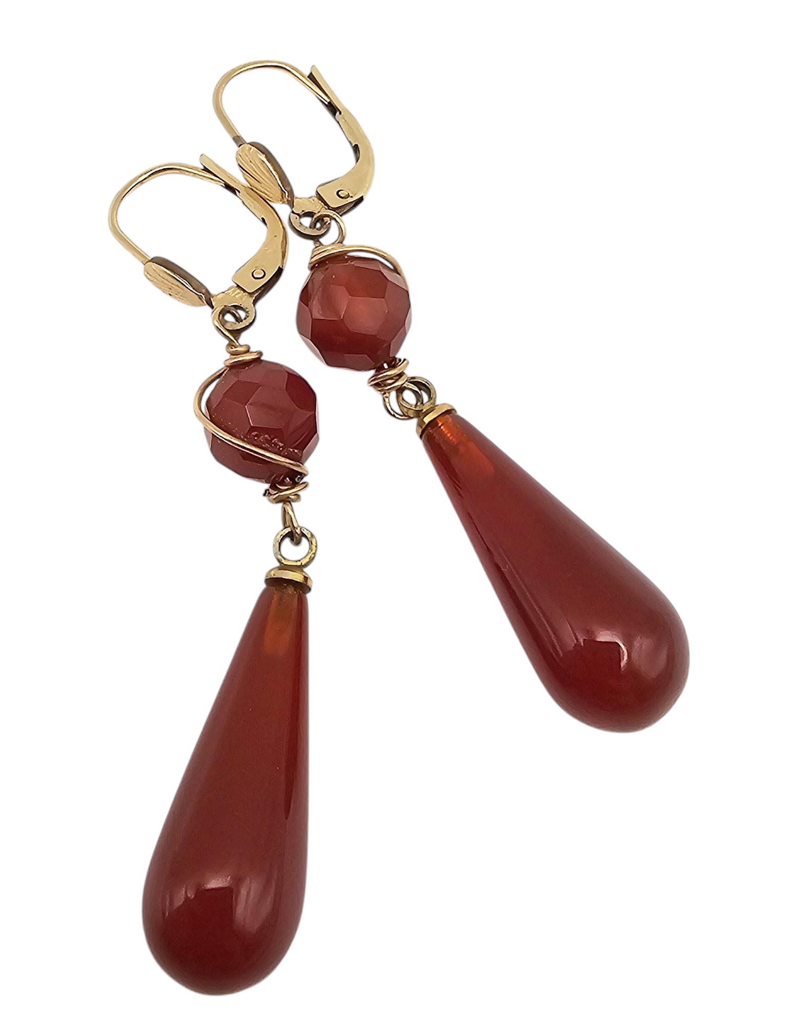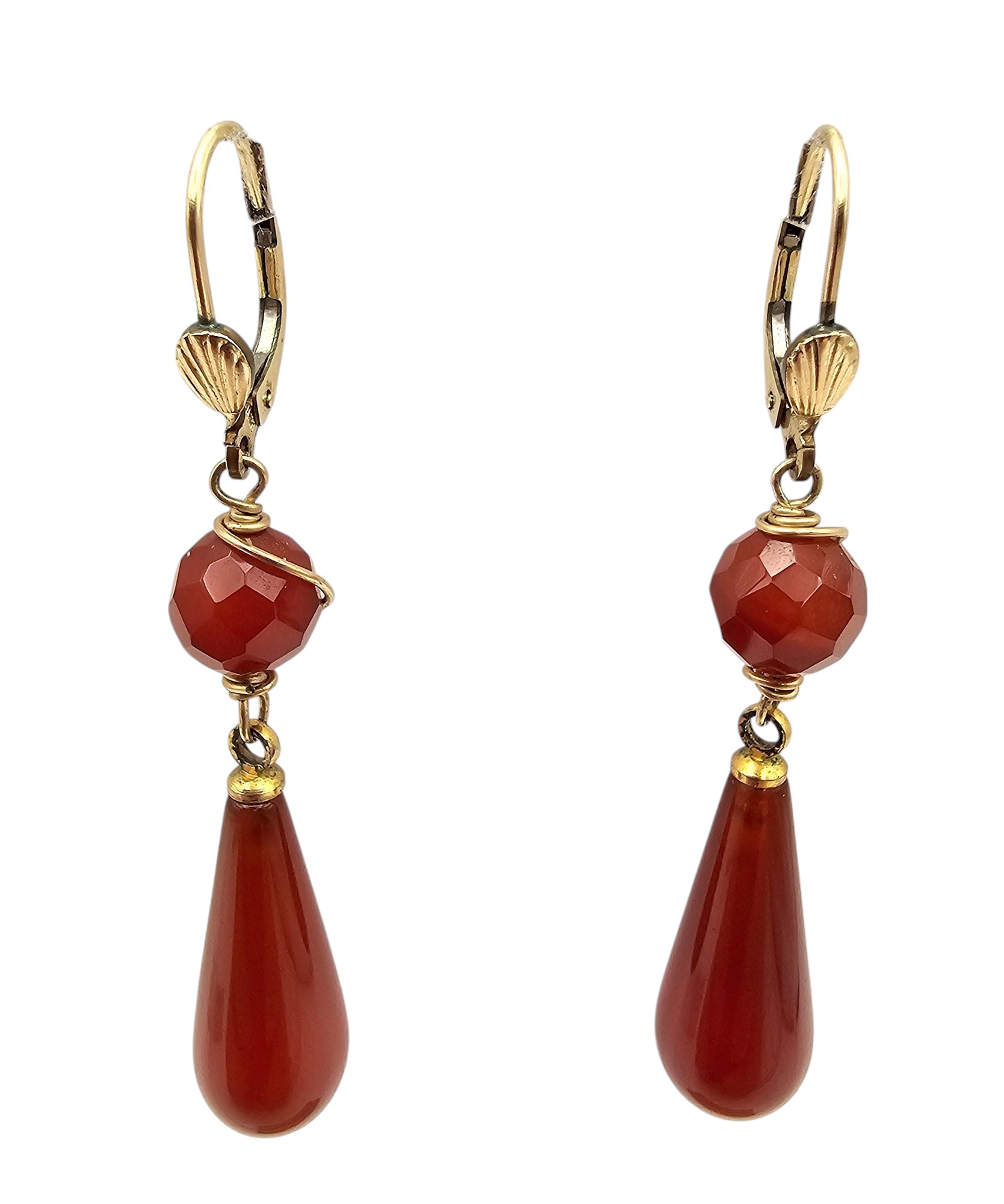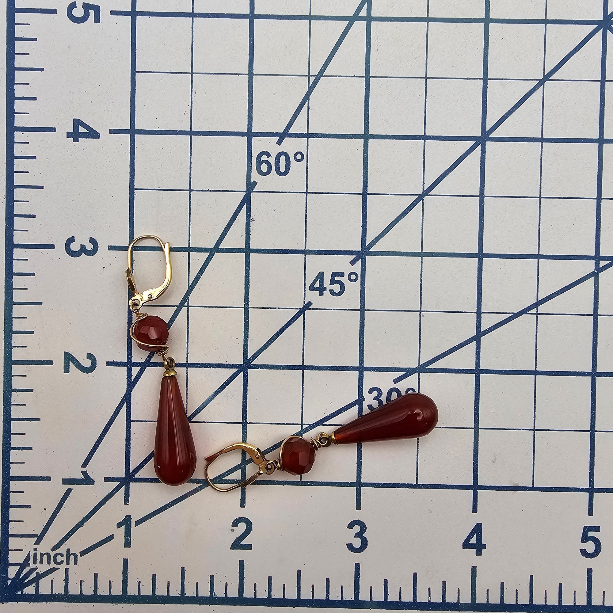 Gold Filled Carnelian Drop Dangle Earrings 6.3 G