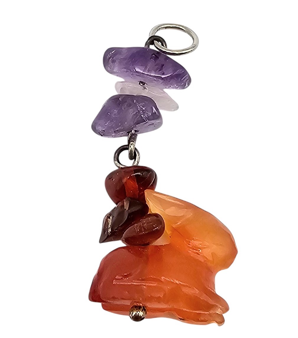 Amethyst Carnelian Garnet Bunny Rabbit Pendant 2.2 G