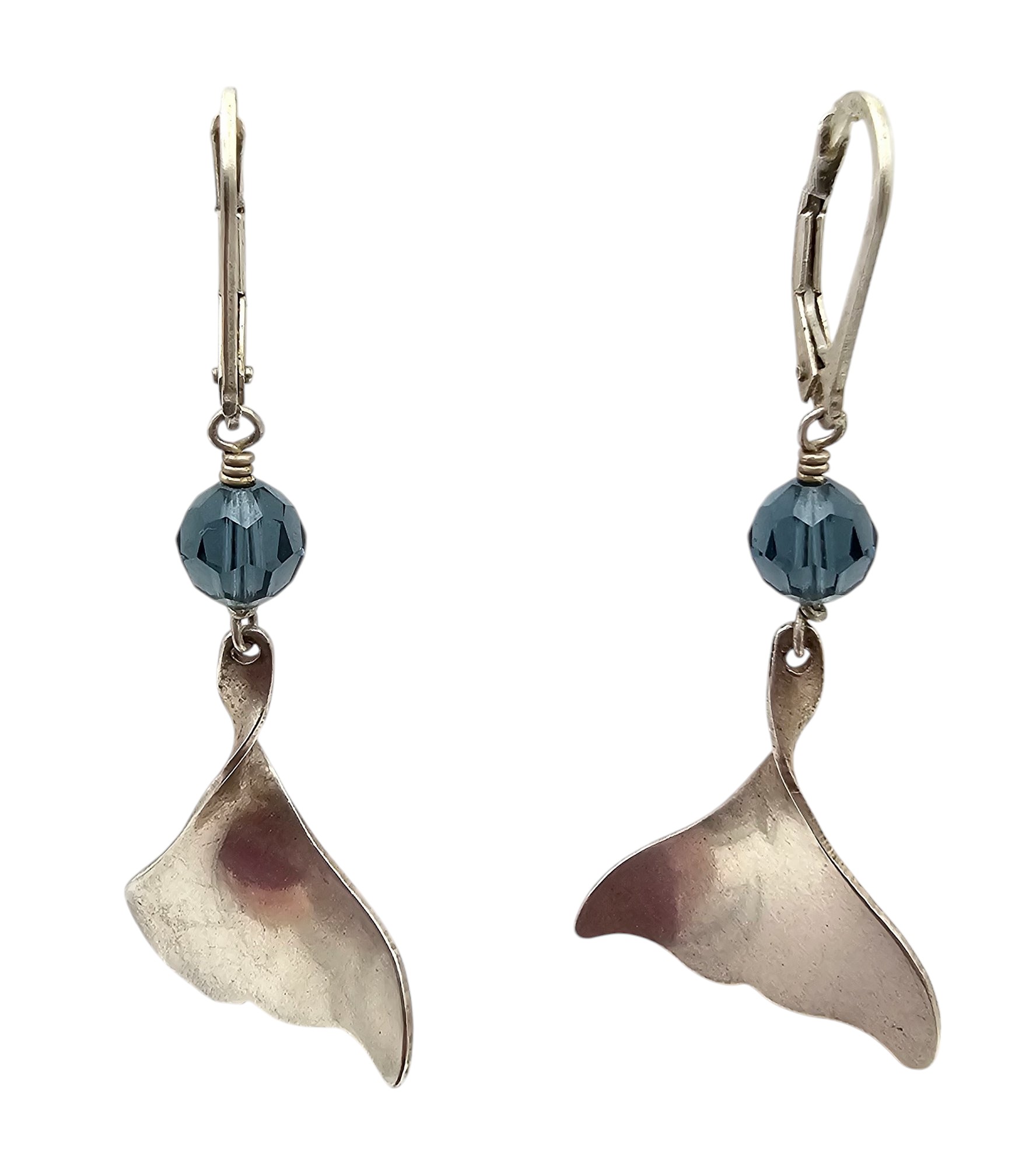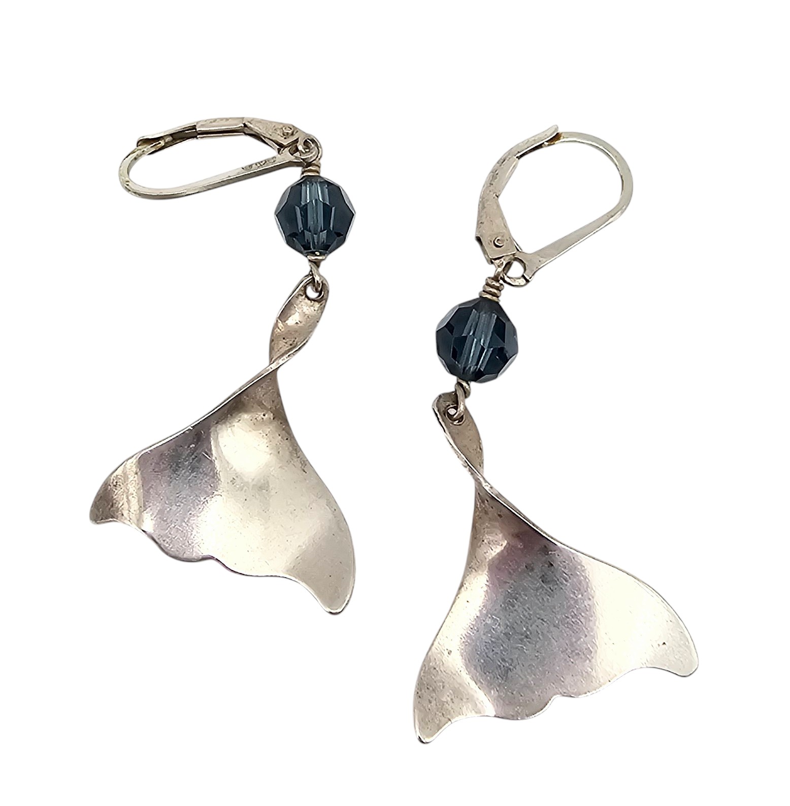 Sterling Silver Whale Tail Dangle Earrings 3.7 G